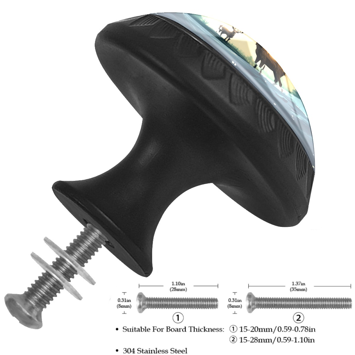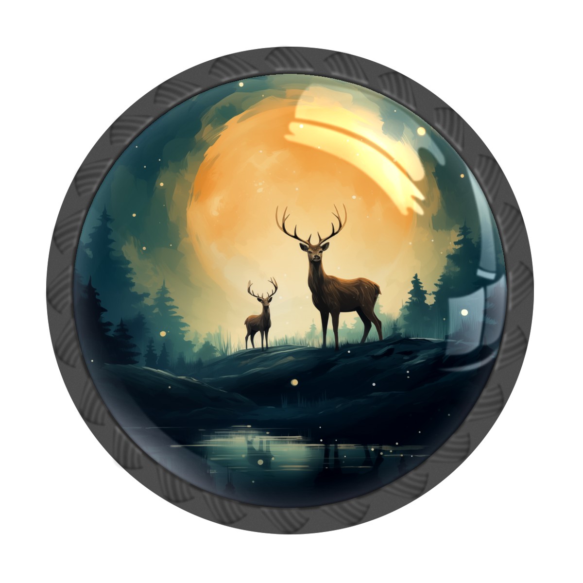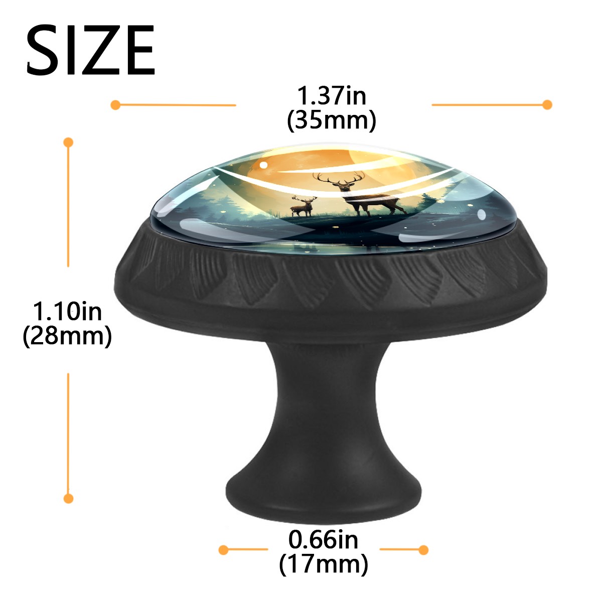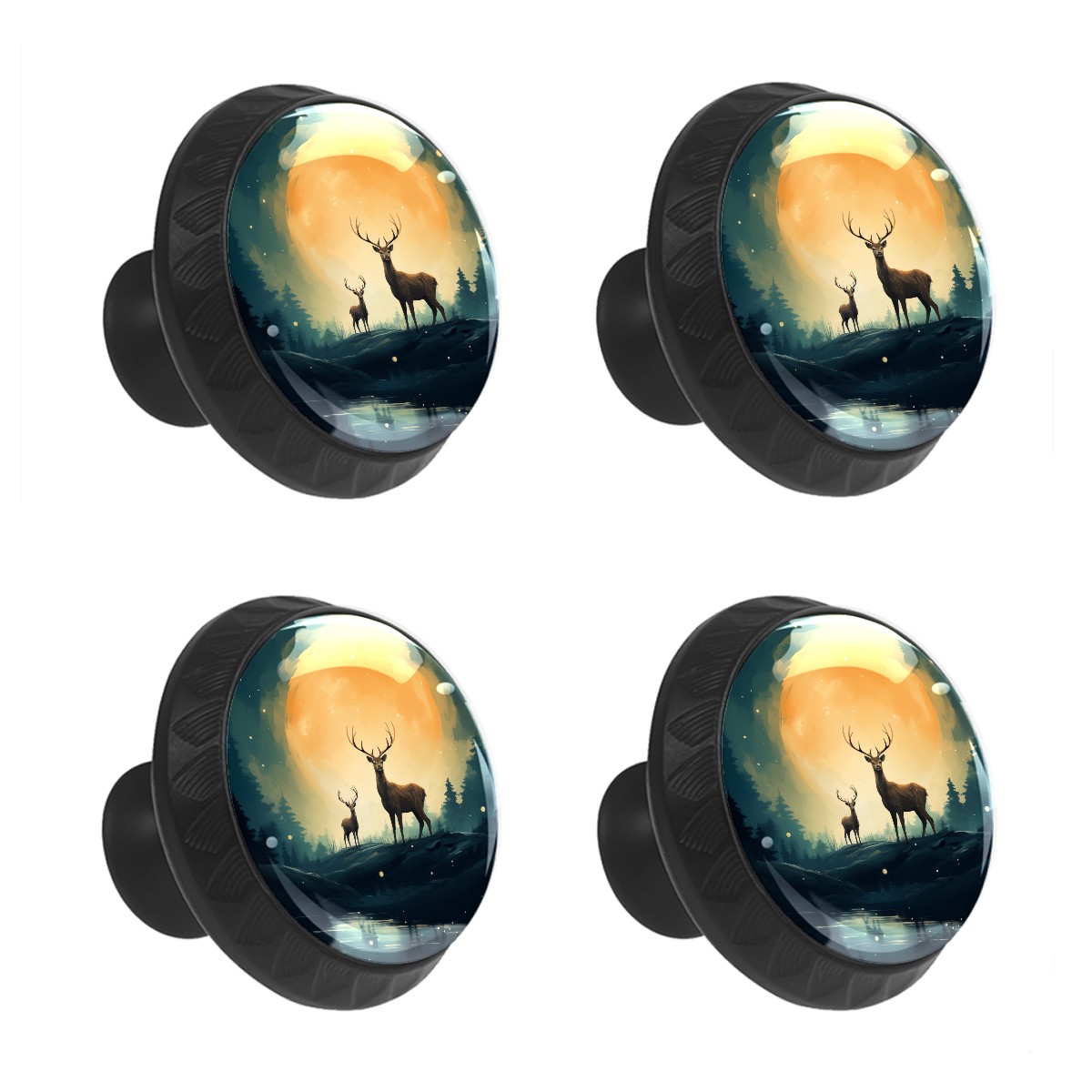 4 Pack Deer With Moon Cabinet Knobs Hardware Crystal Glass Drawer Pulls Knobs for Dresser Kitchen Bathroom Cabinets Drawers Black Furniture Cupboard Wardrobe Handles Round, 1-3/8''
