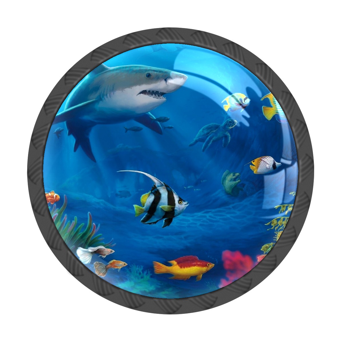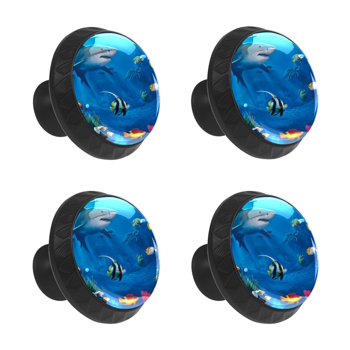 4 Pack Ocean Shark Cabinet Knobs Hardware Crystal Glass Drawer Pulls Knobs for Dresser Kitchen Bathroom Cabinets Drawers Black Furniture Cupboard Wardrobe Handles Round, 1-3/8''