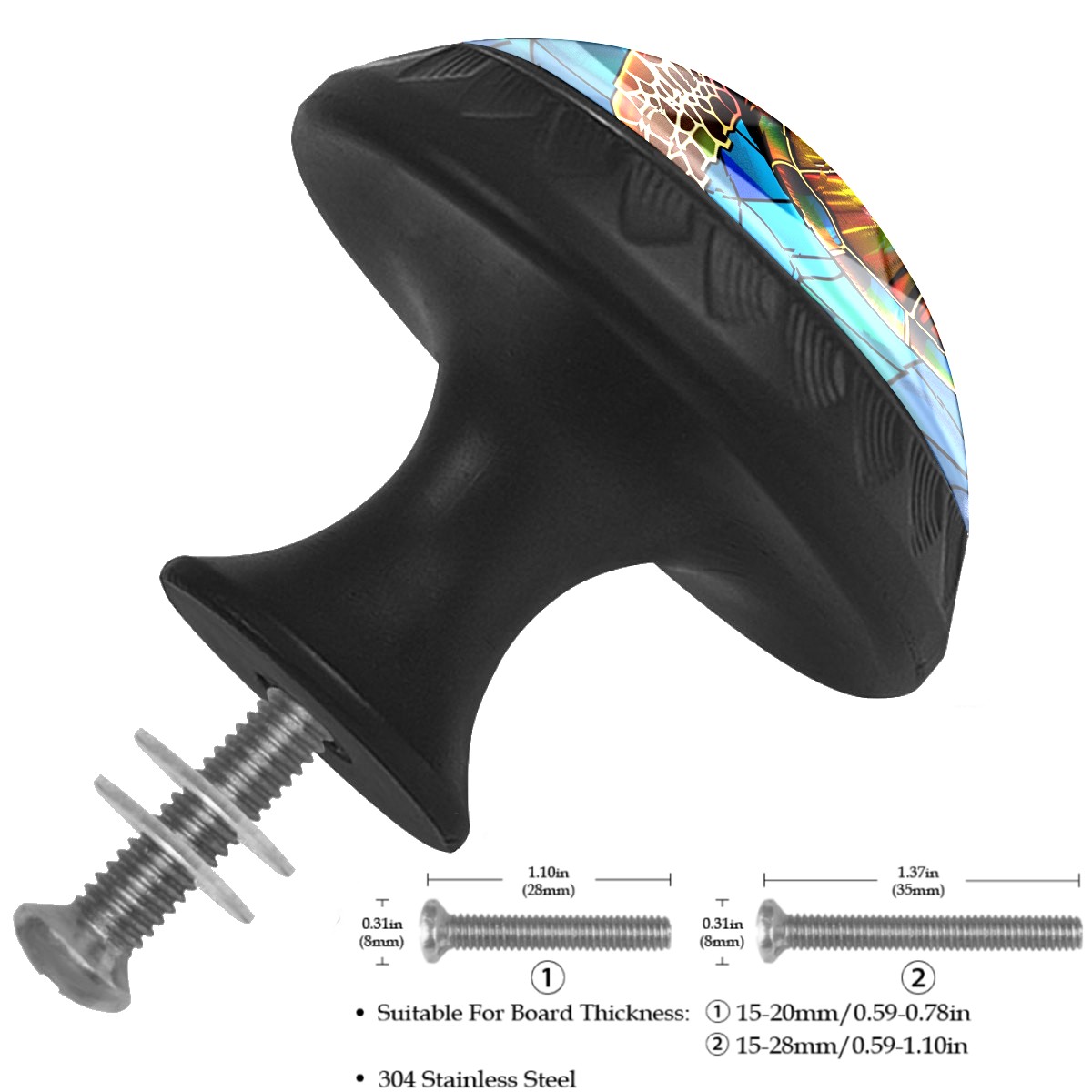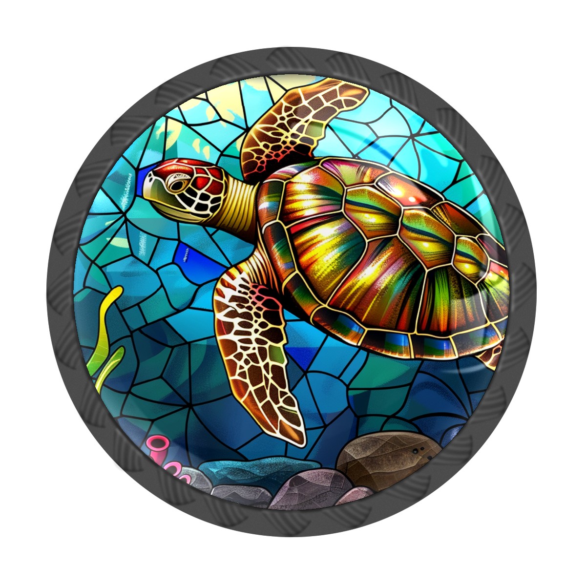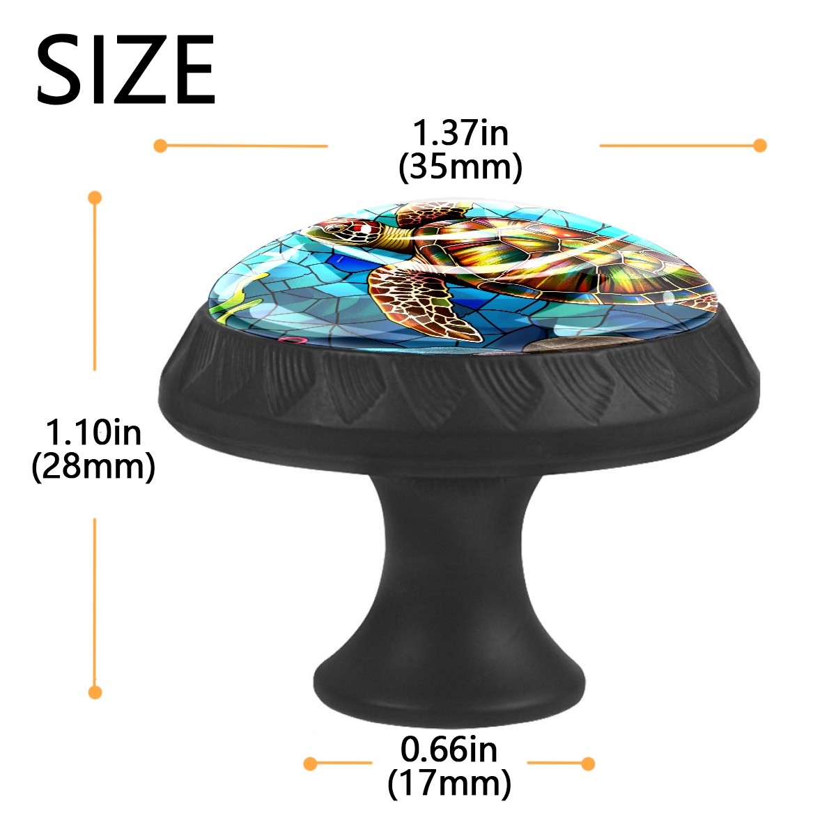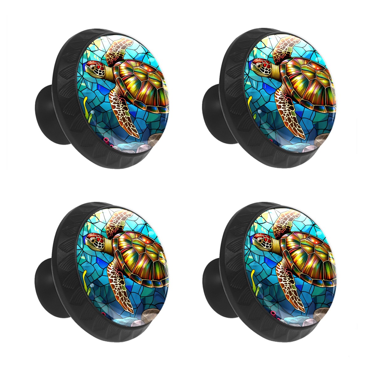 4 Pack Stained Glass Turtle Cabinet Knobs Hardware Crystal Glass Drawer Pulls Knobs for Dresser Kitchen Bathroom Cabinets Drawers Black Furniture Cupboard Wardrobe Handles Round, 1-3/8''