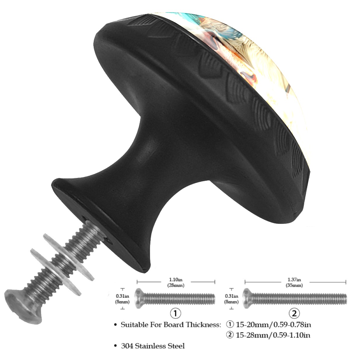 • <p><b>Package Includes:</b></p> <p>Drawer Knobs x 4</p> <p>1.10 Inches Mounting Screws x 4</p> <p>1.37 Inches Mounting Screws x 4</p> <p><br></p> <p></p> <p>Crystal Glass Diameter: 1.37 inches (35mm)</p> <p>Knob Height: 1.10 inches (28mm)</p> <p>Base Diameter: 0.66 inches (17mm)</p> <p><b>Practical and Aesthetic:</b></p> <p>The knobs for kitchen cabinets and drawers combine the durability of an ABS base with the high transparency of glass, enhanced by unique patterns that add decoration and cuteness. It’s both practical and visually appealing.</p> <p><b>Pattern Design:</b></p> <p>Clear patterns add decoration and personalization. Cabinet knobs and pulls enhance visual appeal and can match different home styles, meeting diverse design needs.</p> <p><b>Easy Installation:</b></p> <p>Equipped with mounting screws, the ABS base can be securely attached to the drawer with ease.</p> <p><b>Easy Cleaning:</b></p> <p>The smooth surface of the round glass drawer knobs resists dust and stains, making it easy to clean with just a damp cloth.</p> <p><b>Wear-Resistant:</b></p> <p>The bathroom cabinet knobs are designed to resist scratches and fading, maintaining their good appearance over long-term use.</p>