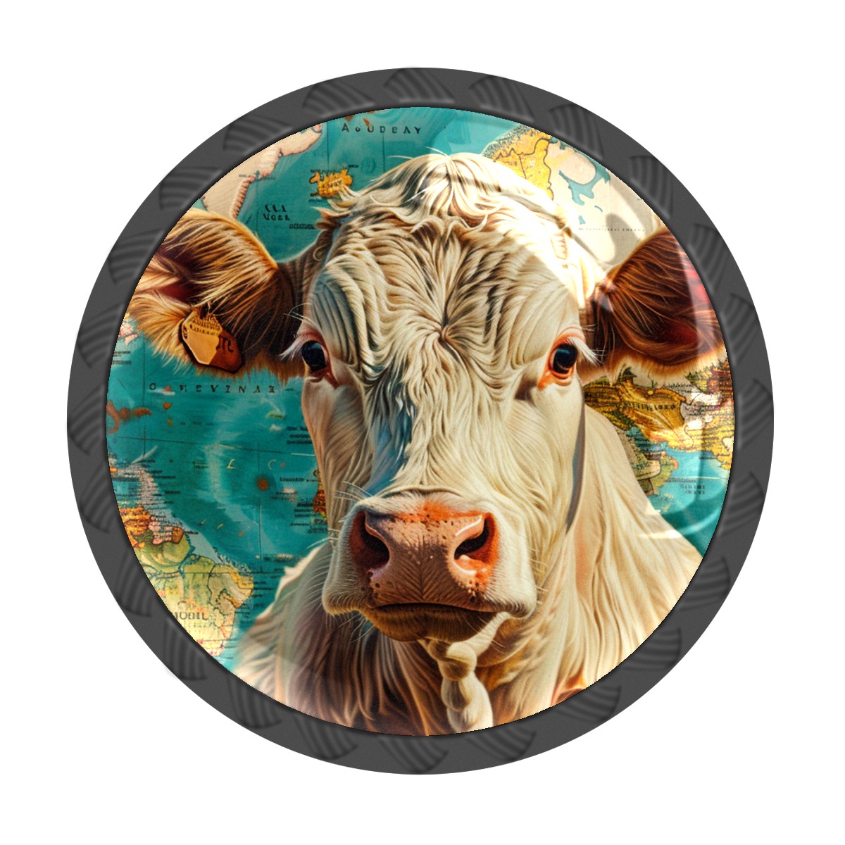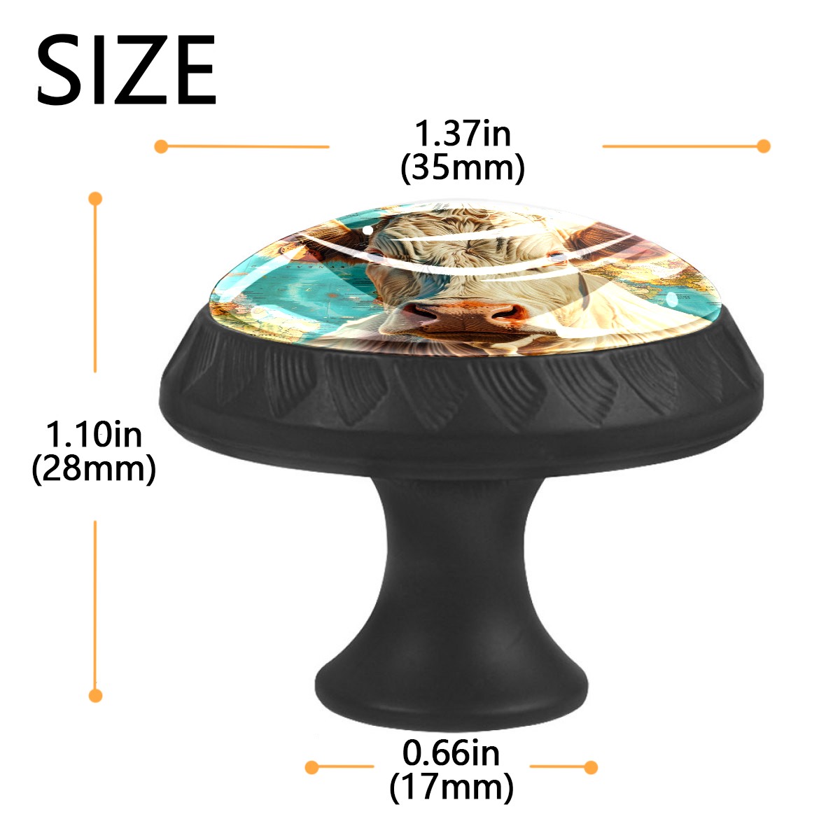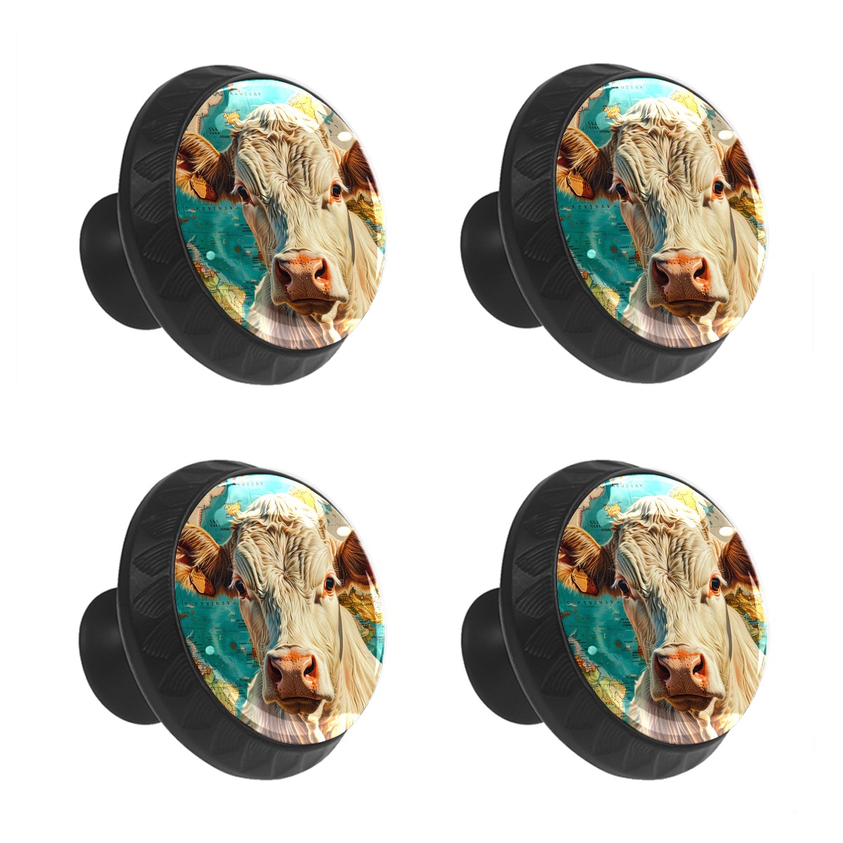 4 Pack Farm Animal Cow Map Cabinet Knobs Hardware Crystal Glass Drawer Pulls Knobs for Dresser Kitchen Bathroom Cabinets Drawers Black Furniture Cupboard Wardrobe Handles Round, 1-3/8''