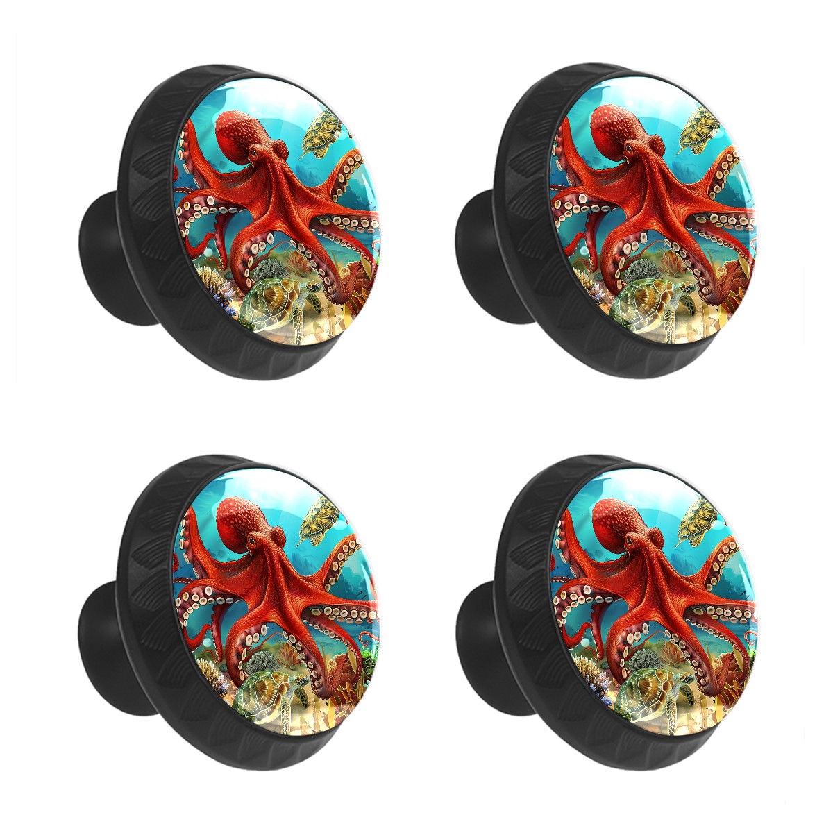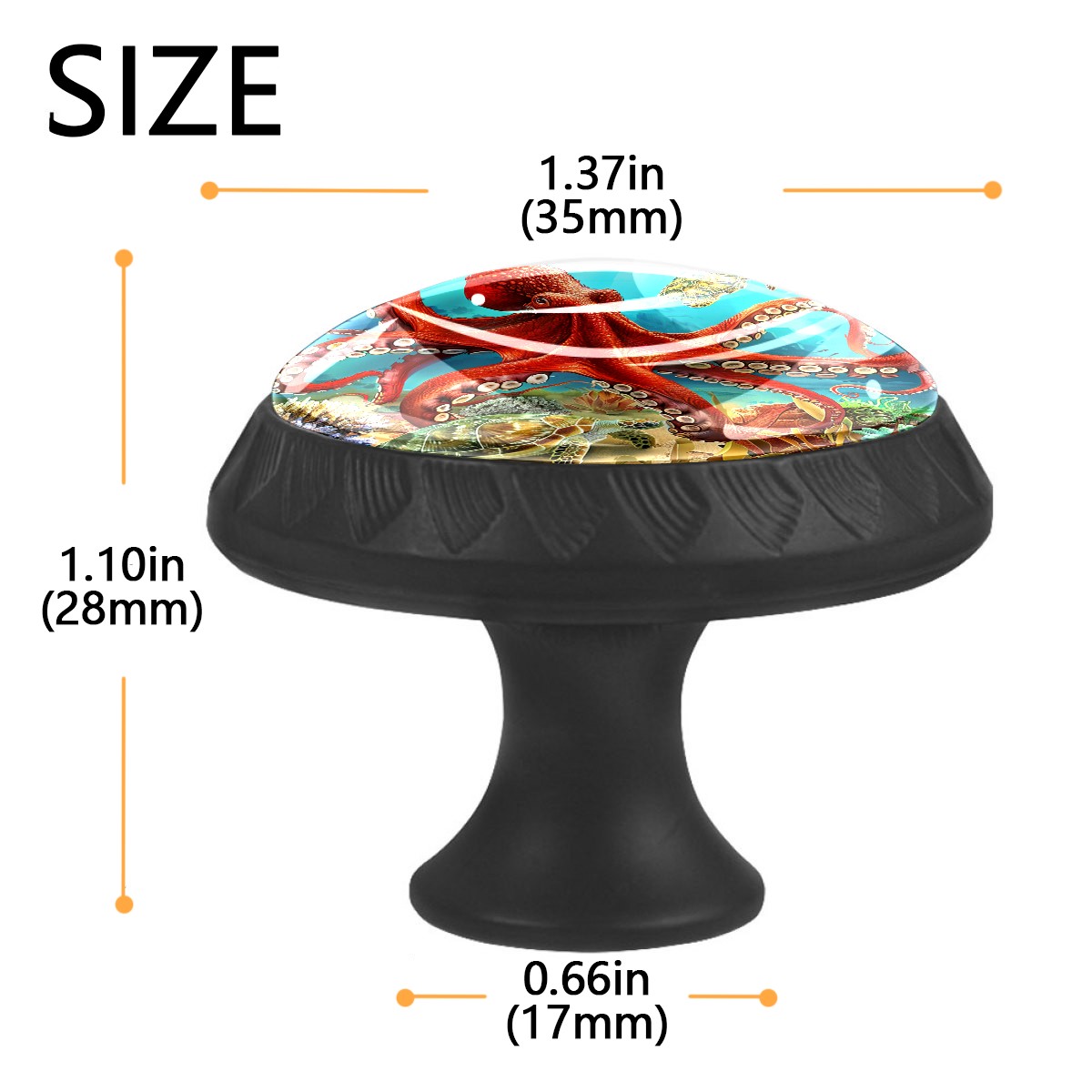 4 Pack Red Octopus Cabinet Knobs Hardware Crystal Glass Drawer Pulls Knobs for Dresser Kitchen Bathroom Cabinets Drawers Black Furniture Cupboard Wardrobe Handles Round, 1-3/8''