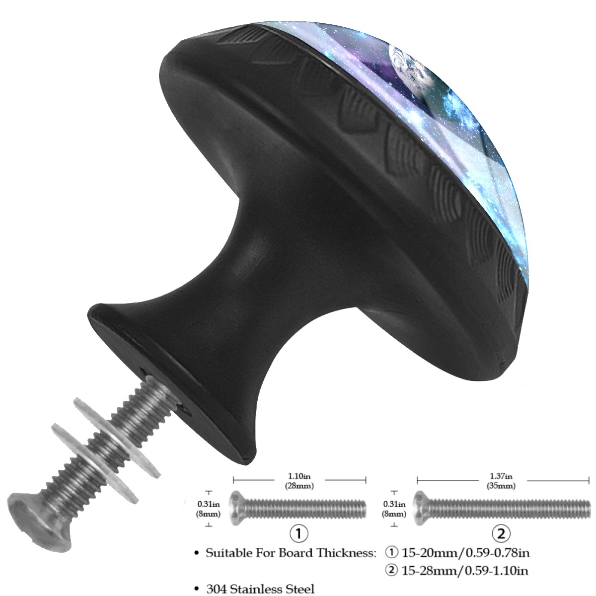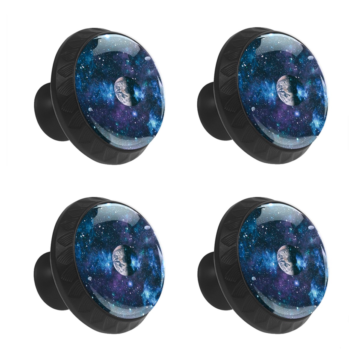 4 Pack Galaxy Space Planets Cabinet Knobs Hardware Crystal Glass Drawer Pulls Knobs for Dresser Kitchen Bathroom Cabinets Drawers Black Furniture Cupboard Wardrobe Handles Round, 1-3/8''