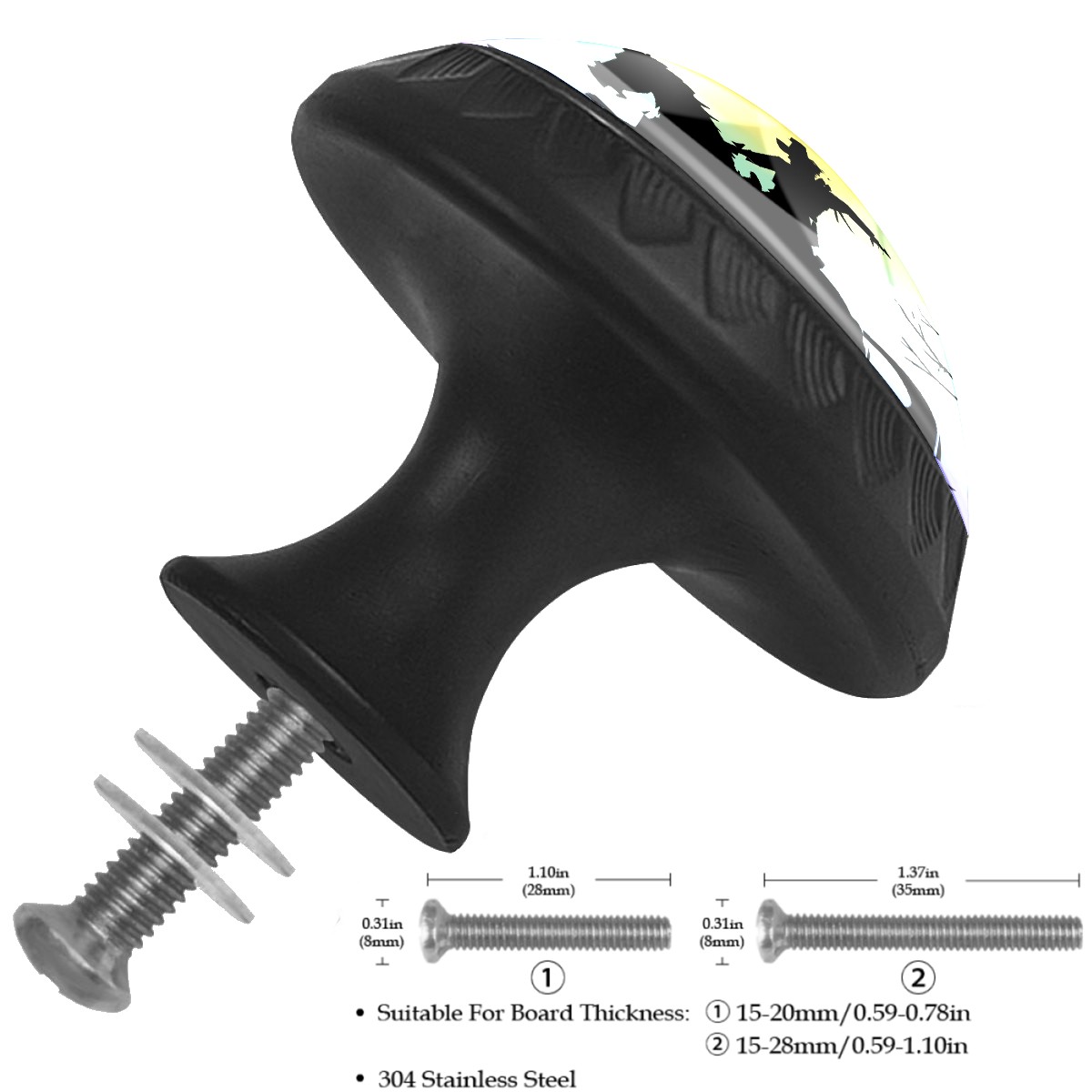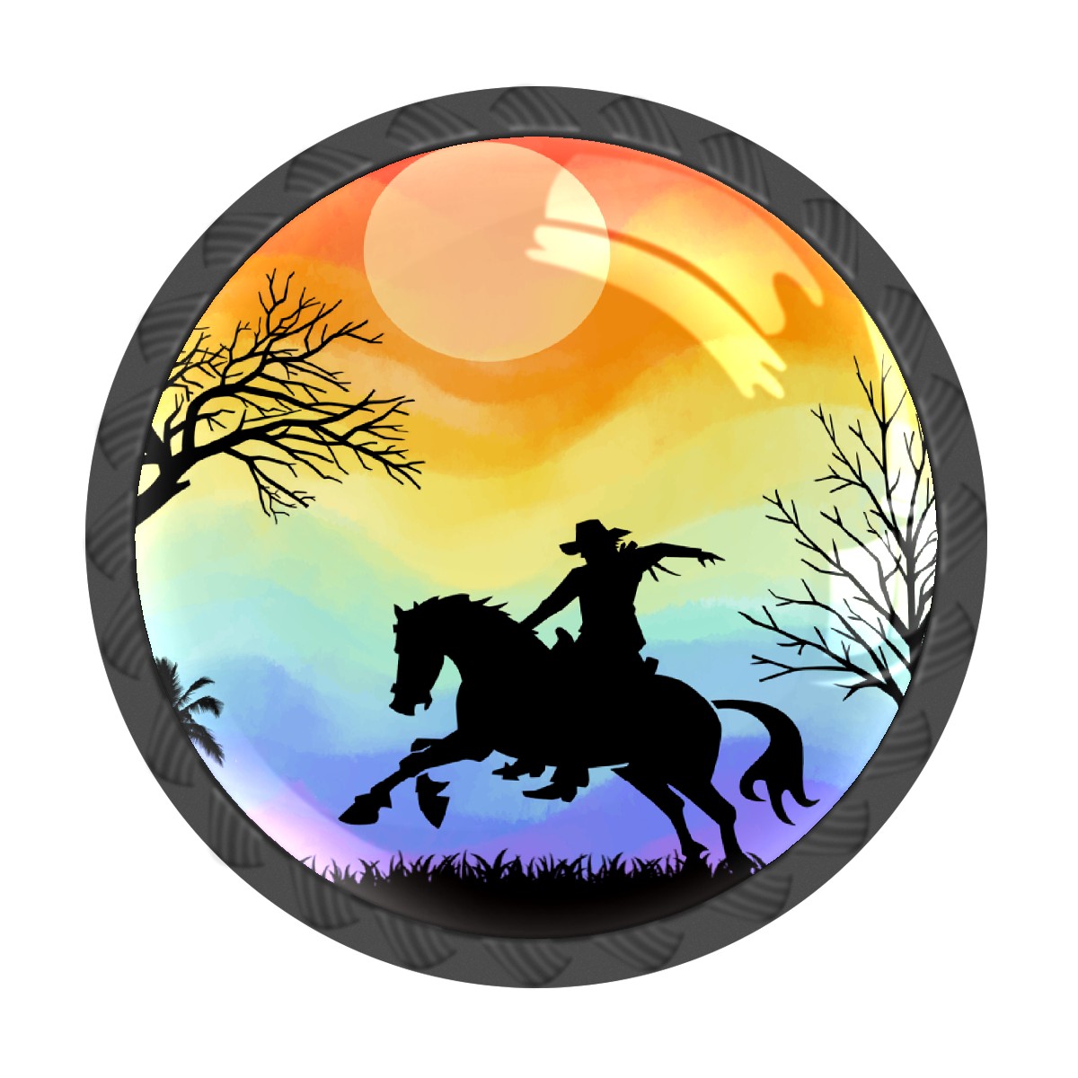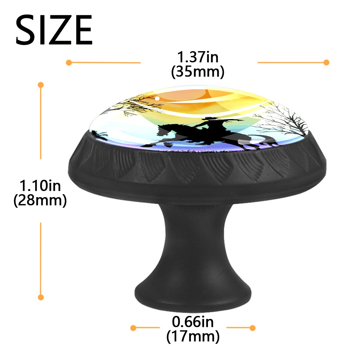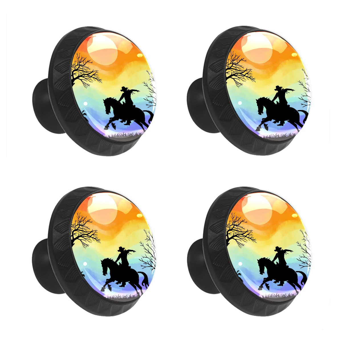 4 Pack 剪影牛仔 Cabinet Knobs Hardware Crystal Glass Drawer Pulls Knobs for Dresser Kitchen Bathroom Cabinets Drawers Black Furniture Cupboard Wardrobe Handles Round, 1-3/8''