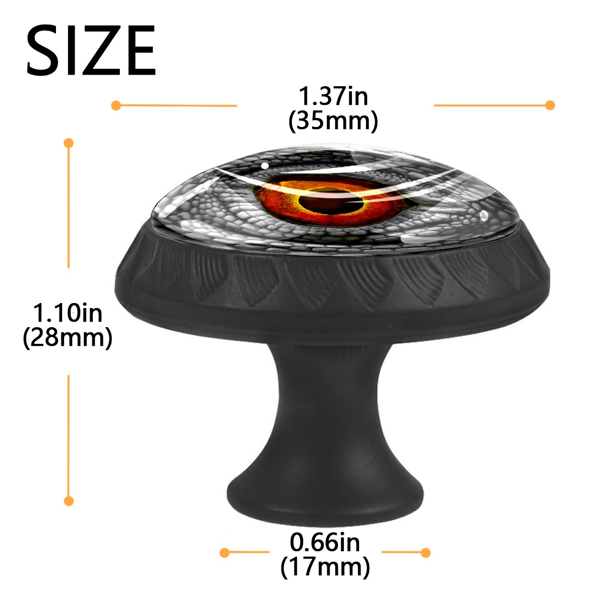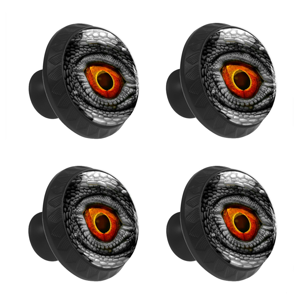 4 Pack Dinosaur Eye Funny Cabinet Knobs Hardware Crystal Glass Drawer Pulls Knobs for Dresser Kitchen Bathroom Cabinets Drawers Black Furniture Cupboard Wardrobe Handles Round, 1-3/8''
