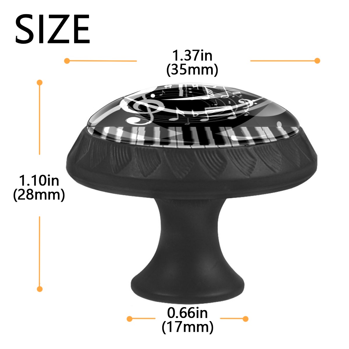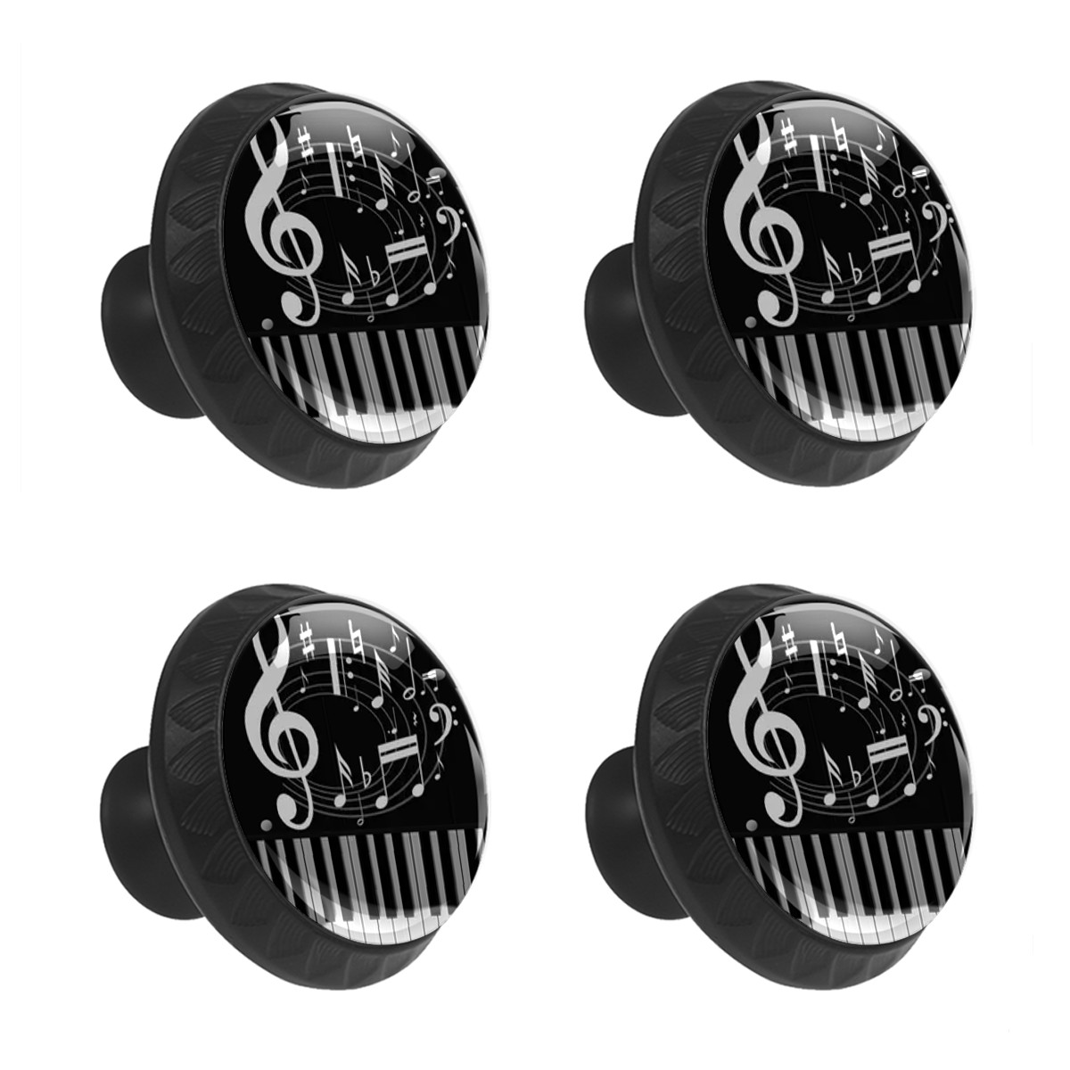 4 Pack Piano Note Cabinet Knobs Hardware Crystal Glass Drawer Pulls Knobs for Dresser Kitchen Bathroom Cabinets Drawers Black Furniture Cupboard Wardrobe Handles Round, 1-3/8''