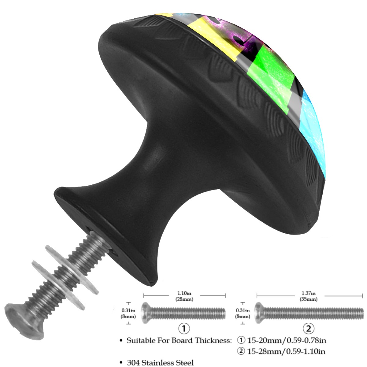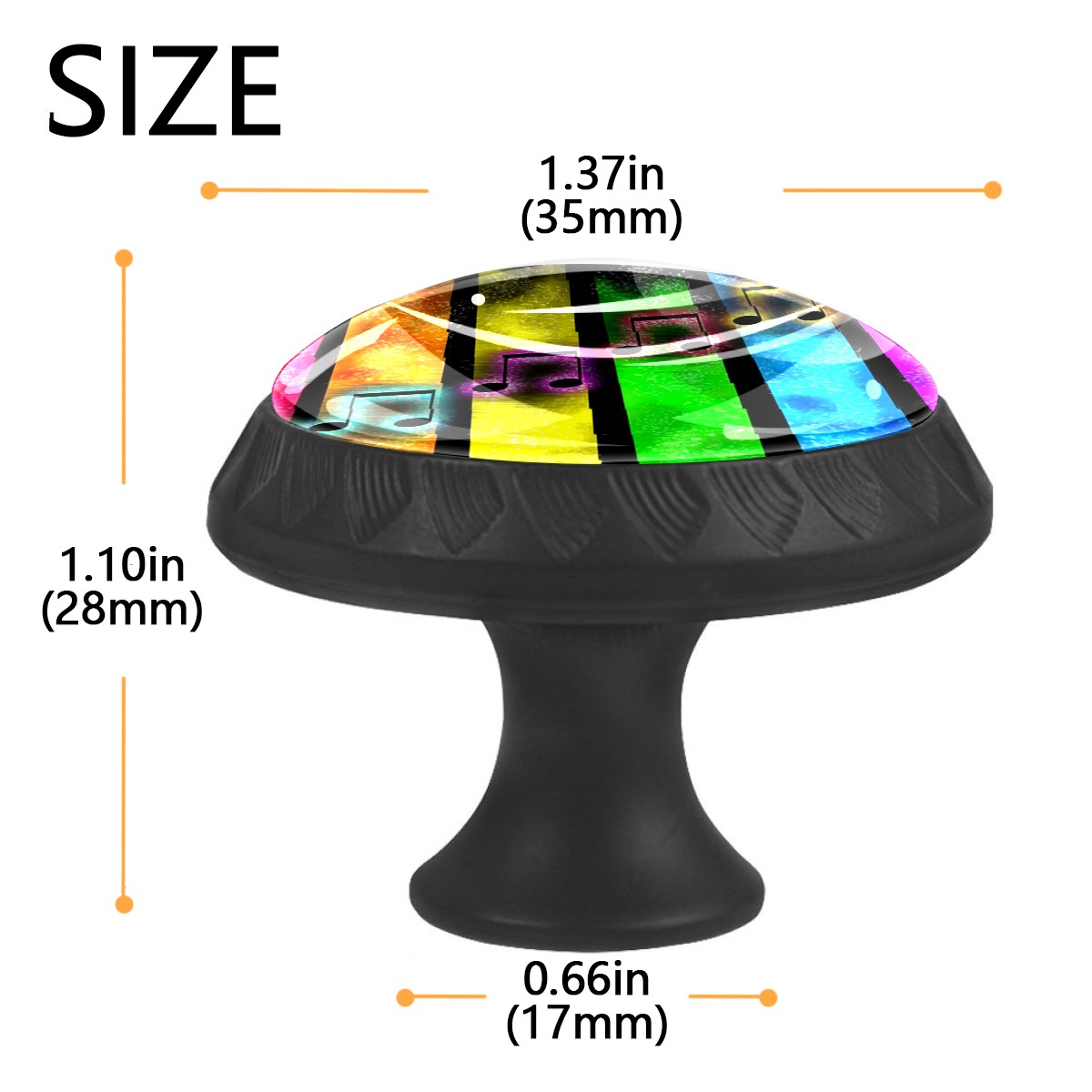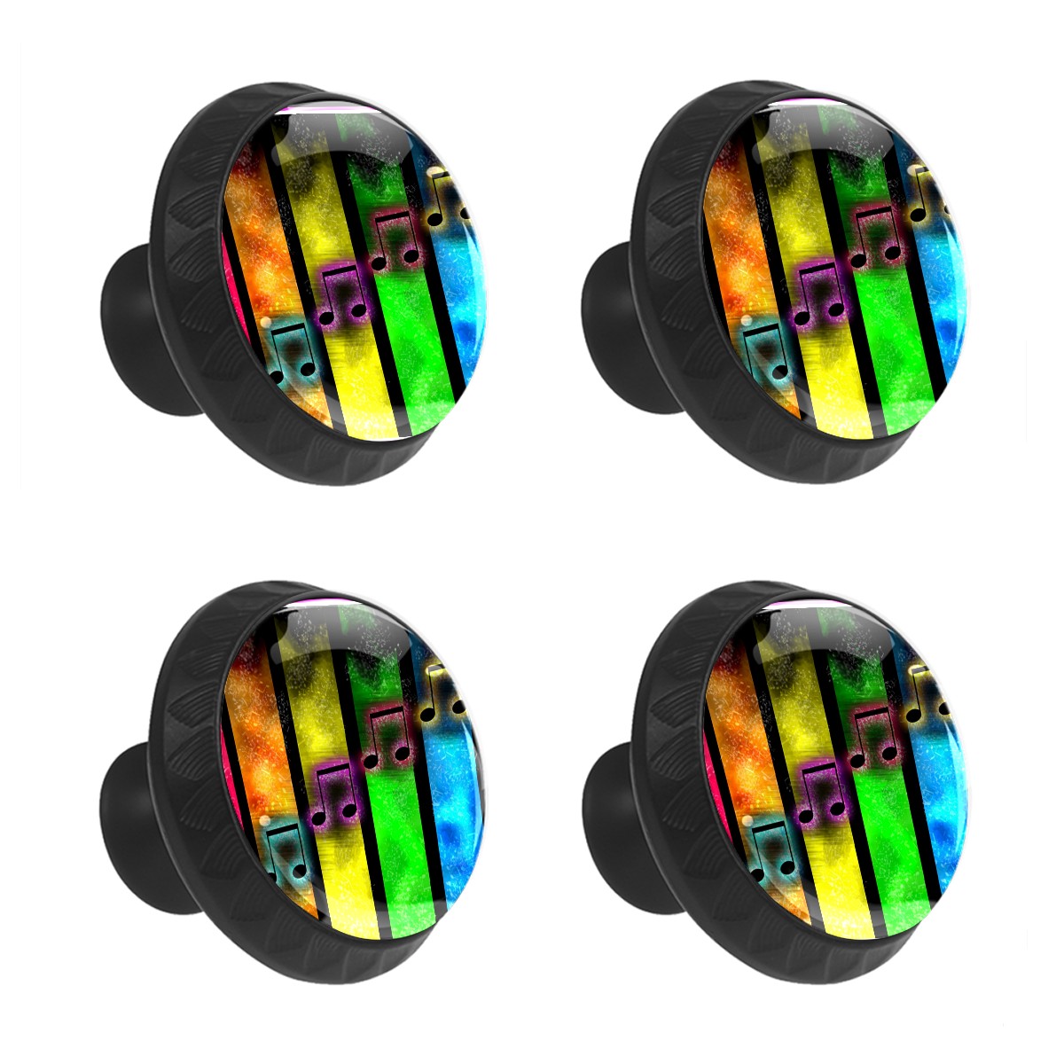 4 Pack Rainbow Piano Key Cabinet Knobs Hardware Crystal Glass Drawer Pulls Knobs for Dresser Kitchen Bathroom Cabinets Drawers Black Furniture Cupboard Wardrobe Handles Round, 1-3/8''
