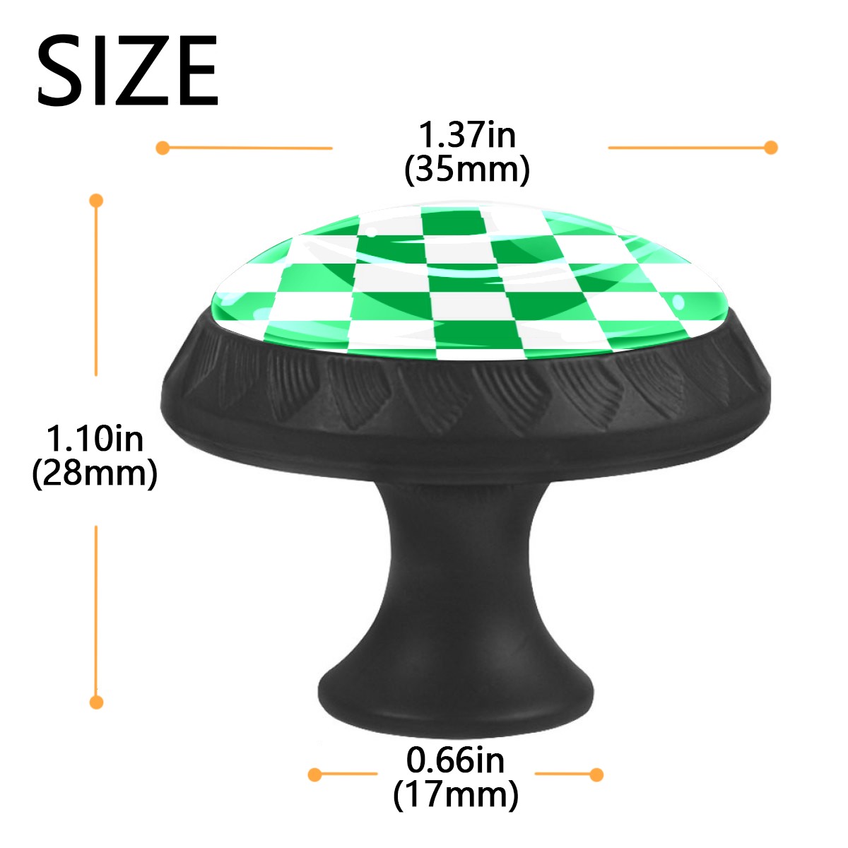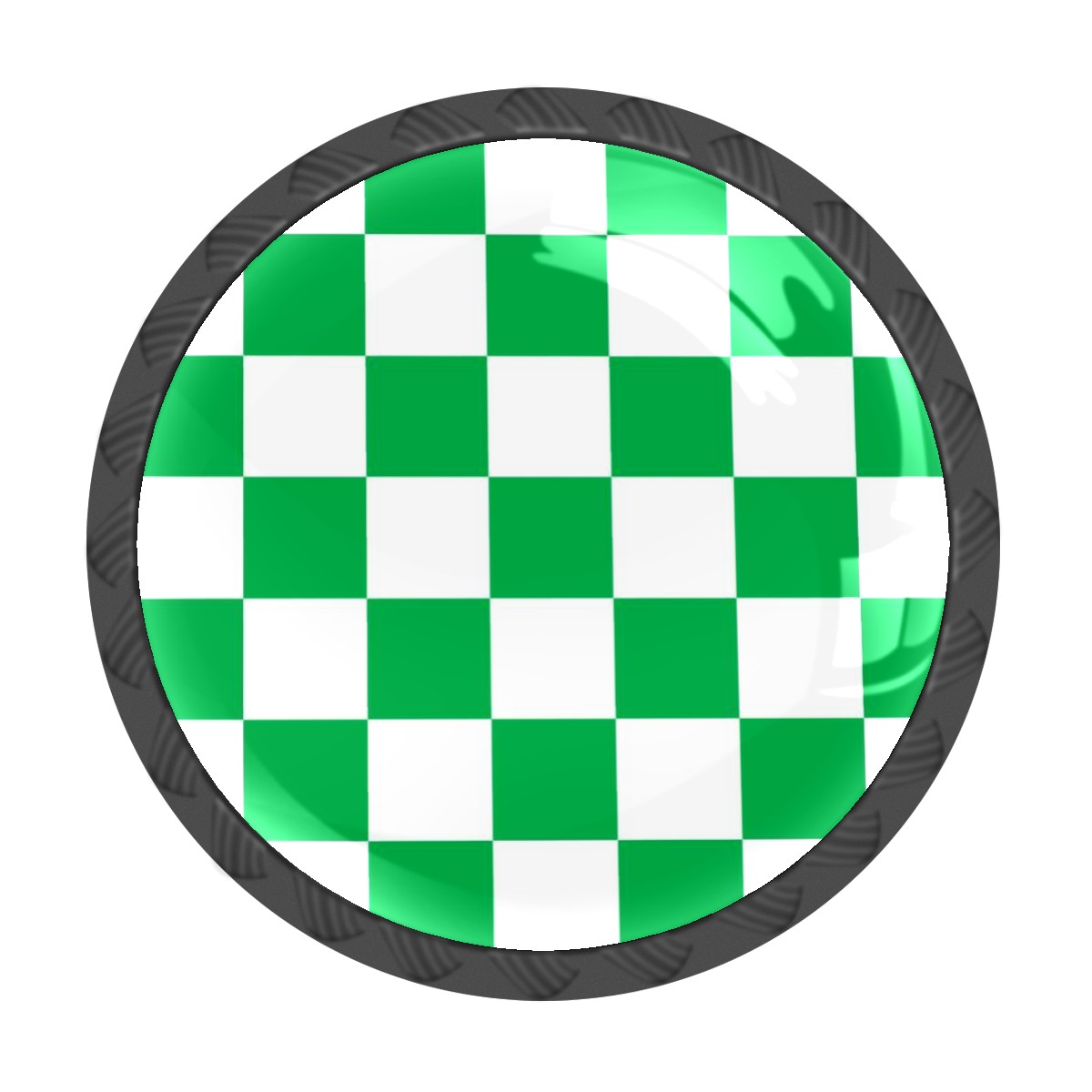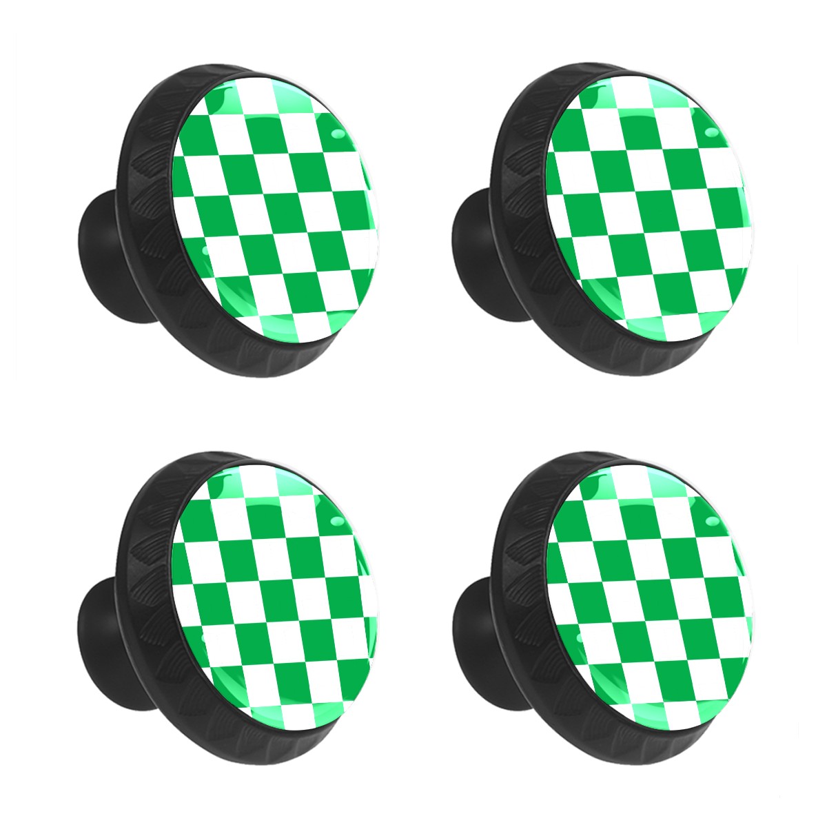 4 Pack White And Green Checkered Cabinet Knobs Hardware Crystal Glass Drawer Pulls Knobs for Dresser Kitchen Bathroom Cabinets Drawers Black Furniture Cupboard Wardrobe Handles Round, 1-3/8''