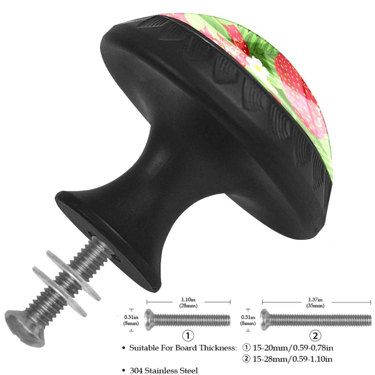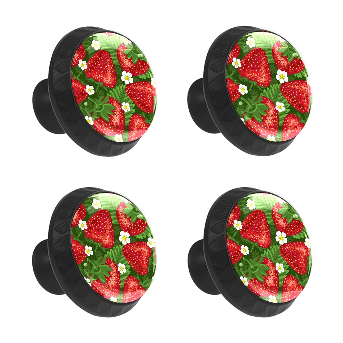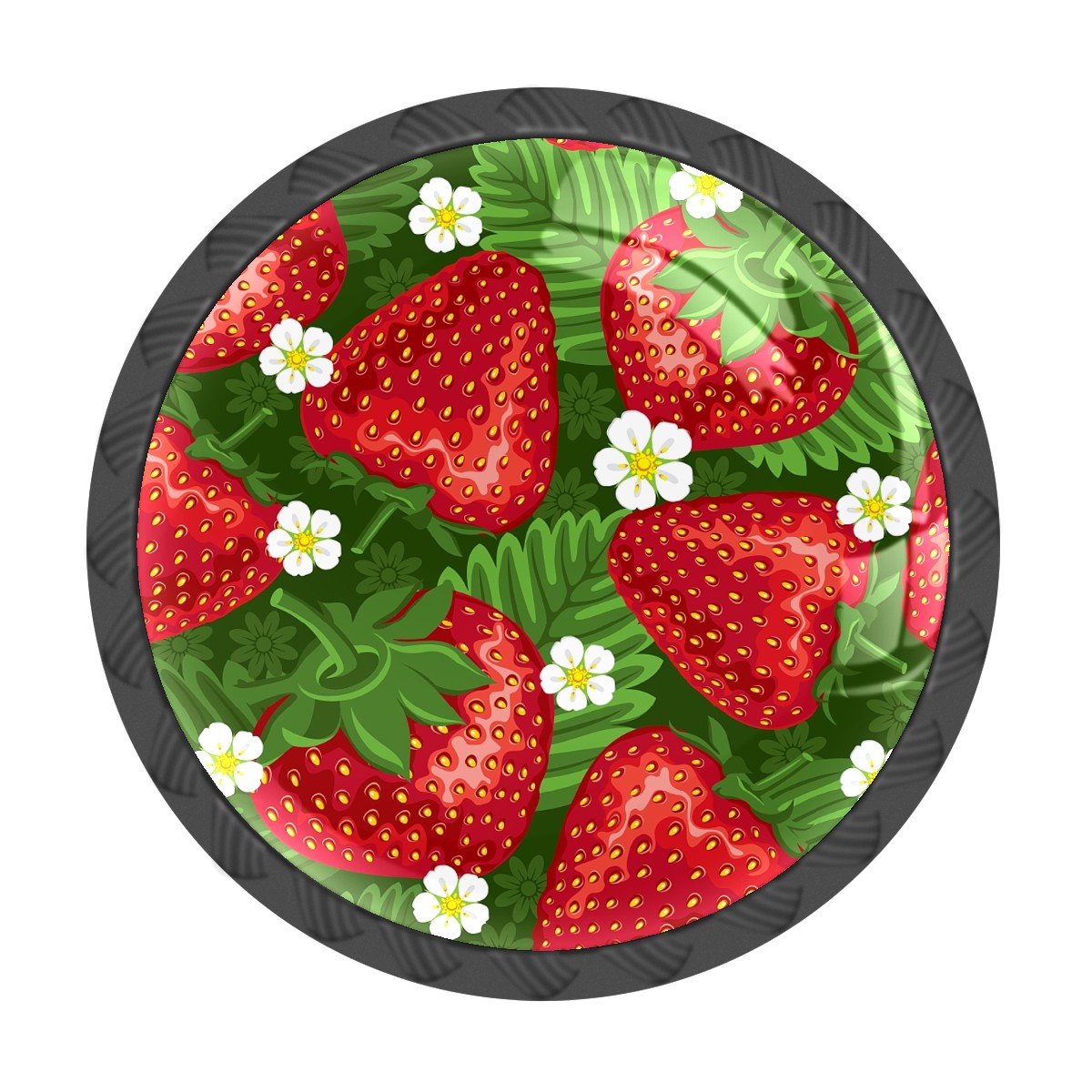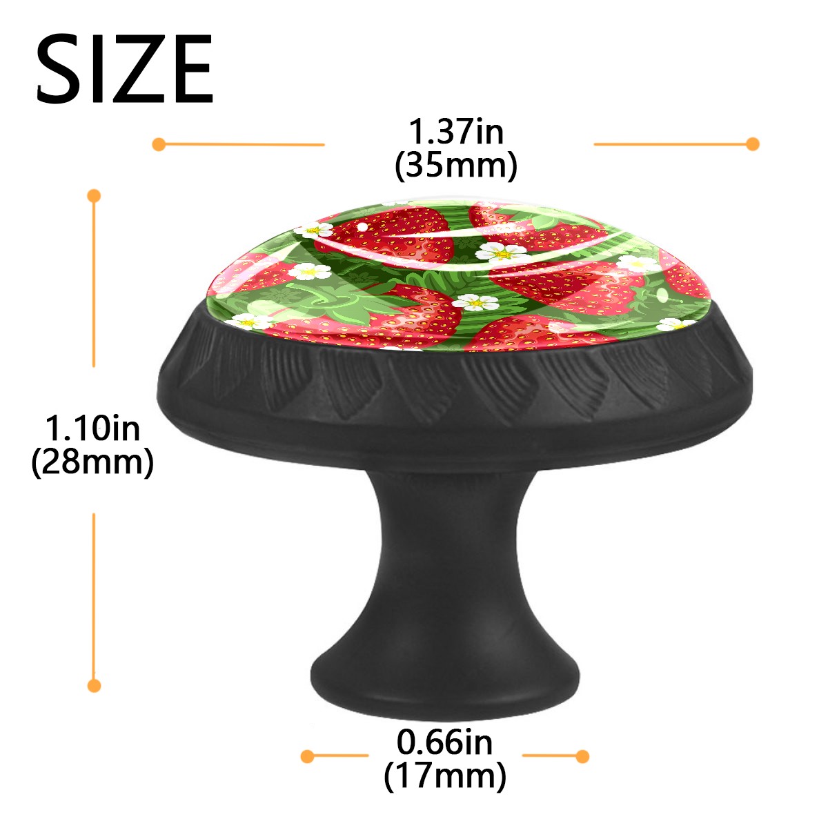 4 Pack Green Strawberry Cabinet Knobs Hardware Crystal Glass Drawer Pulls Knobs for Dresser Kitchen Bathroom Cabinets Drawers Black Furniture Cupboard Wardrobe Handles Round, 1-3/8''