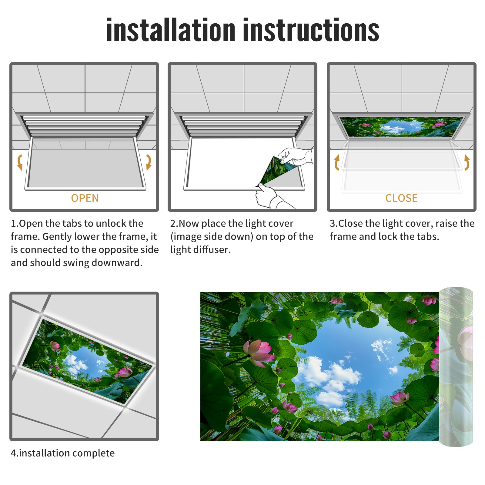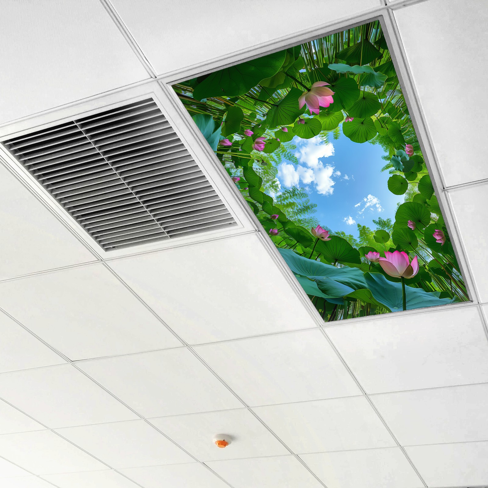 2 Pack Lotus Leaves Pink FlowersLights Fluorescent Light Covers for Classroom Office 2x4ft Celling Fluorescent Decorative Eliminate Harsh Glare,Classroom Decorations