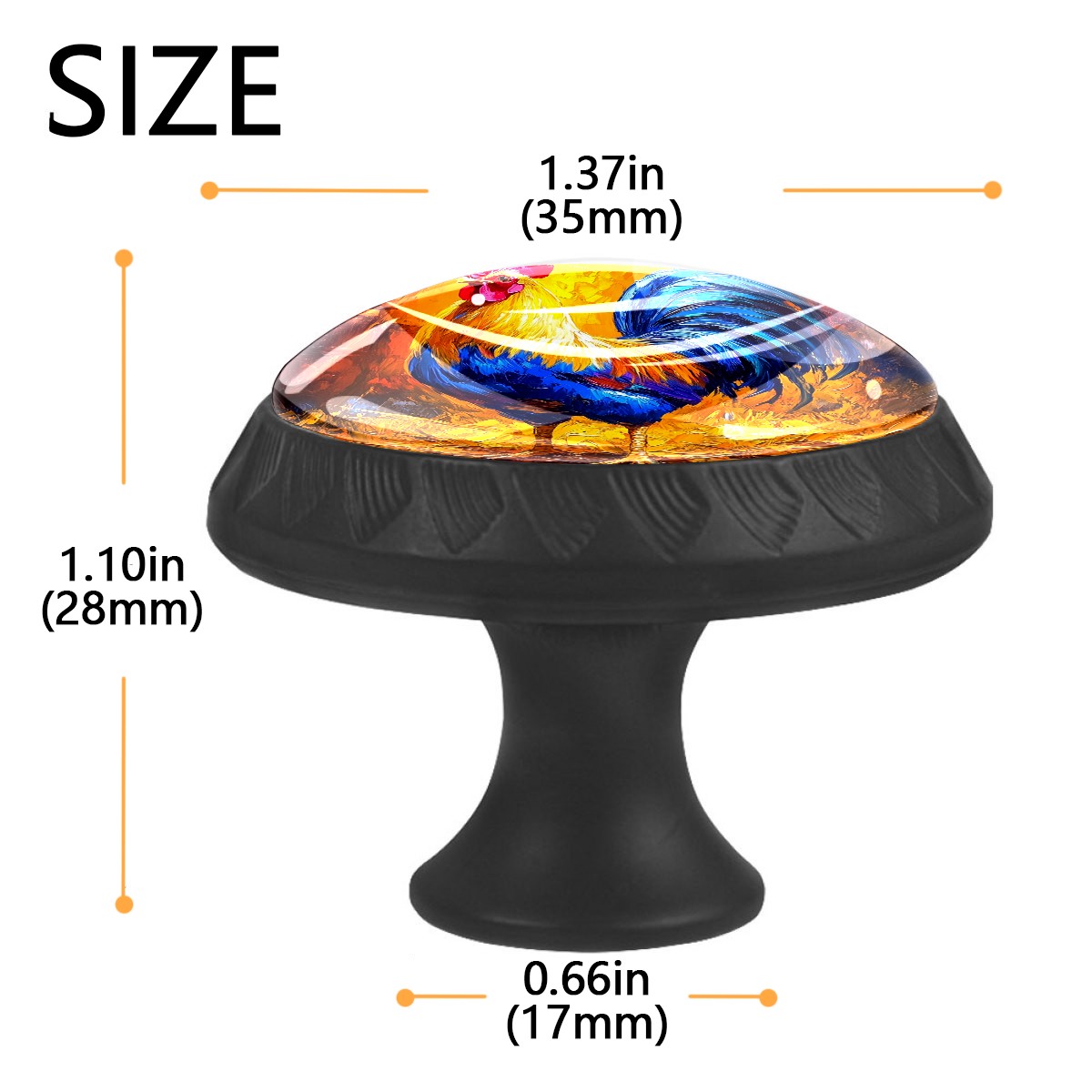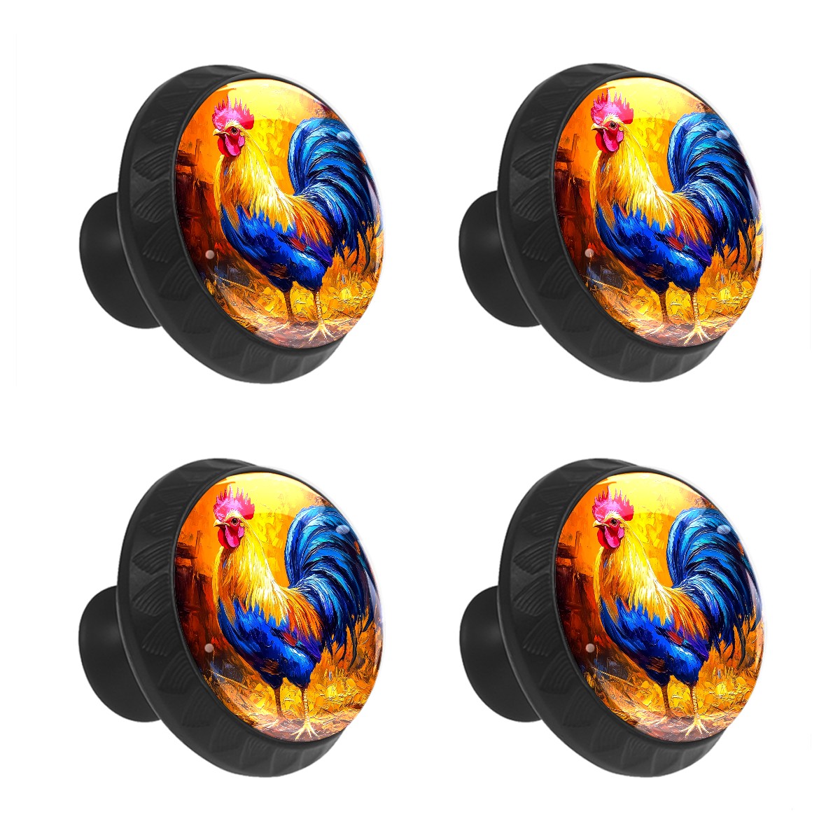 4 Pack Oil Chicken Rooster Cabinet Knobs Hardware Crystal Glass Drawer Pulls Knobs for Dresser Kitchen Bathroom Cabinets Drawers Black Furniture Cupboard Wardrobe Handles Round, 1-3/8''