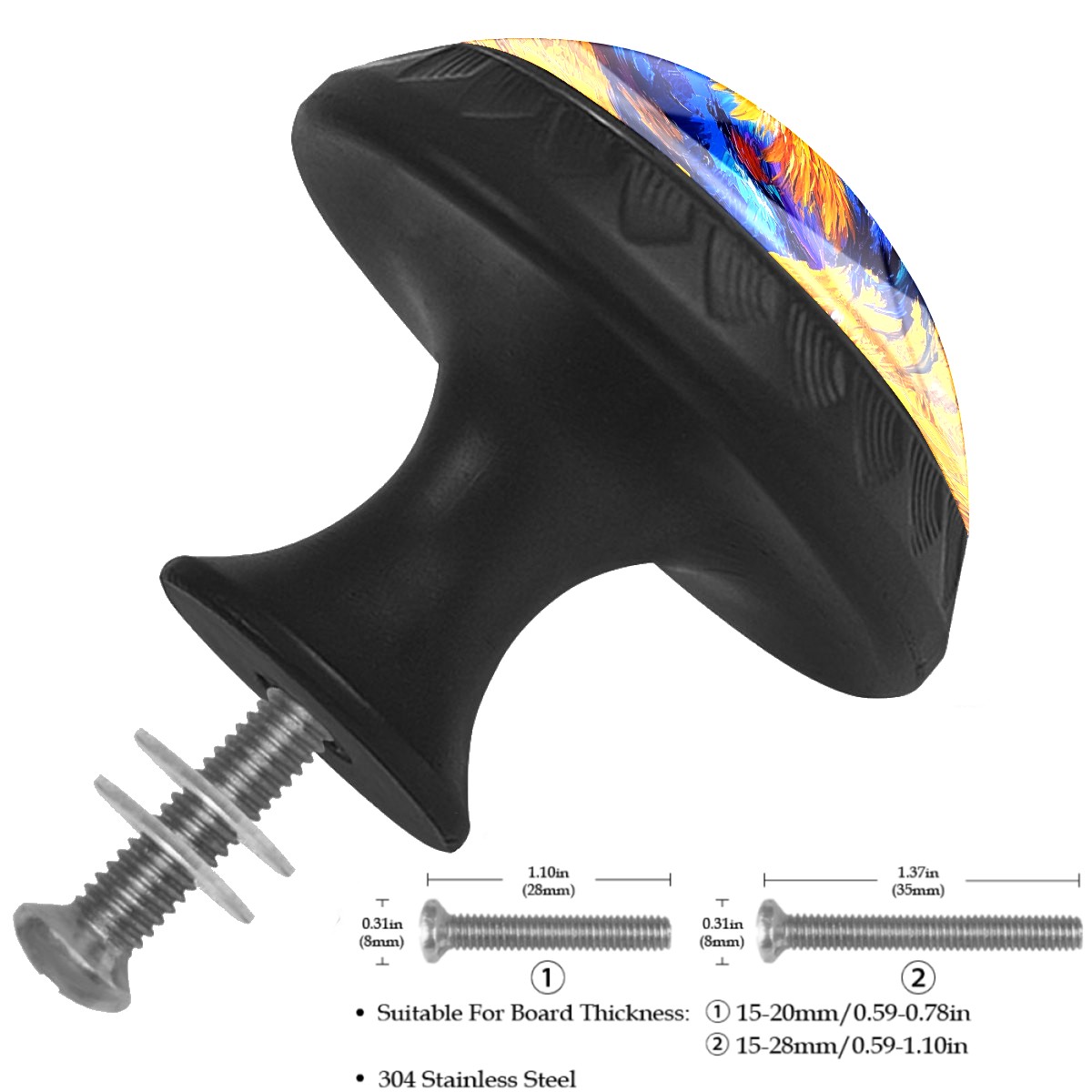 <p><b>Package Includes:</b></p> <p>Drawer Knobs x 4</p> <p>1.10 Inches Mounting Screws x 4</p> <p>1.37 Inches Mounting Screws x 4</p> <p><br></p> <p></p> <p>Crystal Glass Diameter: 1.37 inches (35mm)</p> <p>Knob Height: 1.10 inches (28mm)</p> <p>Base Diameter: 0.66 inches (17mm)</p> <p><b>Practical and Aesthetic:</b></p> <p>The knobs for kitchen cabinets and drawers combine the durability of an ABS base with the high transparency of glass, enhanced by unique patterns that add decoration and cuteness. It’s both practical and visually appealing.</p> <p><b>Pattern Design:</b></p> <p>Clear patterns add decoration and personalization. Cabinet knobs and pulls enhance visual appeal and can match different home styles, meeting diverse design needs.</p> <p><b>Easy Installation:</b></p> <p>Equipped with mounting screws, the ABS base can be securely attached to the drawer with ease.</p> <p><b>Easy Cleaning:</b></p> <p>The smooth surface of the round glass drawer knobs resists dust and stains, making it easy to clean with just a damp cloth.</p> <p><b>Wear-Resistant:</b></p> <p>The bathroom cabinet knobs are designed to resist scratches and fading, maintaining their good appearance over long-term use.</p>