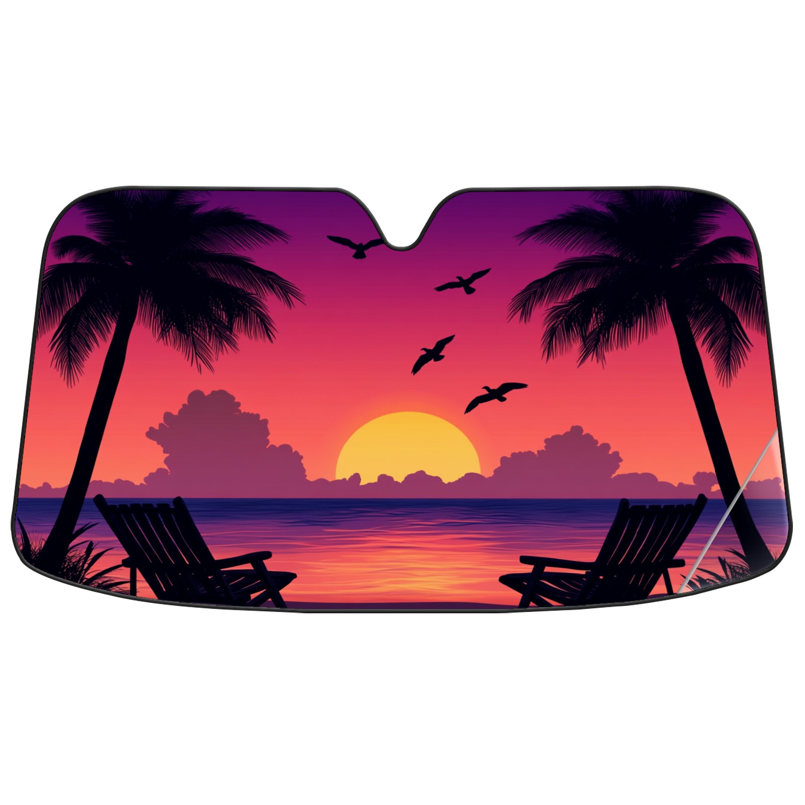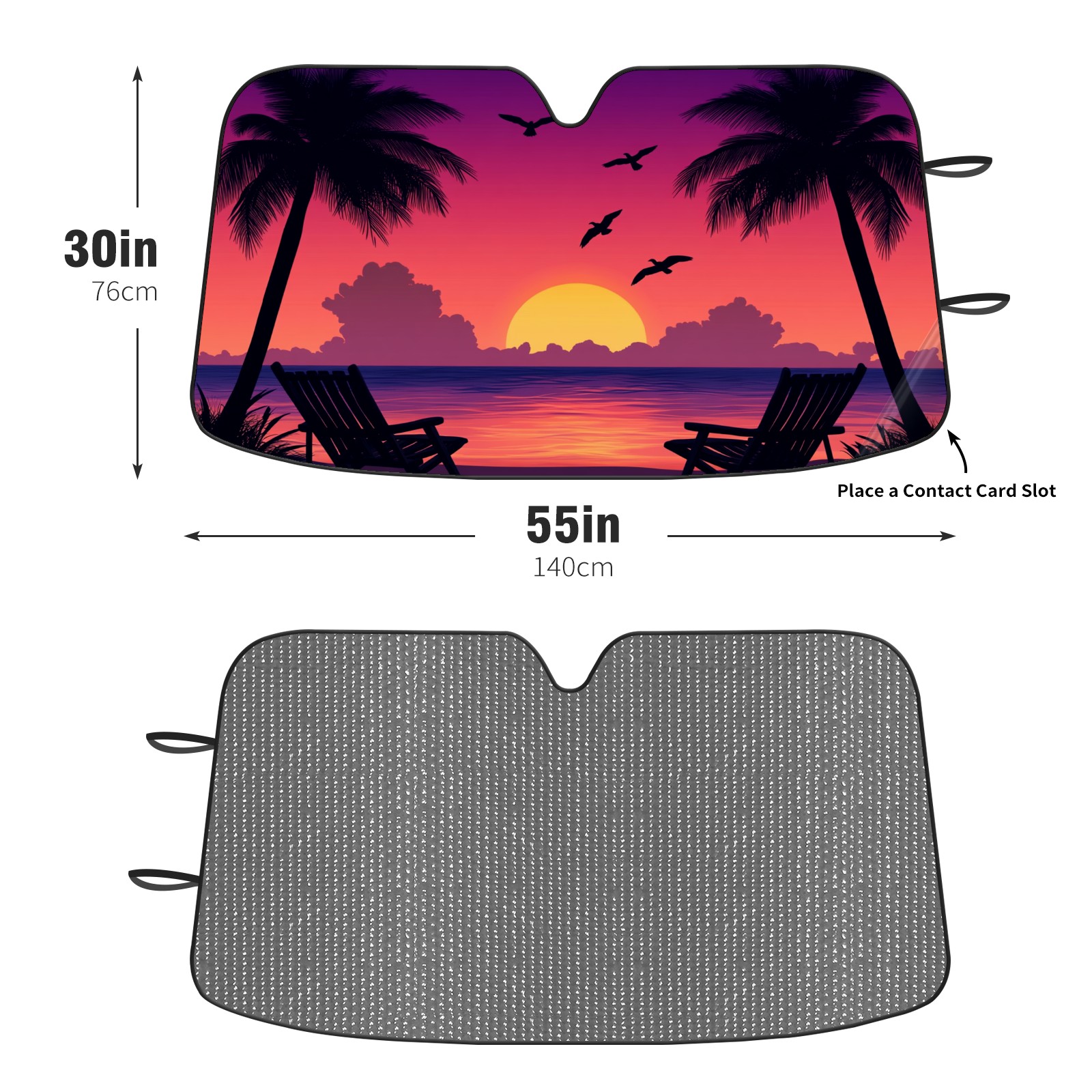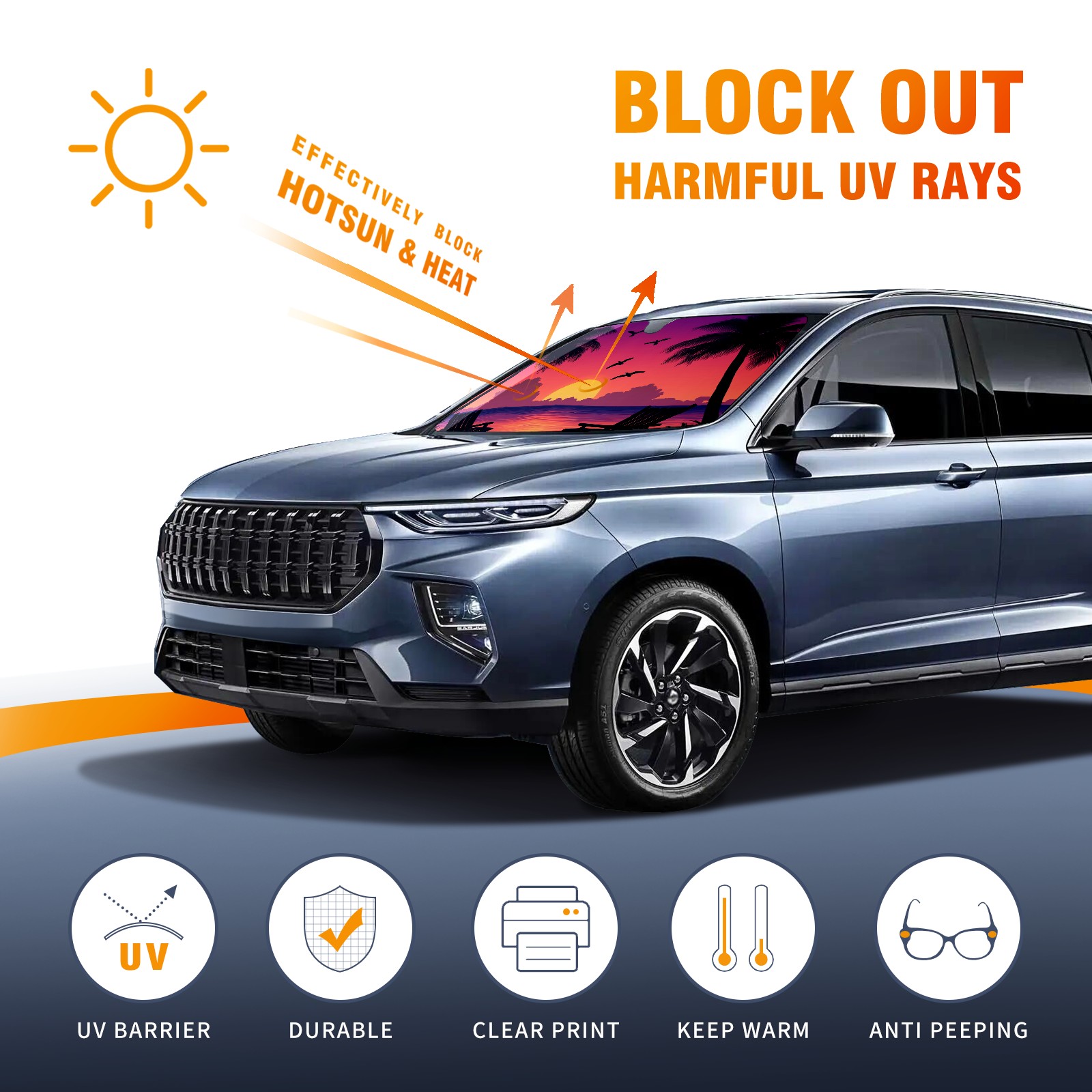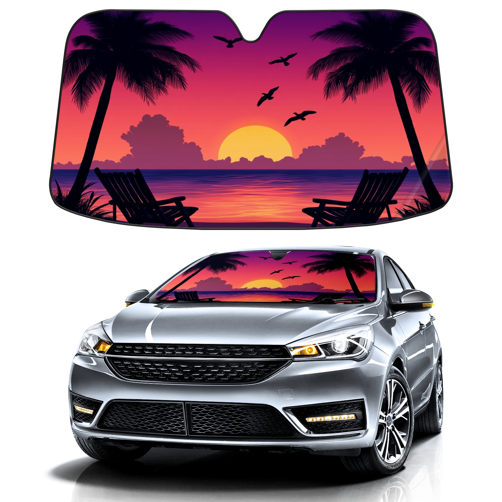 Car Windshield Sun Shade Foldable-Universal Fit Sunshade for Front Windows, UV Protection Heat Shield for Most Vehicles (55x30in)-Sun Visor Extender, Dashboard Cover(Purple Sunset Seagull)