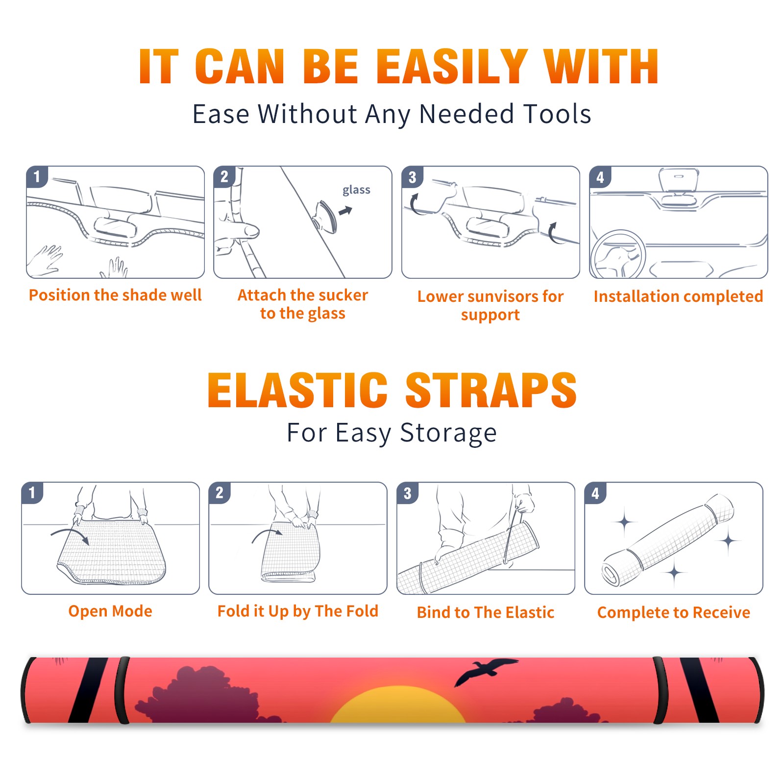 • <p>Stay cool and protect your car’s interior with our&nbsp;<strong>universal-fit windshield sun shade</strong>, designed to block&nbsp;<strong>99% of harmful UV rays</strong>&nbsp;and reduce cabin heat by up to&nbsp;<strong>60°F</strong>. Perfect for sedans, SUVs, and trucks, this&nbsp;<strong>foldable sunshade</strong>&nbsp;features a&nbsp;<strong>heavy-duty reflective surface</strong>&nbsp;that ensures maximum coverage for your&nbsp;<strong>car windshield</strong>.<br></p>