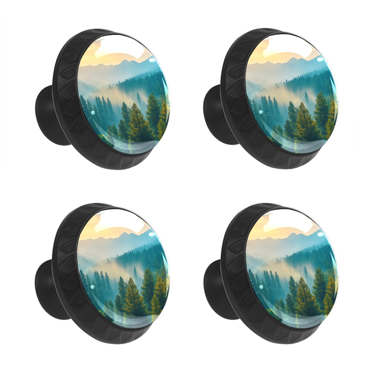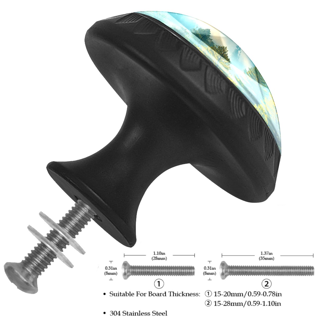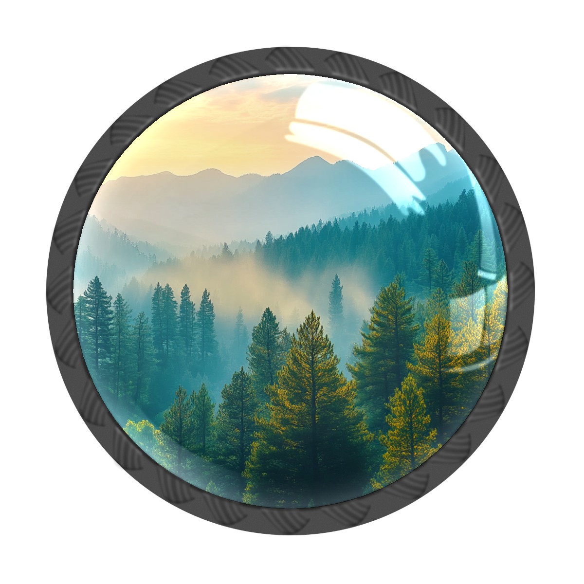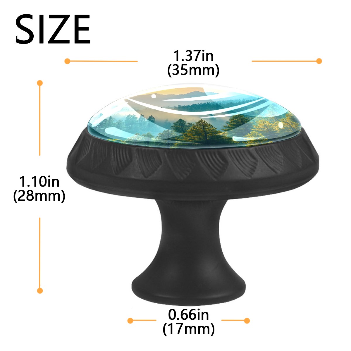 4 Pack Forest Landscape Cabinet Knobs Hardware Crystal Glass Drawer Pulls Knobs for Dresser Kitchen Bathroom Cabinets Drawers Black Furniture Cupboard Wardrobe Handles Round, 1-3/8''