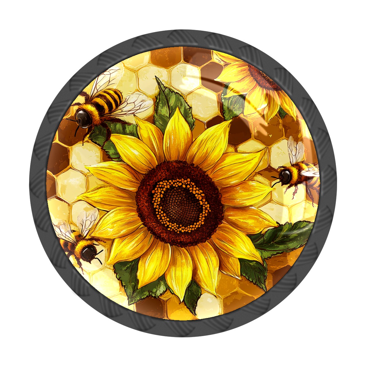 4 Pack Sunflower Yellow Bee Cabinet Knobs Hardware Crystal Glass Drawer Pulls Knobs for Dresser Kitchen Bathroom Cabinets Drawers Black Furniture Cupboard Wardrobe Handles Round, 1-3/8''