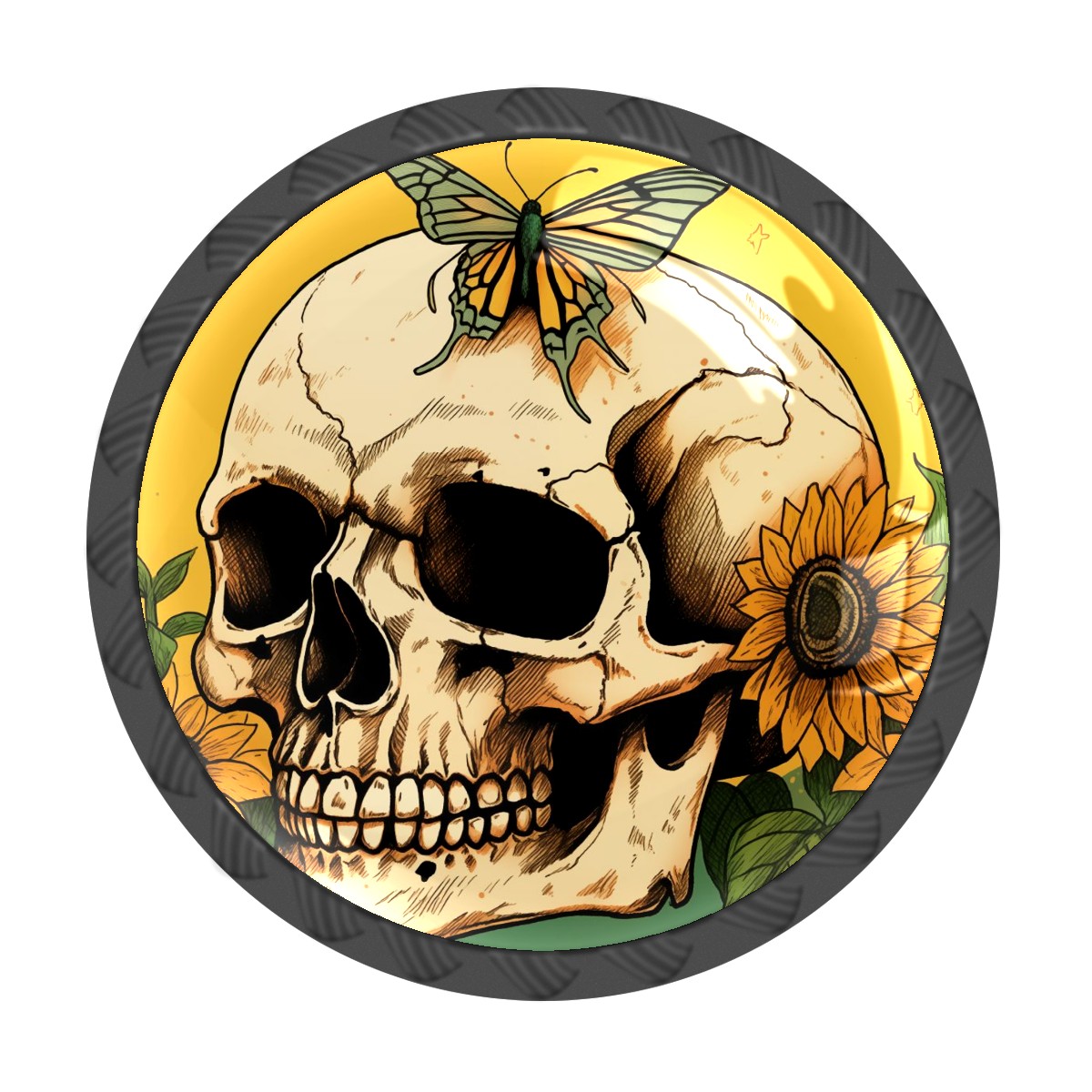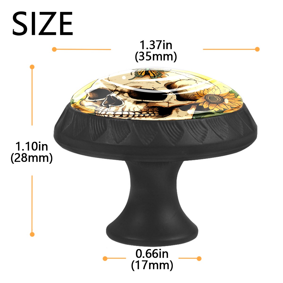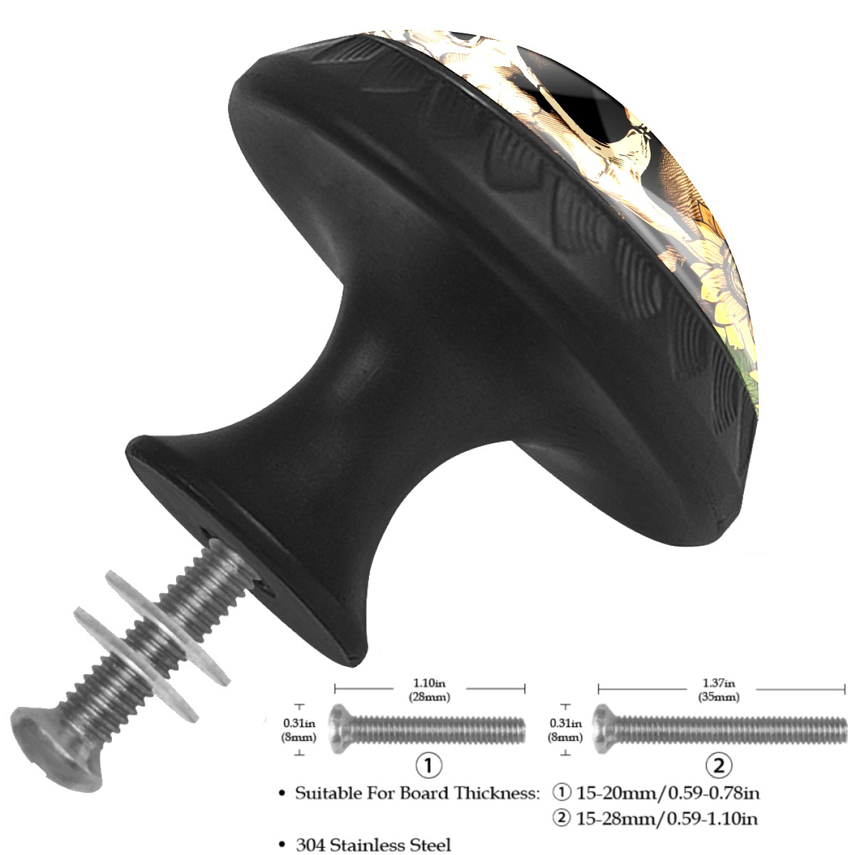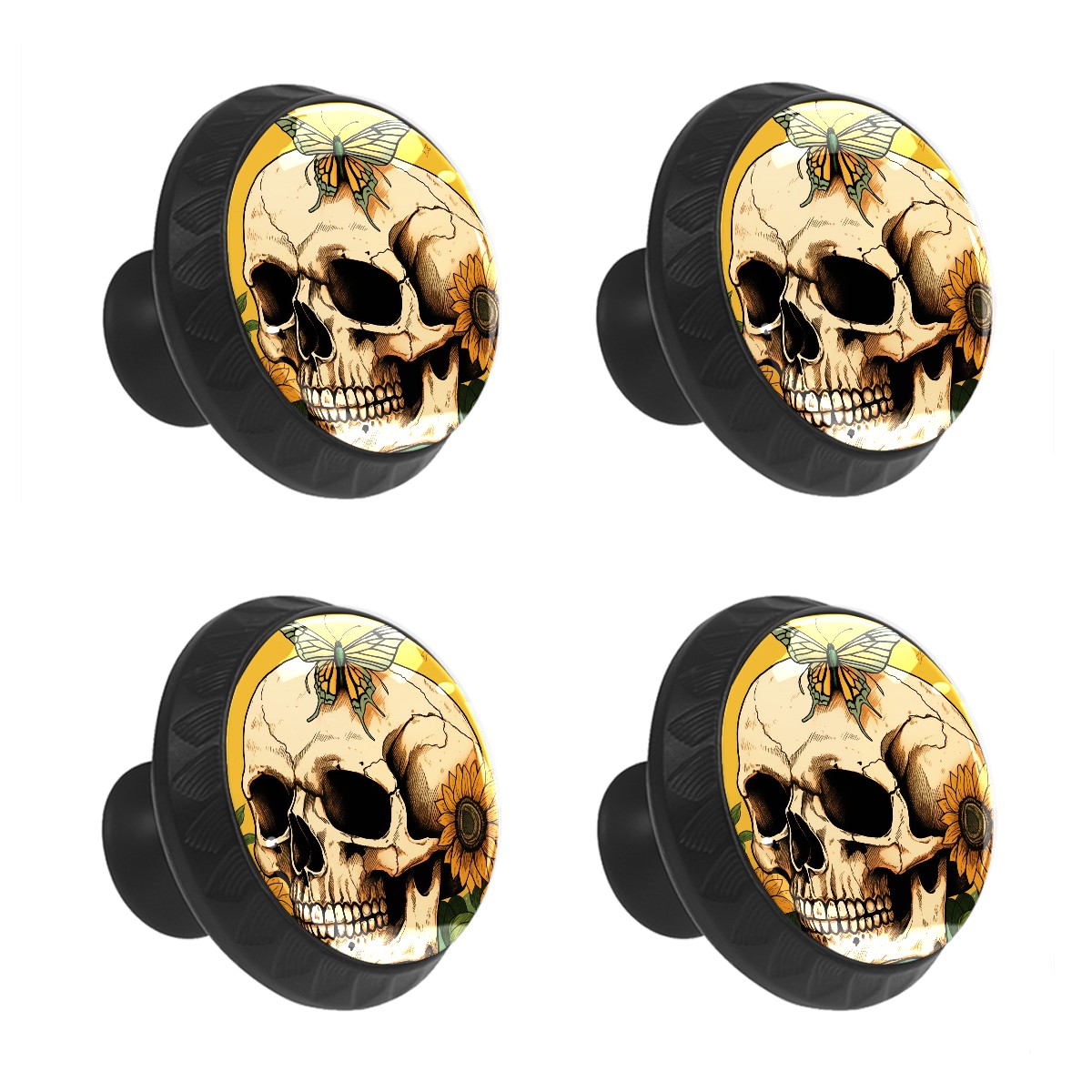 4 Pack Skull With Sunflowers Cabinet Knobs Hardware Crystal Glass Drawer Pulls Knobs for Dresser Kitchen Bathroom Cabinets Drawers Black Furniture Cupboard Wardrobe Handles Round, 1-3/8''