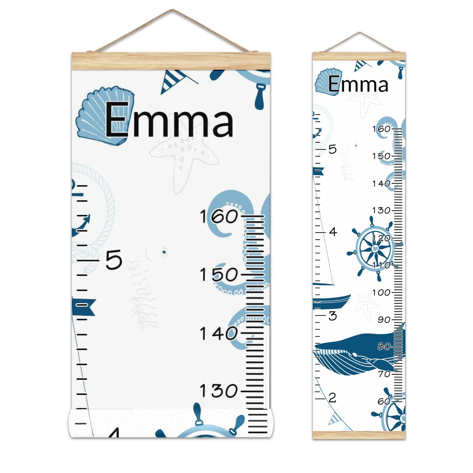Personalized Kids Name Growth Chart Ruler for Wall Wood Frame Canvas Height Measure Chart 13.4x56 in Hanging Growth Chart Nautical Lighthouse Sailboat4.14 Boys Girls Room Decor