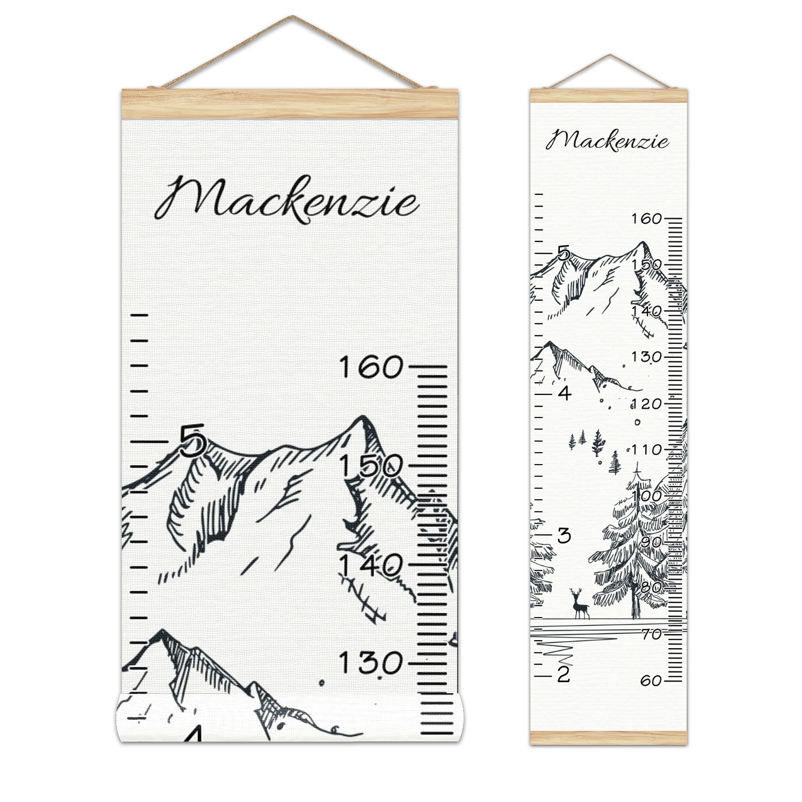 Personalized Kids Name Growth Chart Ruler for Wall Wood Frame Canvas Height Measure Chart 13.4x56 in Hanging Growth Chart Winter Mountain4.14 Boys Girls Room Decor