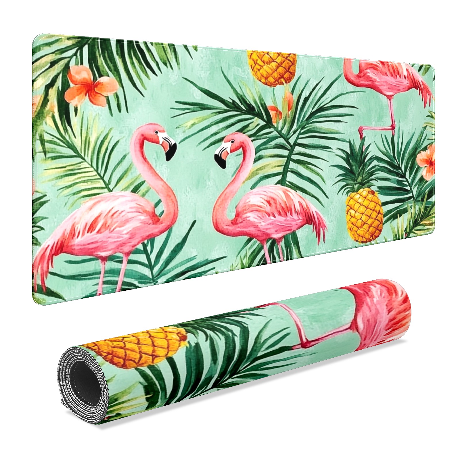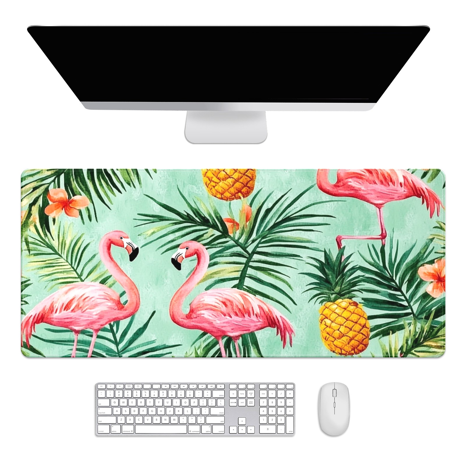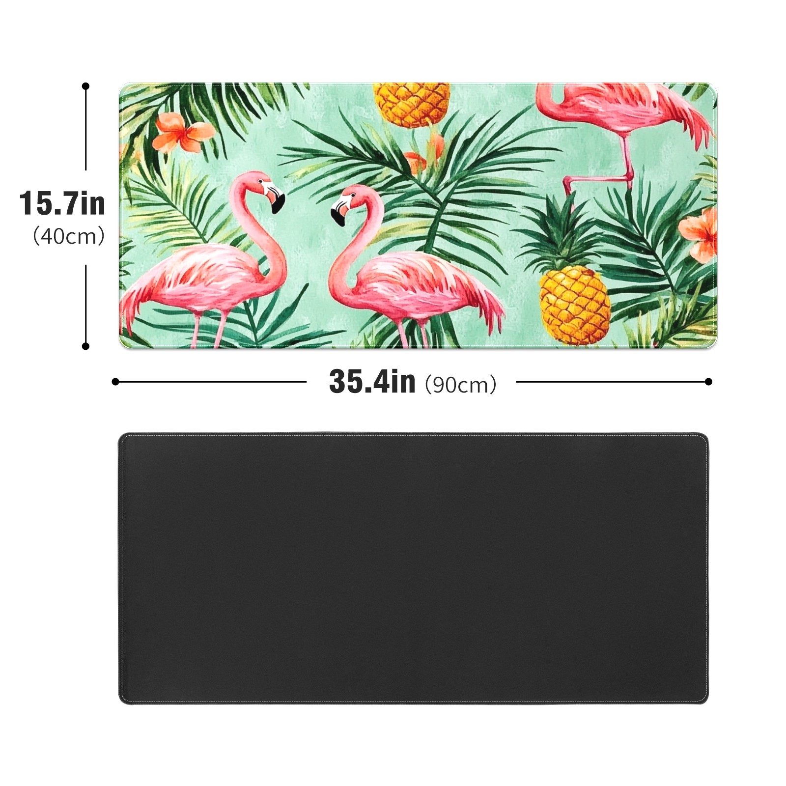Large Gaming Mouse Pad Watercolor Pink Flamingos Pineapples Desk Pad XXL Extended Non-Slip Rubber Base Mousepad Waterproof Keyboard Mouse Mat for Laptop Desktop, Desk Mat for Office Work (35.4x15.7in)