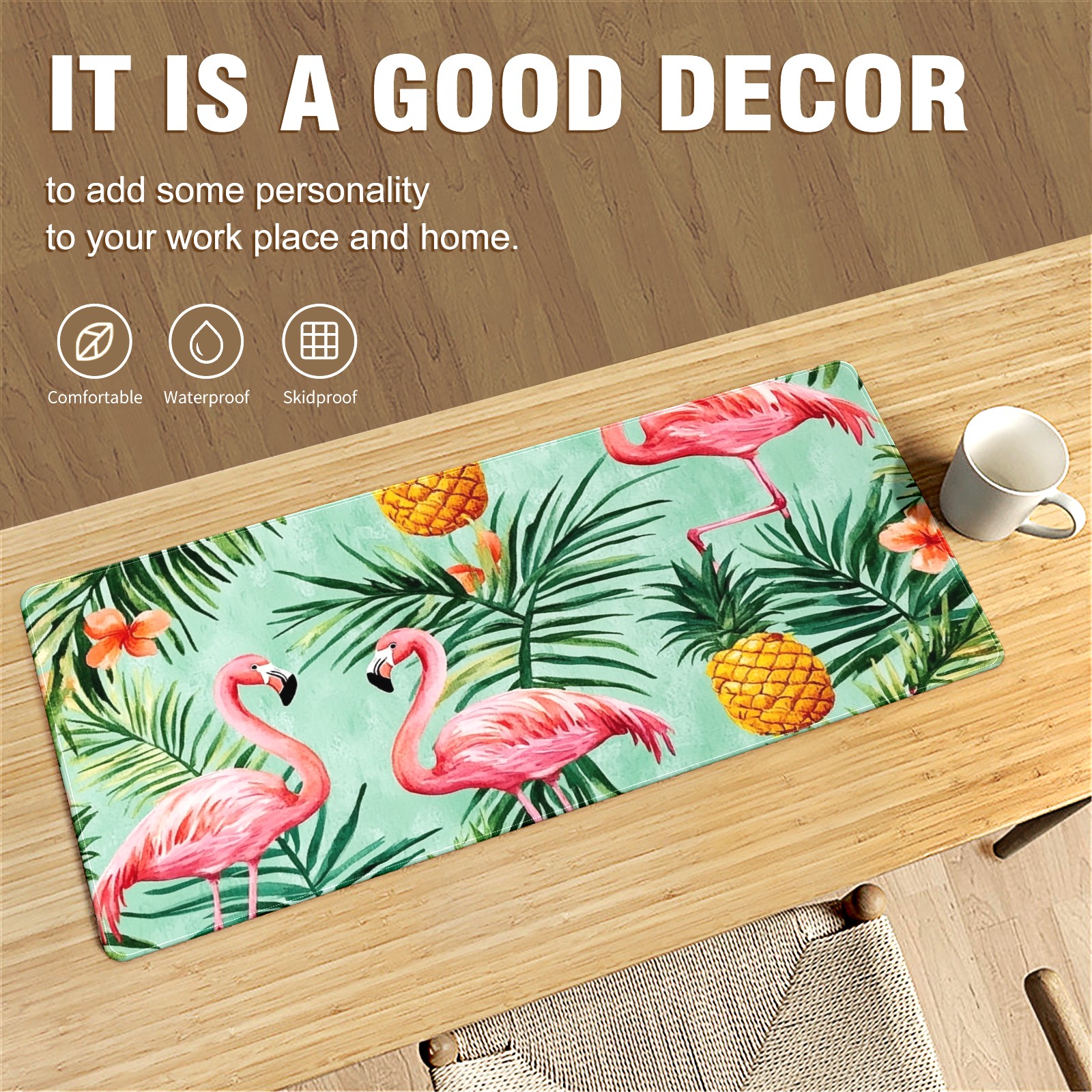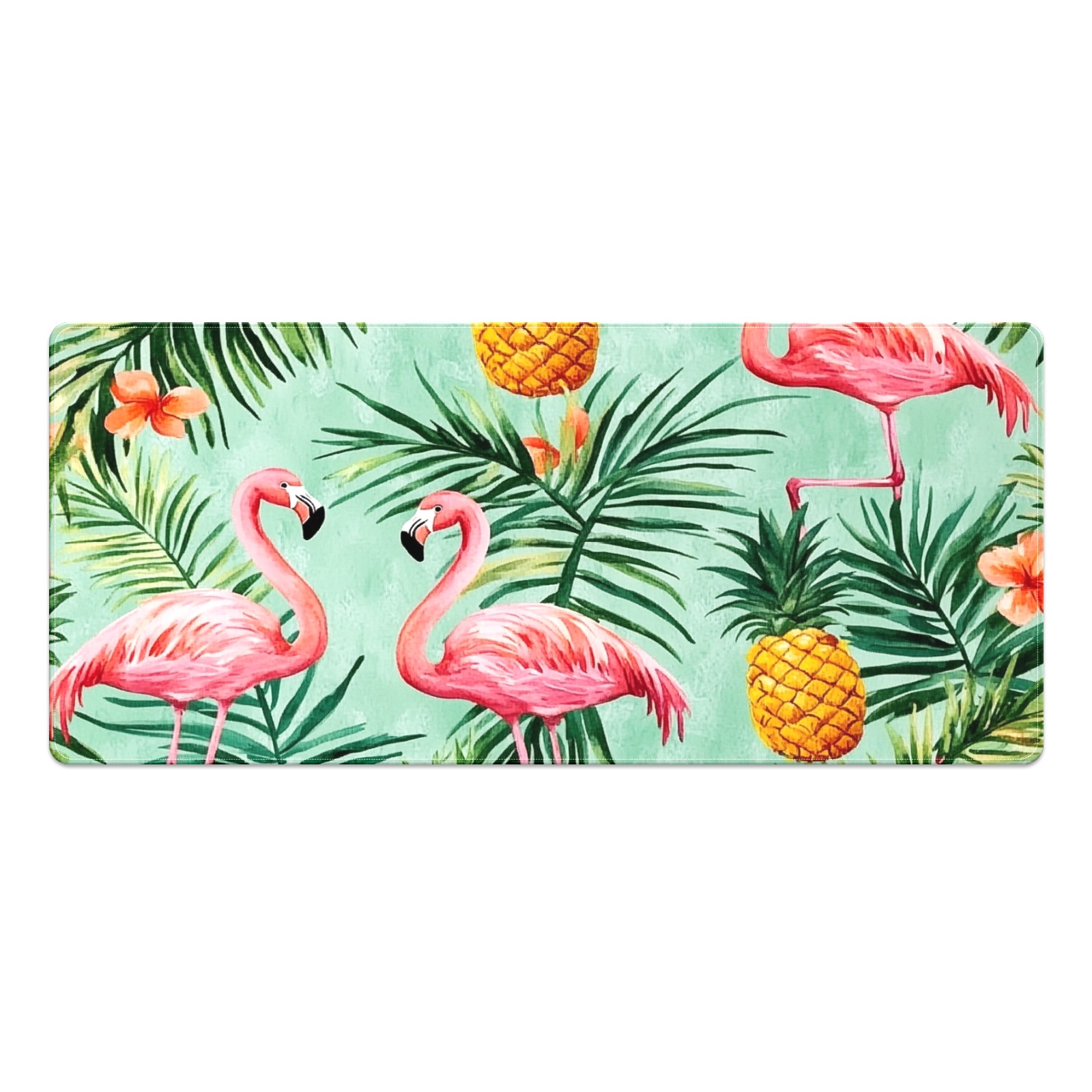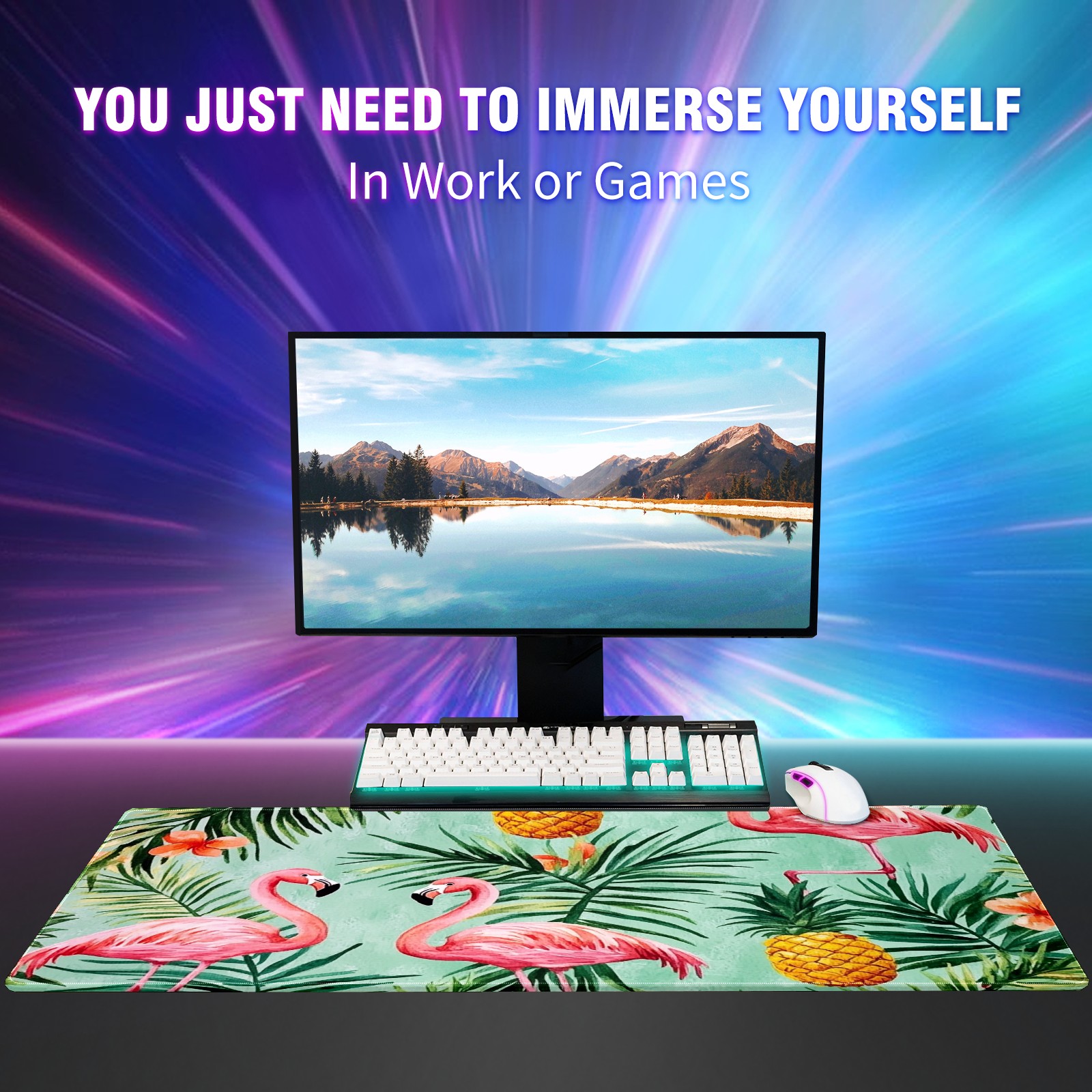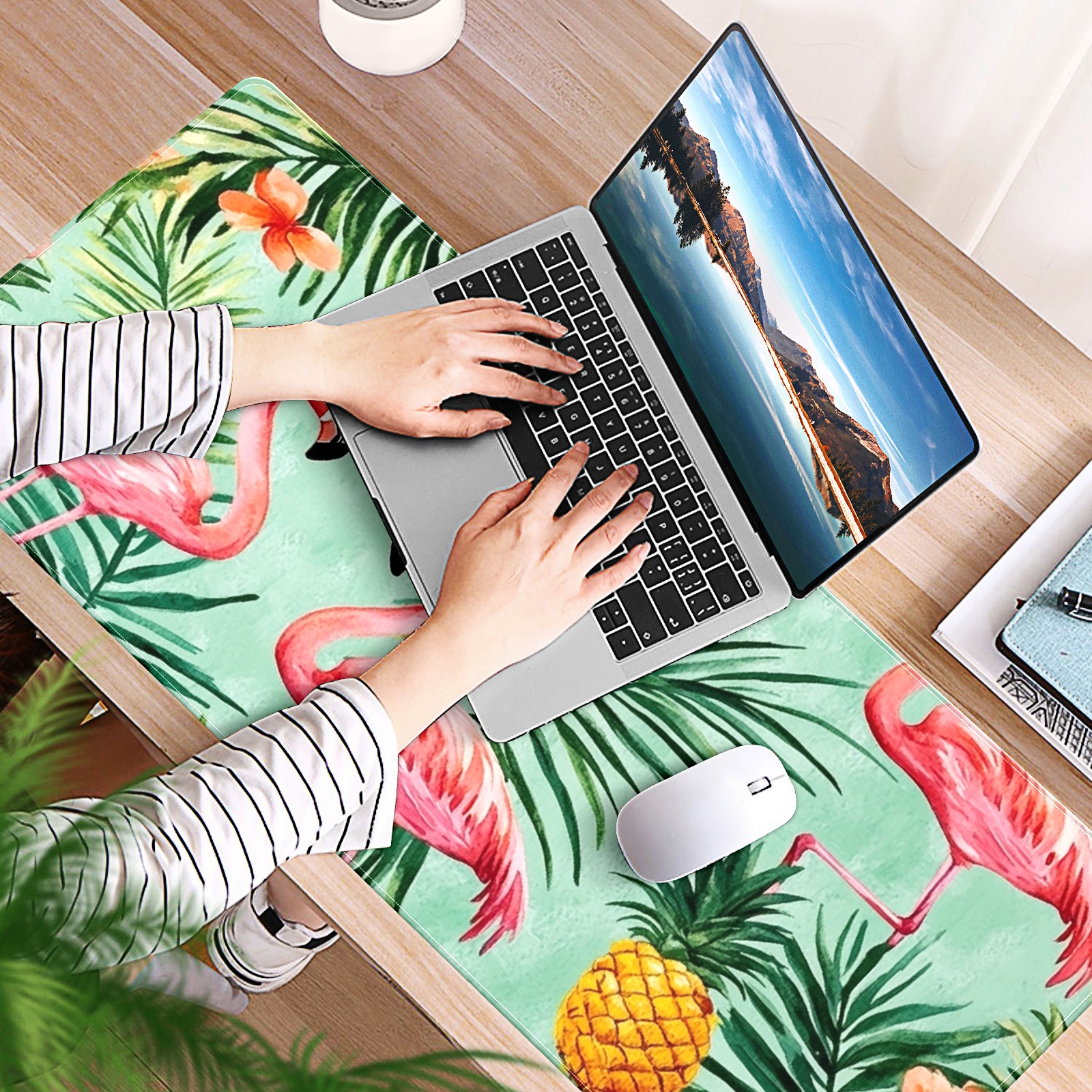 Large Gaming Mouse Pad Watercolor Pink Flamingos Pineapples Desk Pad XXL Extended Non-Slip Rubber Base Mousepad Waterproof Keyboard Mouse Mat for Laptop Desktop, Desk Mat for Office Work (35.4x15.7in)