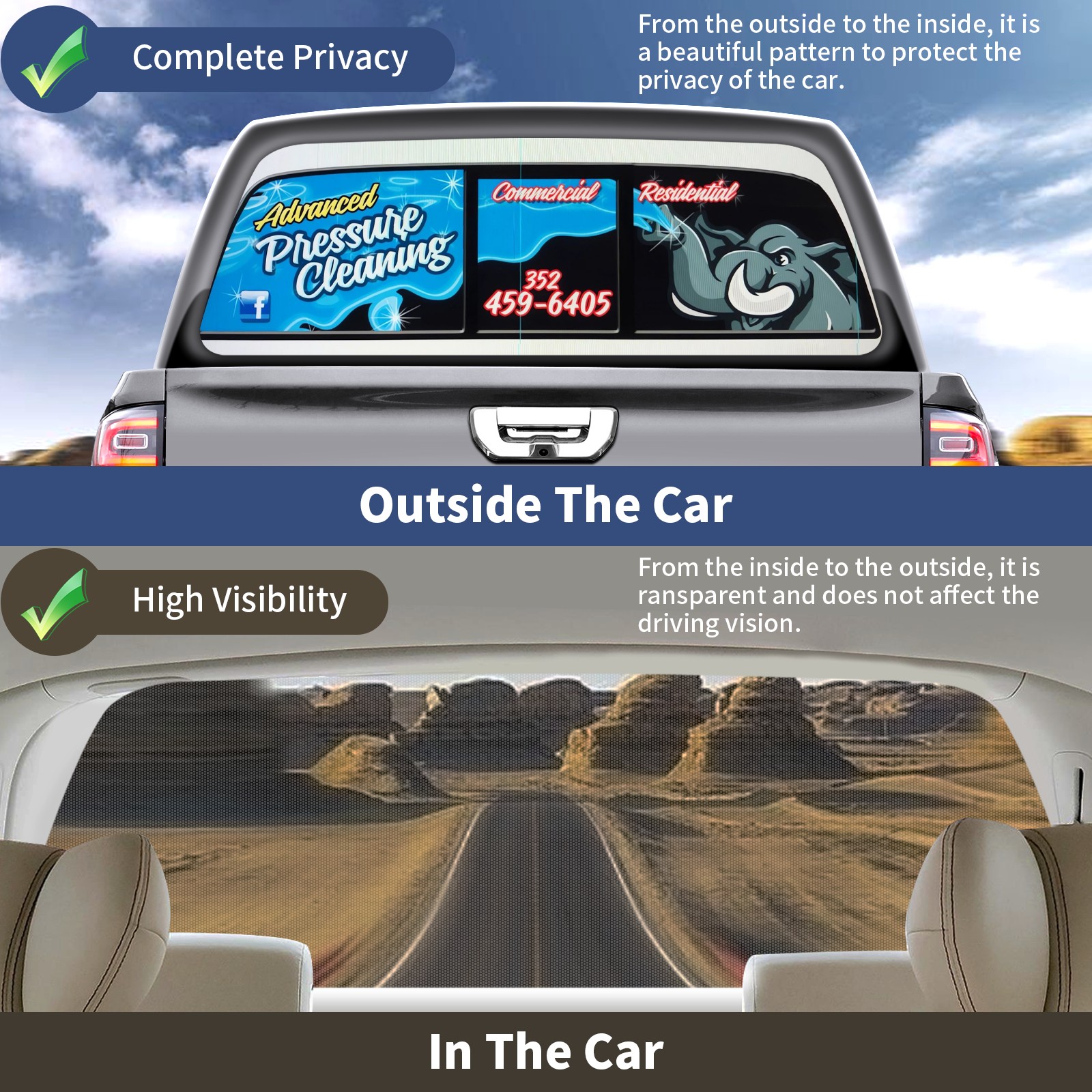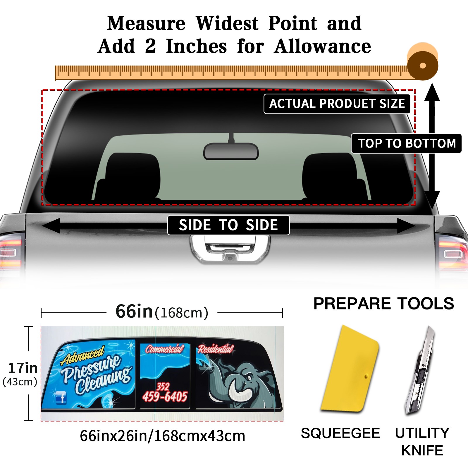 <p><strong>Truck Rear Window Graphics Decals Pickup Trucks Back Window Film Stickers 66" x 22" Perforated Vinyl Wrap Stickers Decorations for Car Rear Window</strong></p><p><strong><br /></strong></p><p><strong>Features :</strong></p><p>- Size of the rear window decals for trucks is 66x22 Inches (168x56cm).</p><p>- High quality perforated vinyl window film, one way vision sticker.</p><p>- Perforated is see through from the inside but not from outside.</p><p>- Clear printing, waterproof and durable.</p><p>- The car back window graphics stickers fits most truck and makes your vehicle more beautiful.&nbsp;</p><p><br /></p><p><strong>【Installation Instructions】</strong></p><p><strong>1. CLEAN SURFACE -</strong> Clean the rear window thoroughly and make sure the surface clean.</p><p><strong>2. STICK THE DECALS -</strong> Tear off the paper on the back and stick the decal on the window.</p><p><strong>3. SCRAPE OFF AIR BUBBLES -</strong> Use a squeegee or other card to scrape off the excess air bubbles.</p><p><strong>4. TRIM THE EXCESS -</strong> Use a knife to cut off the excess stickers of the window, finally complete.</p><p><br /></p><p>1. Please measure the size before purchasing, back window graphics decal for truck can be cut to your desired size.</p><p>2.The graphics stickers for truck back window is a great gift for yourself also can as a birthday / halloween / christmas gift for your friends and family.</p>