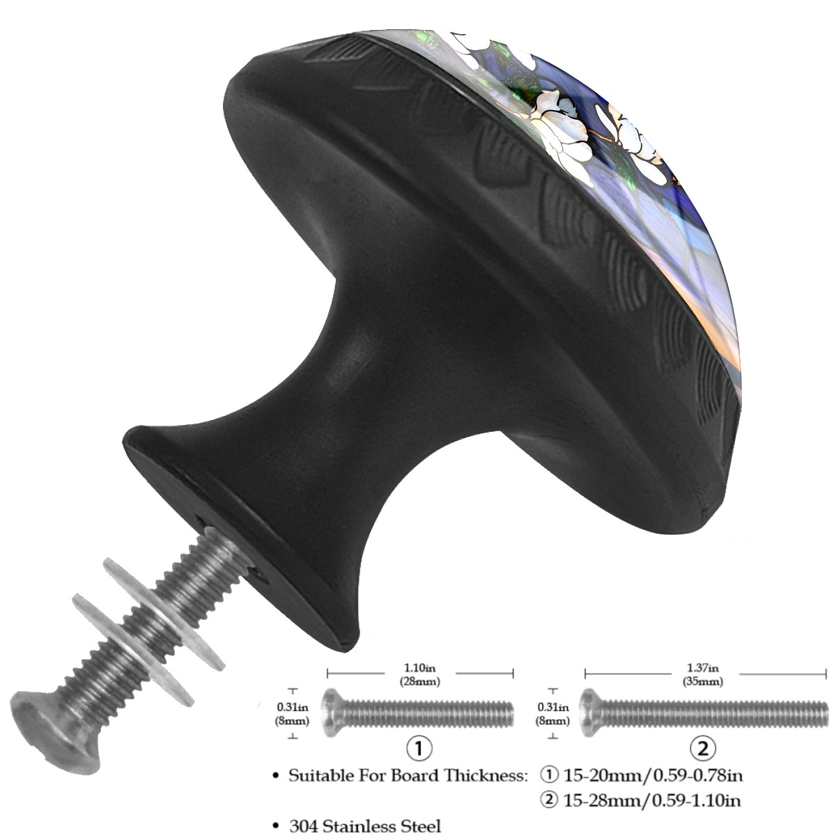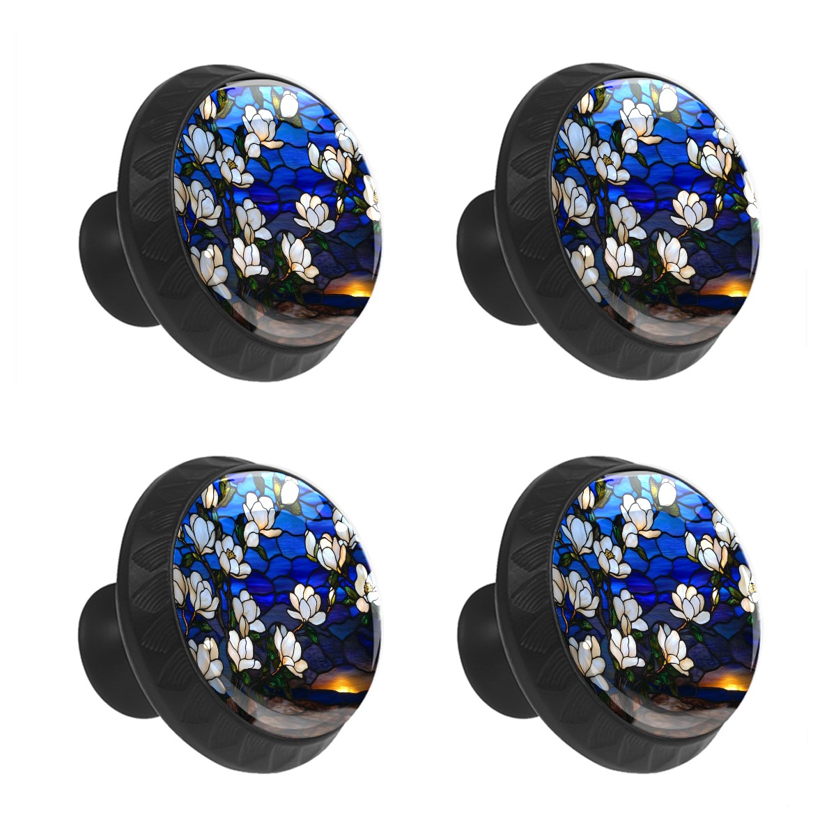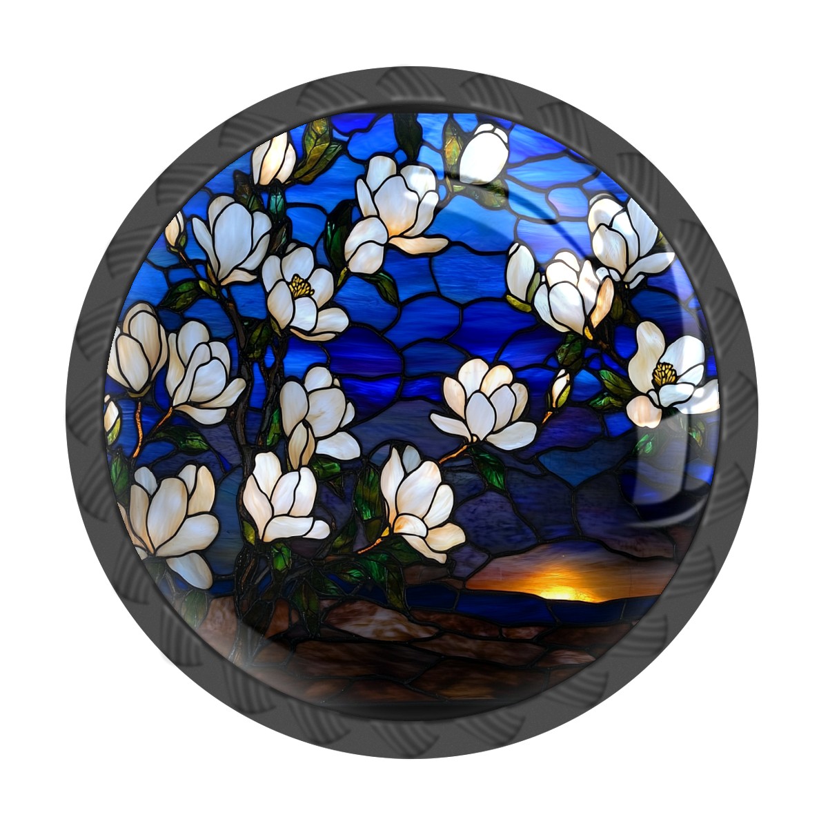 4 Pcs Drawer Knobs White Magnolia Blossoms Round Crystal Glass Knobs Pulls for Dressers Kitchen Cabinets Drawers Wardrobe Cupboard Furniture Hardware Handles