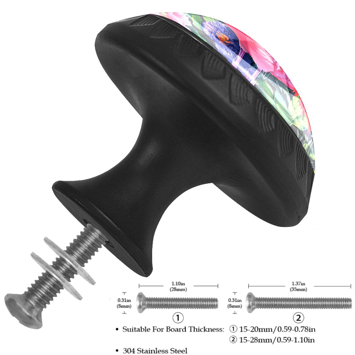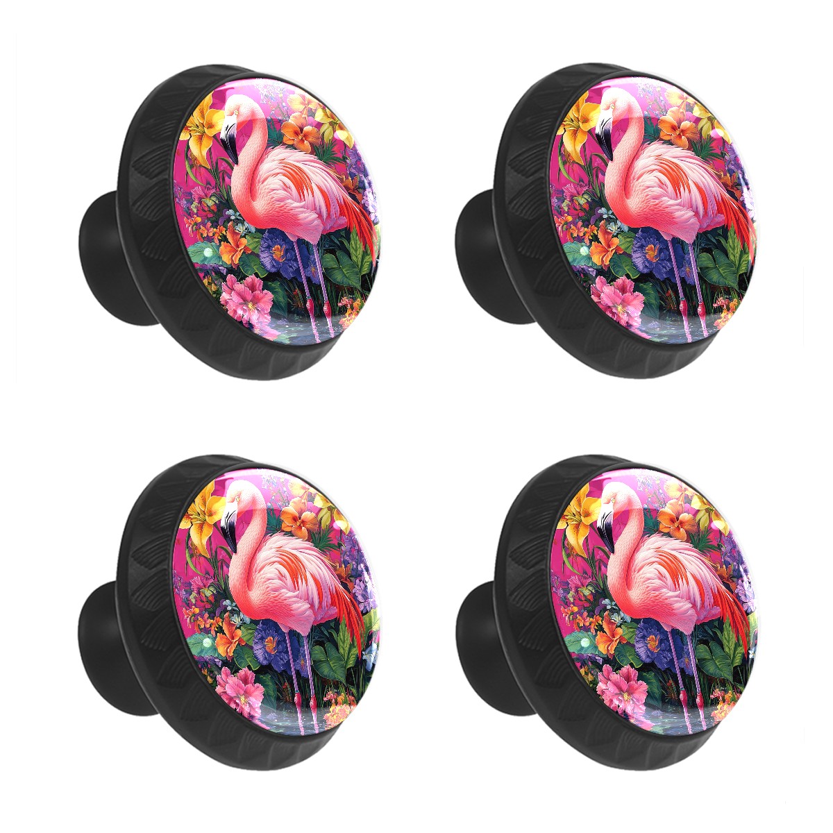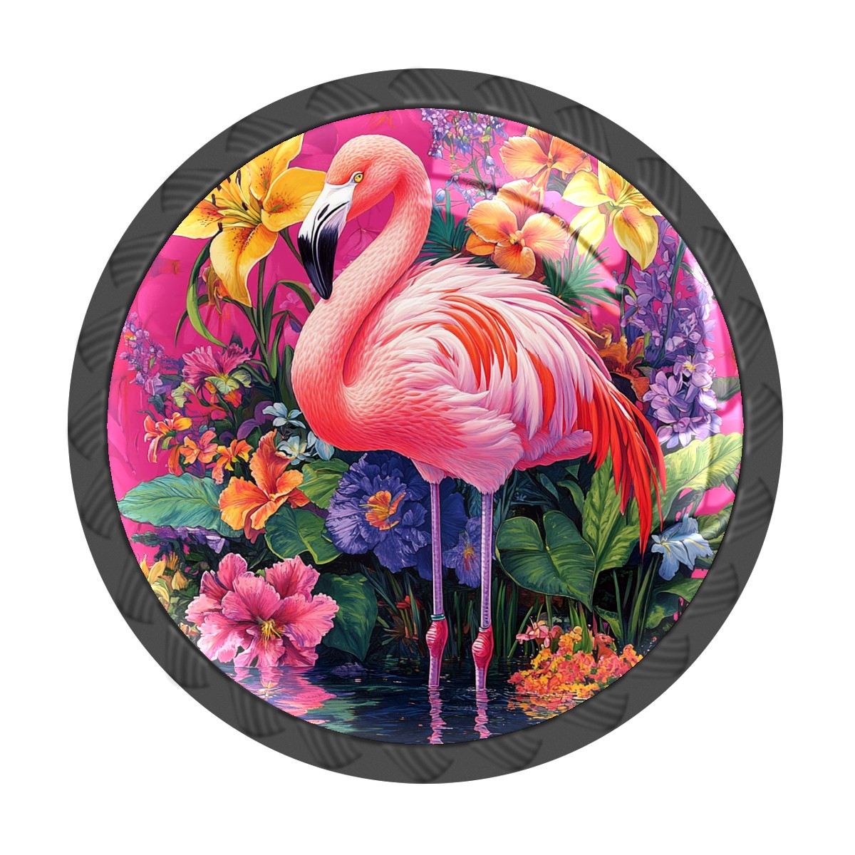 4 Pcs Drawer Knobs Pink Flamingo Tropical Flowers Round Crystal Glass Knobs Pulls for Dressers Kitchen Cabinets Drawers Wardrobe Cupboard Furniture Hardware Handles