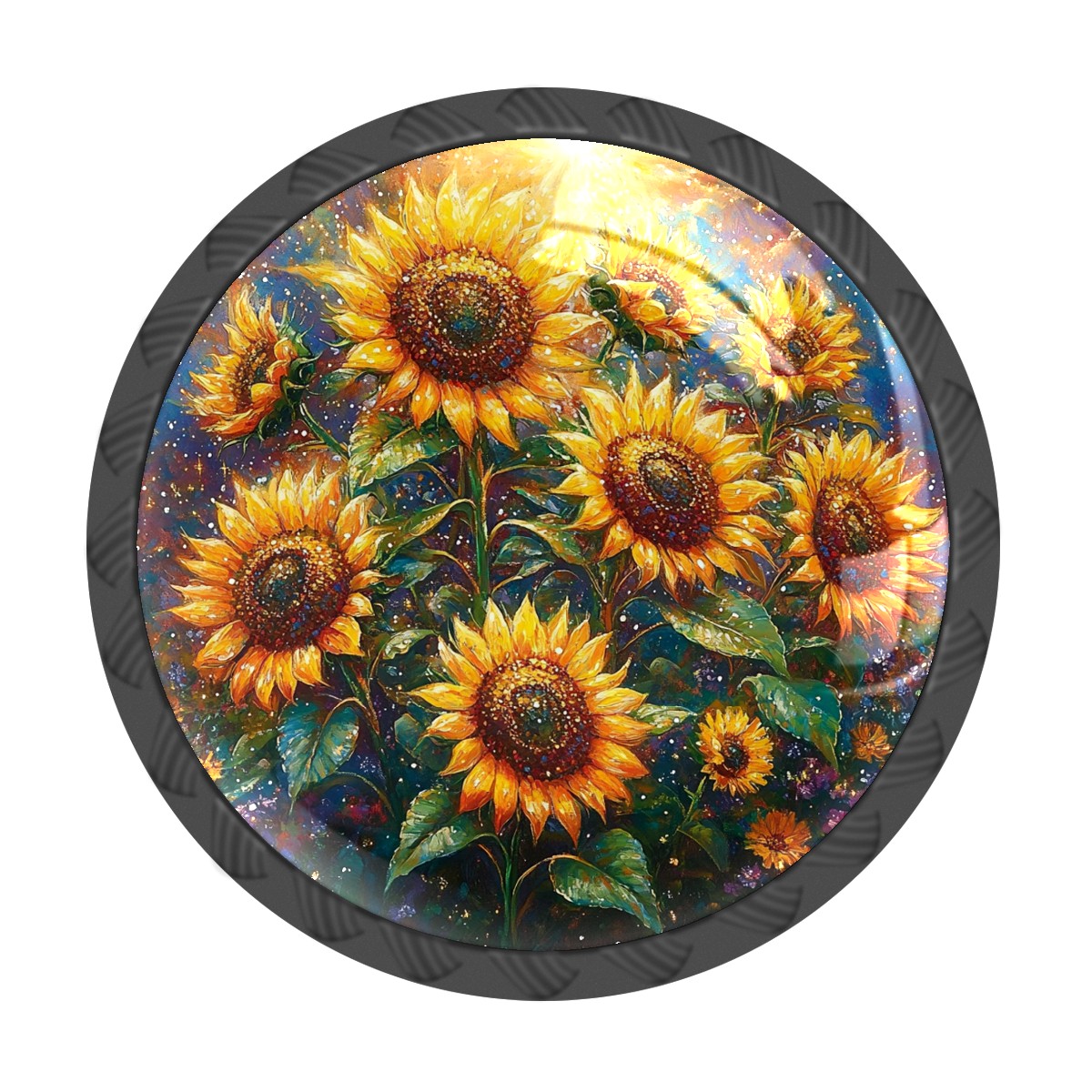 4 Pcs Drawer Knobs Sunflowers Golden Round Crystal Glass Knobs Pulls for Dressers Kitchen Cabinets Drawers Wardrobe Cupboard Furniture Hardware Handles