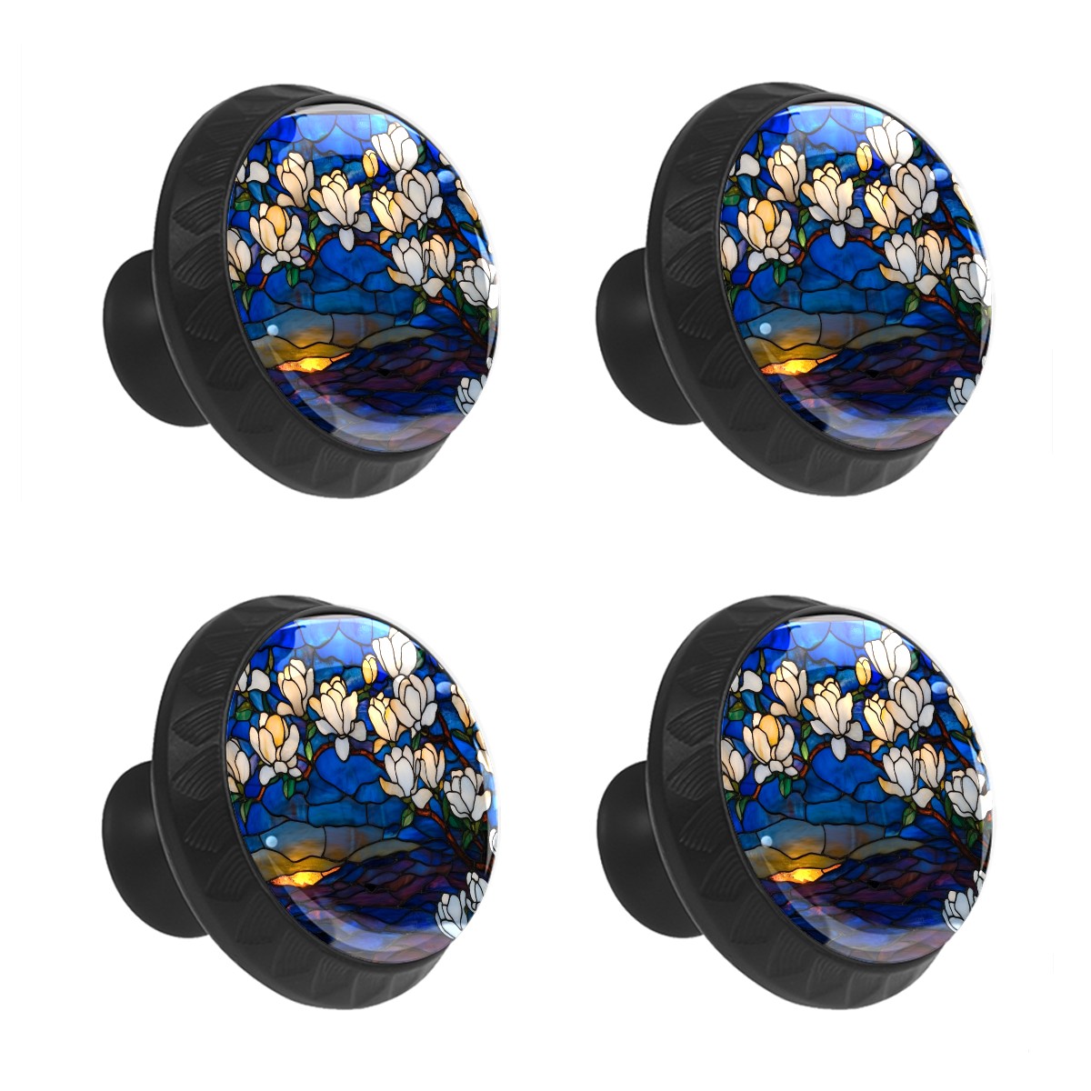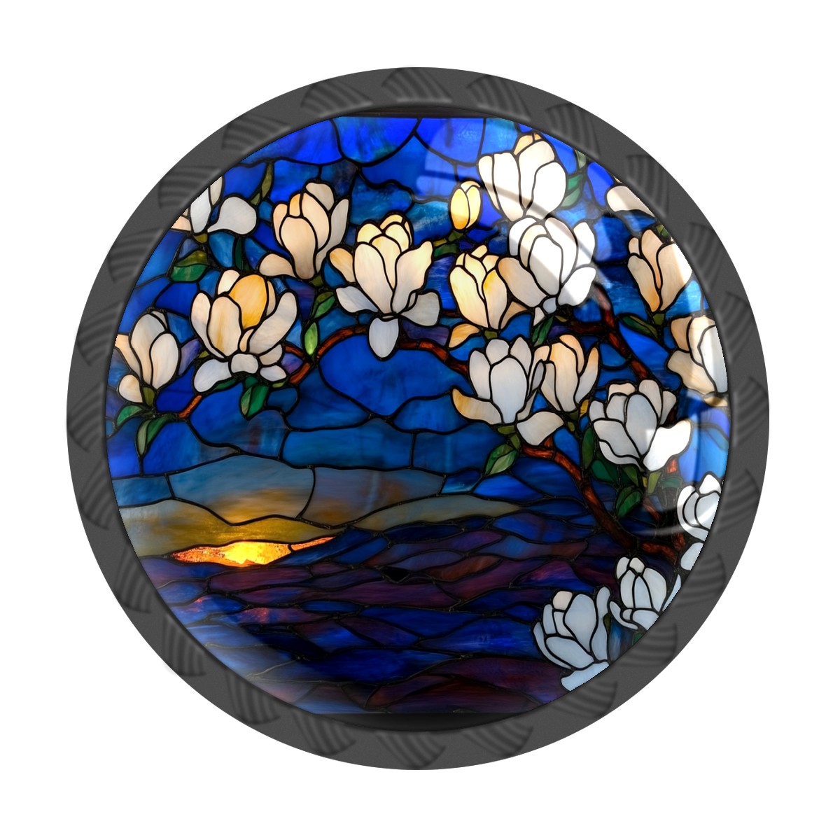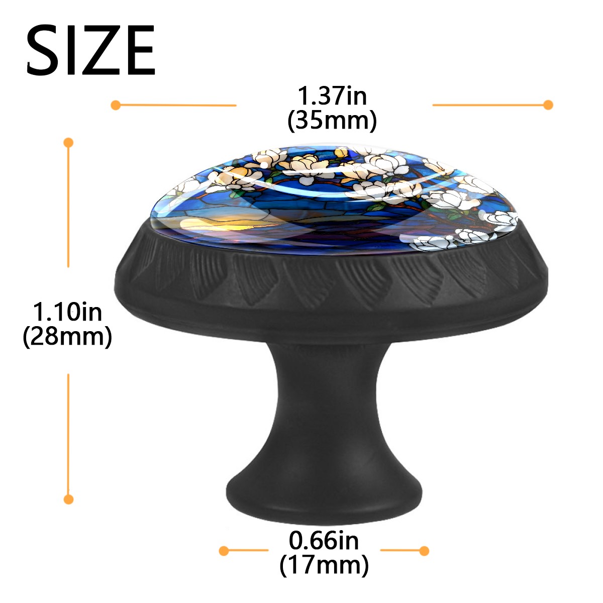 4 Pcs Drawer Knobs Stained Glass Magnoli Blue Round Crystal Glass Knobs Pulls for Dressers Kitchen Cabinets Drawers Wardrobe Cupboard Furniture Hardware Handles