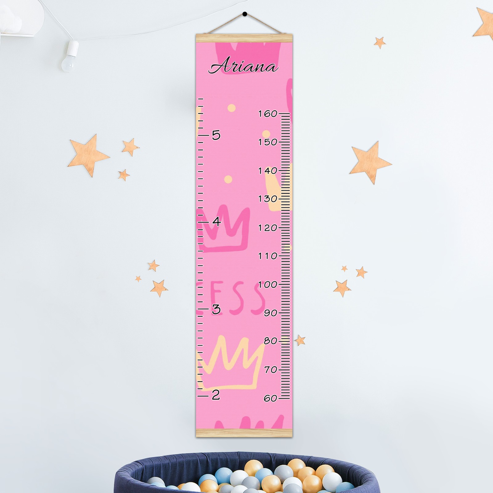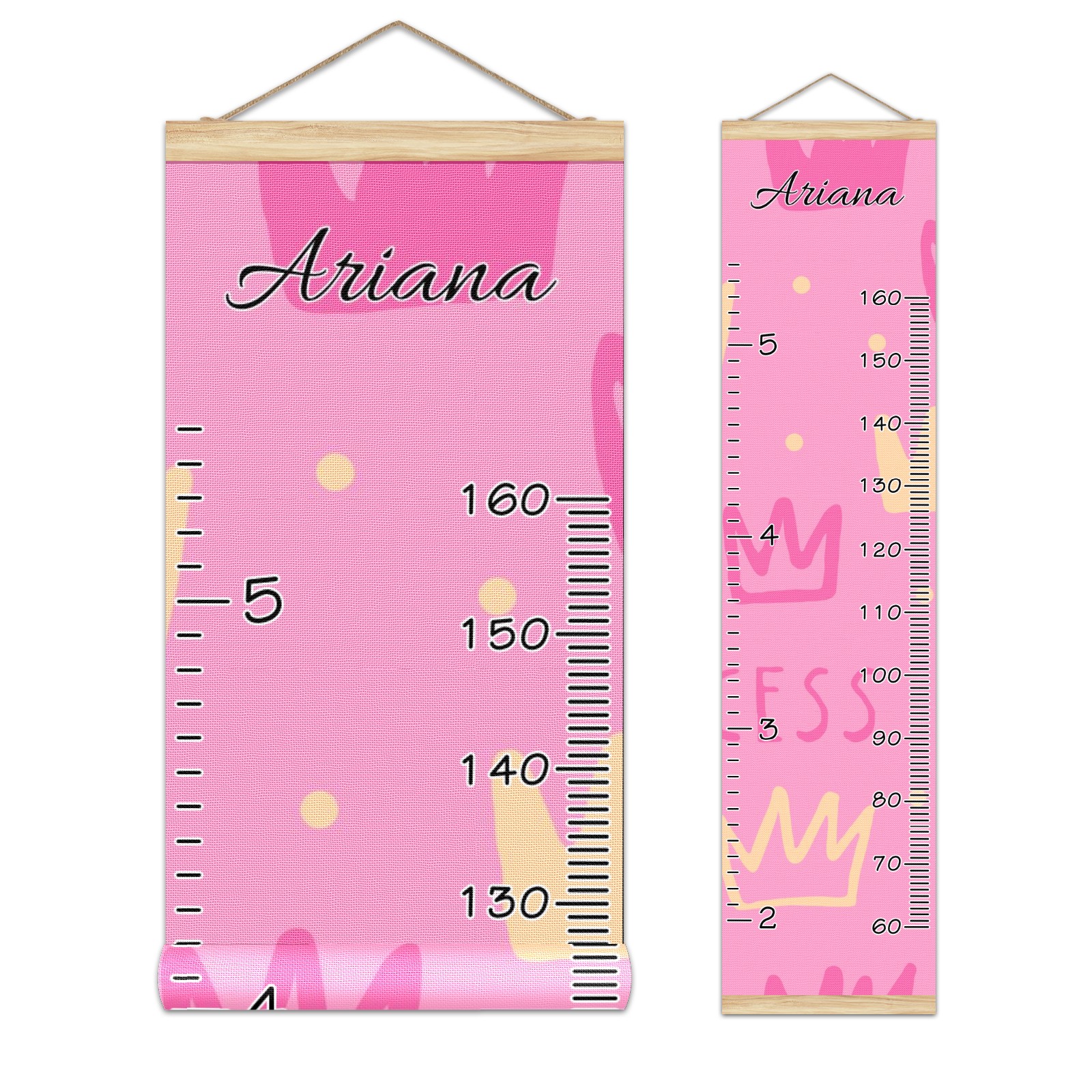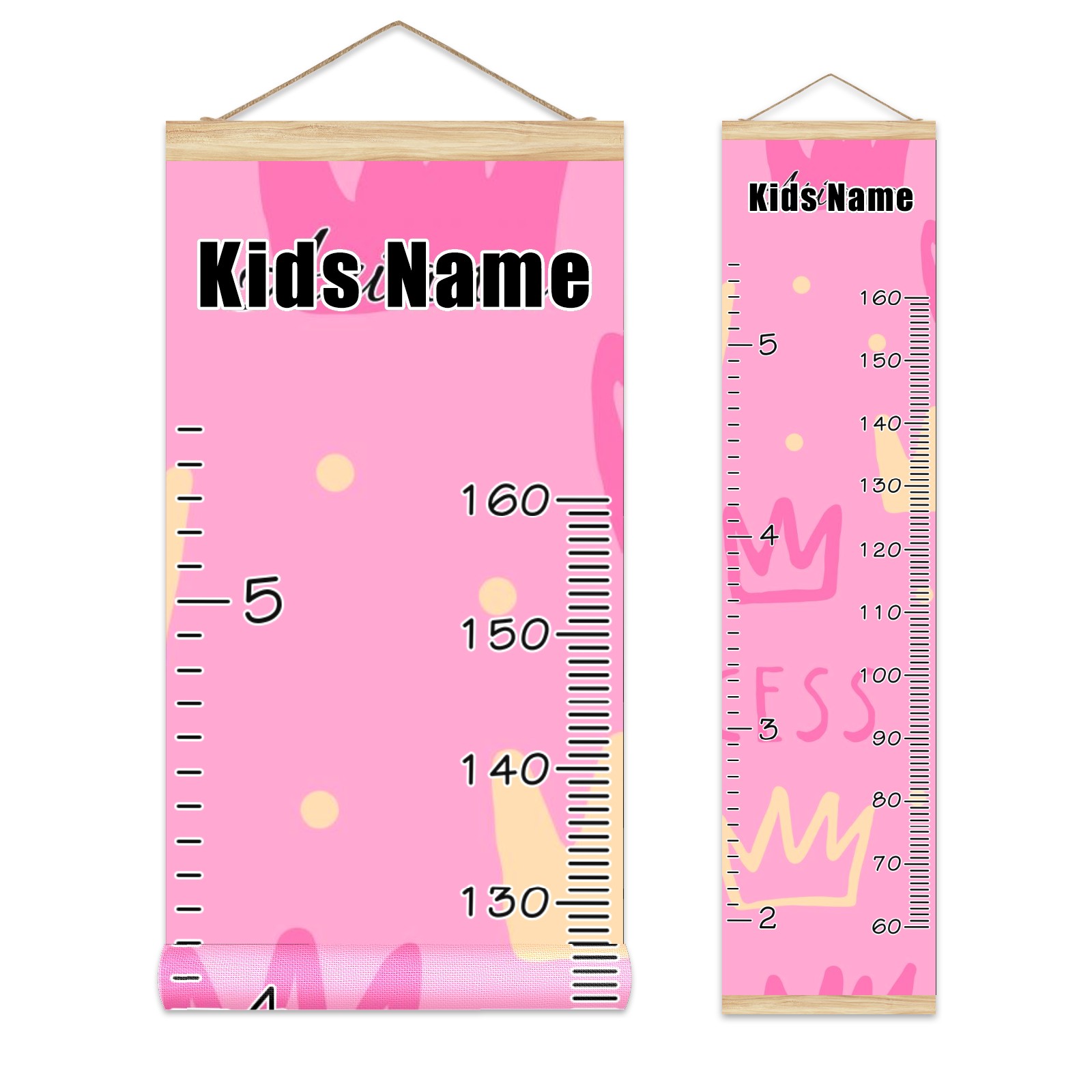 Personalized Kids Name Growth Chart Ruler for Wall Wood Frame Canvas Height Measure Chart 13.4x56 in Hanging Growth Chart Princess Girl4.15 Boys Girls Room Decor