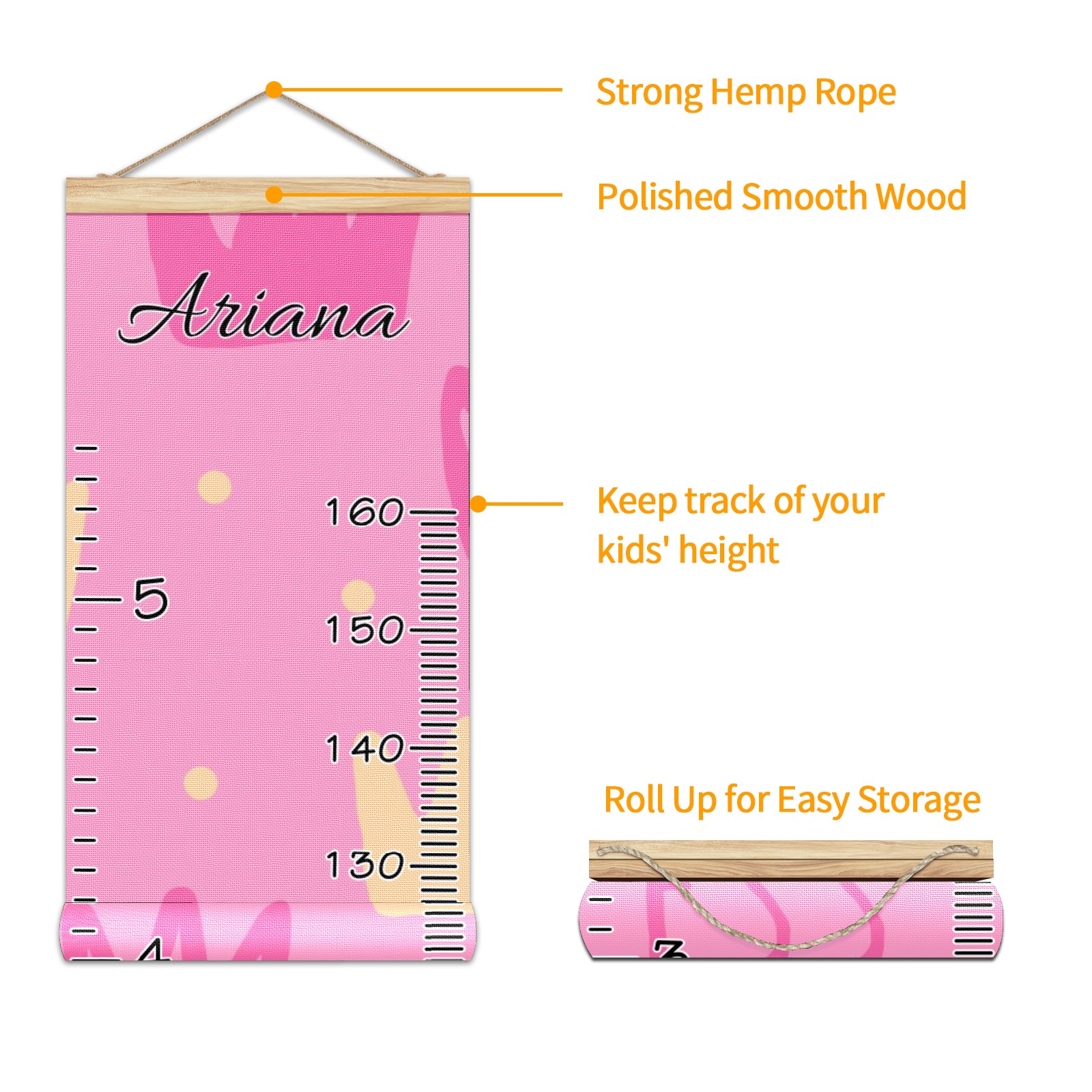 • <p><b>Features:</b></p> <p>Rope for Hanging</p> <p>Material: Linen + Wood</p> <p>Dimensions: 13.4x56 inches</p> <p>Package Included: 1 * Baby Growth Chart</p> <p><b>Baby height growth chart can be used anywhere</b></p> <p>Ideal for kids nursery decoration, kids bedroom, interior walls or windows, playroom, living room, homedecoration.Add name and make the growth chart special!</p> <p><b>Easy to fold and carry</b></p> <p>With rope at the top of the growth chart, it is easy to install and remove.You can fold it and unfold any time any where.</p> <p><b>Perfect Gift Idea for Kids</b></p> <p>Environmental and non-toxic for kids use, it must be a perfect gift for baby, kids, girls, and boys.This is a best choice for your friend who have kids or baby as a popular gift.</p> <p><b>Easy to read</b></p> <p>Measurement accrate with 2 scales, Centimeters and feet. The letters are big enough, very easy to read.</p> <p><b>60cm(23.6inch) Over Ground Design</b></p> <p>Not only can protect from dust and other damage, but also will not interfere in floor cleaning.</p>