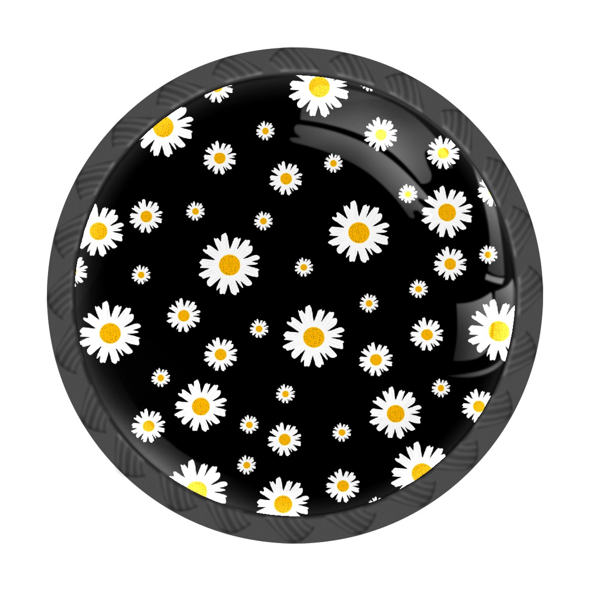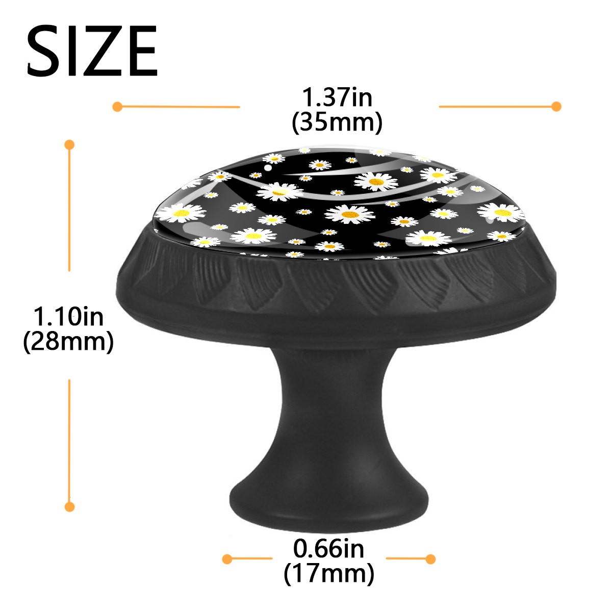 4 Pcs Drawer Knobs White Daisy On Black Round Crystal Glass Knobs Pulls for Dressers Kitchen Cabinets Drawers Wardrobe Cupboard Furniture Hardware Handles