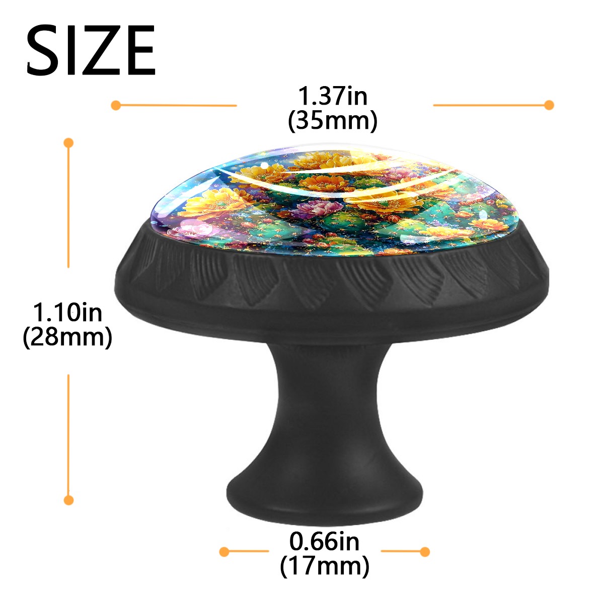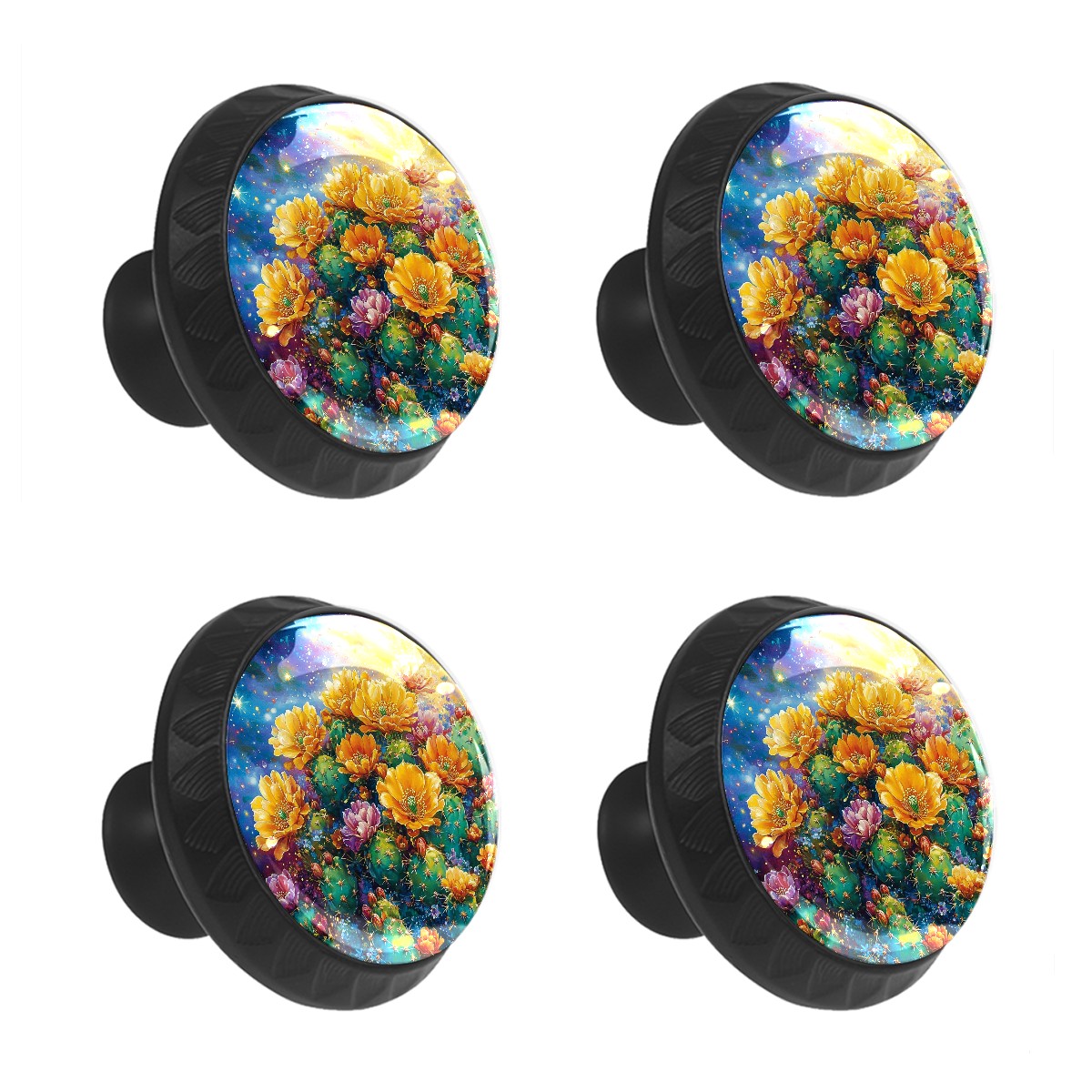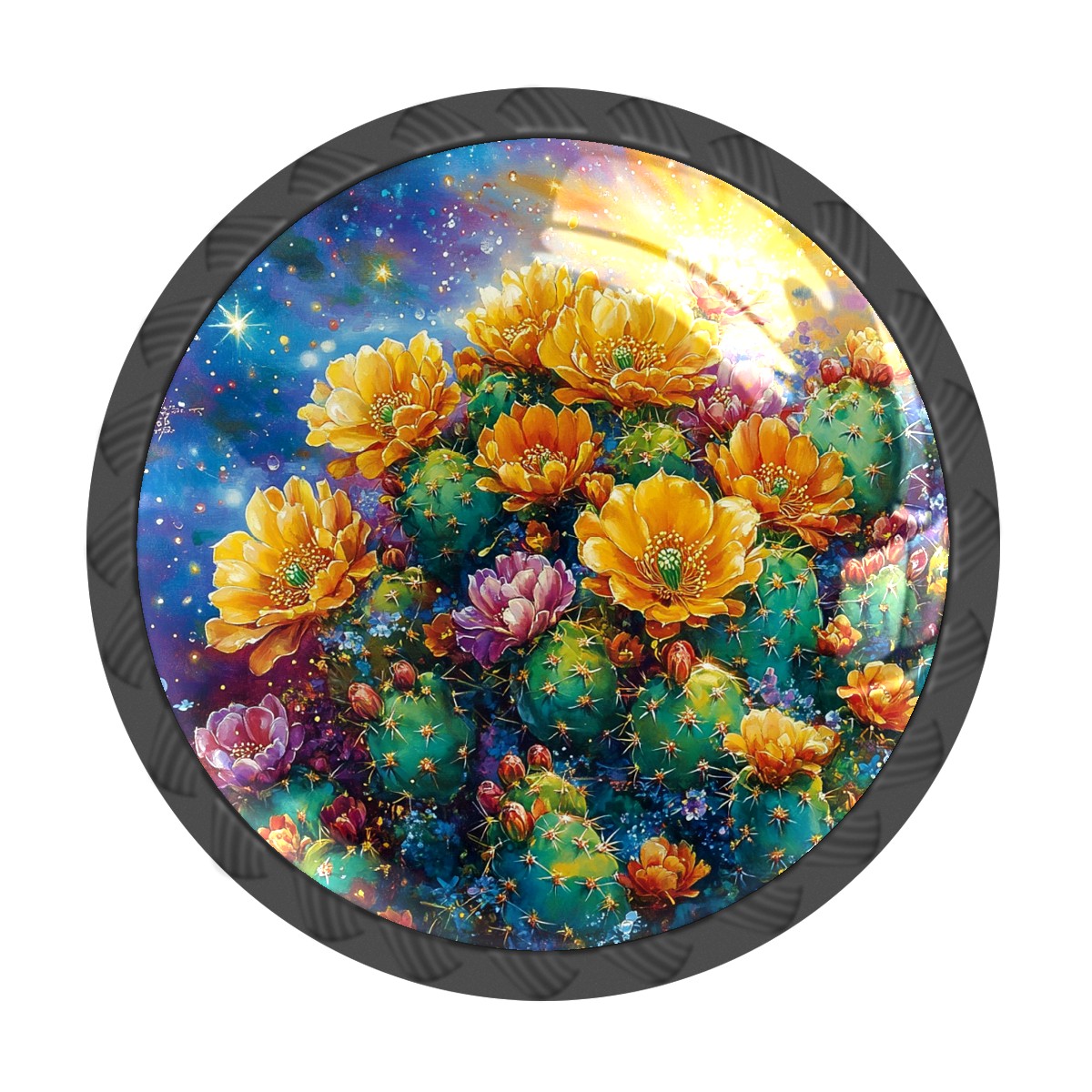 4 Pack Cabinet Knobs Desert Cactus Golden Drawer Pulls Crystal Glass Round Knobs Handles for Dressers Drawer Bathroom Kitchen Cupboards Wardrobes Hardware Furniture Knobs
