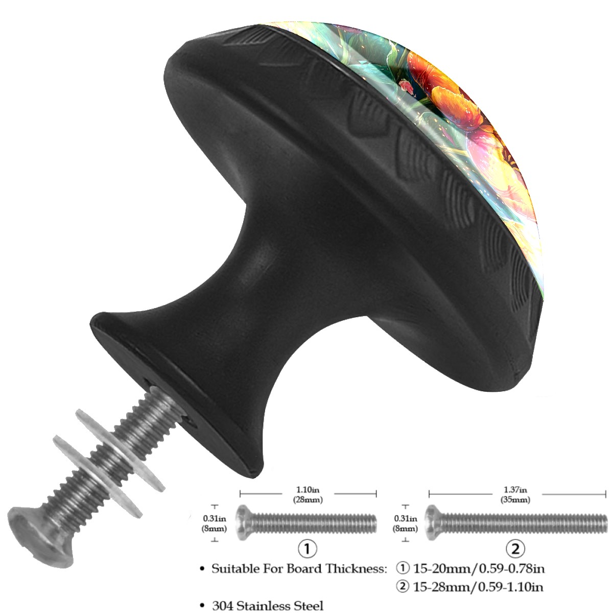 4 Pack Cabinet Knobs Tulips Flower Golden Drawer Pulls Crystal Glass Round Knobs Handles for Dressers Drawer Bathroom Kitchen Cupboards Wardrobes Hardware Furniture Knobs