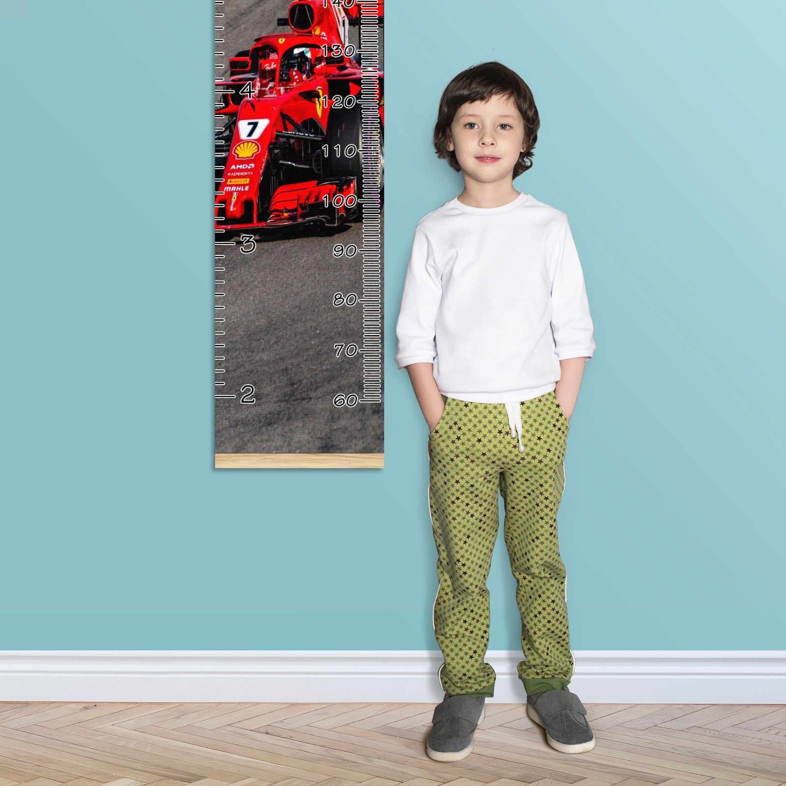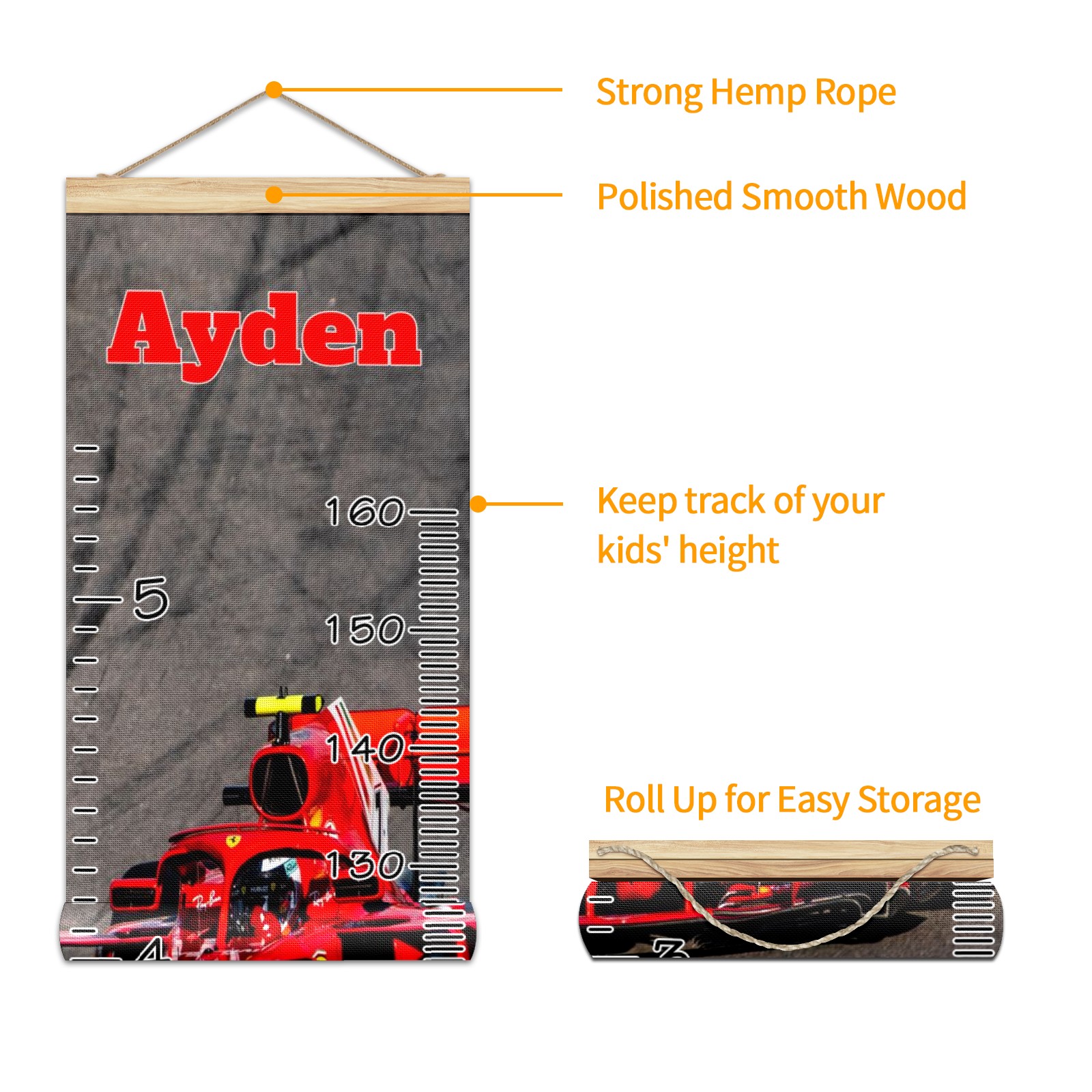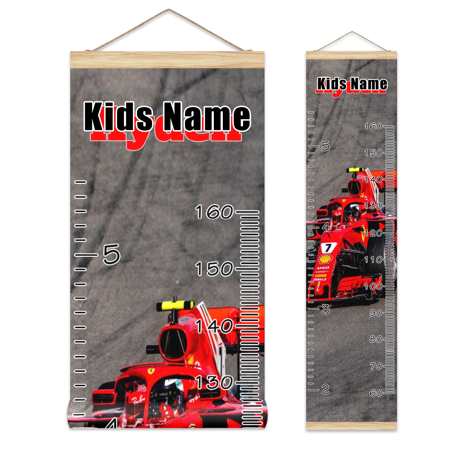 Personalized Kids Name Growth Chart Ruler for Wall Wood Frame Canvas Height Measure Chart 13.4x56 in Hanging Growth Chart RACE CAR4.16 Boys Girls Room Decor