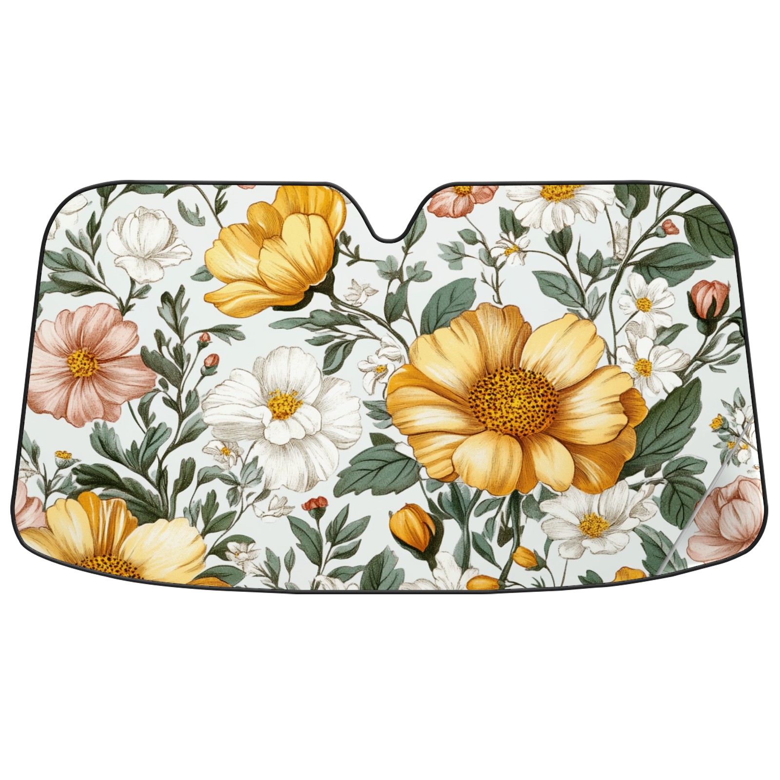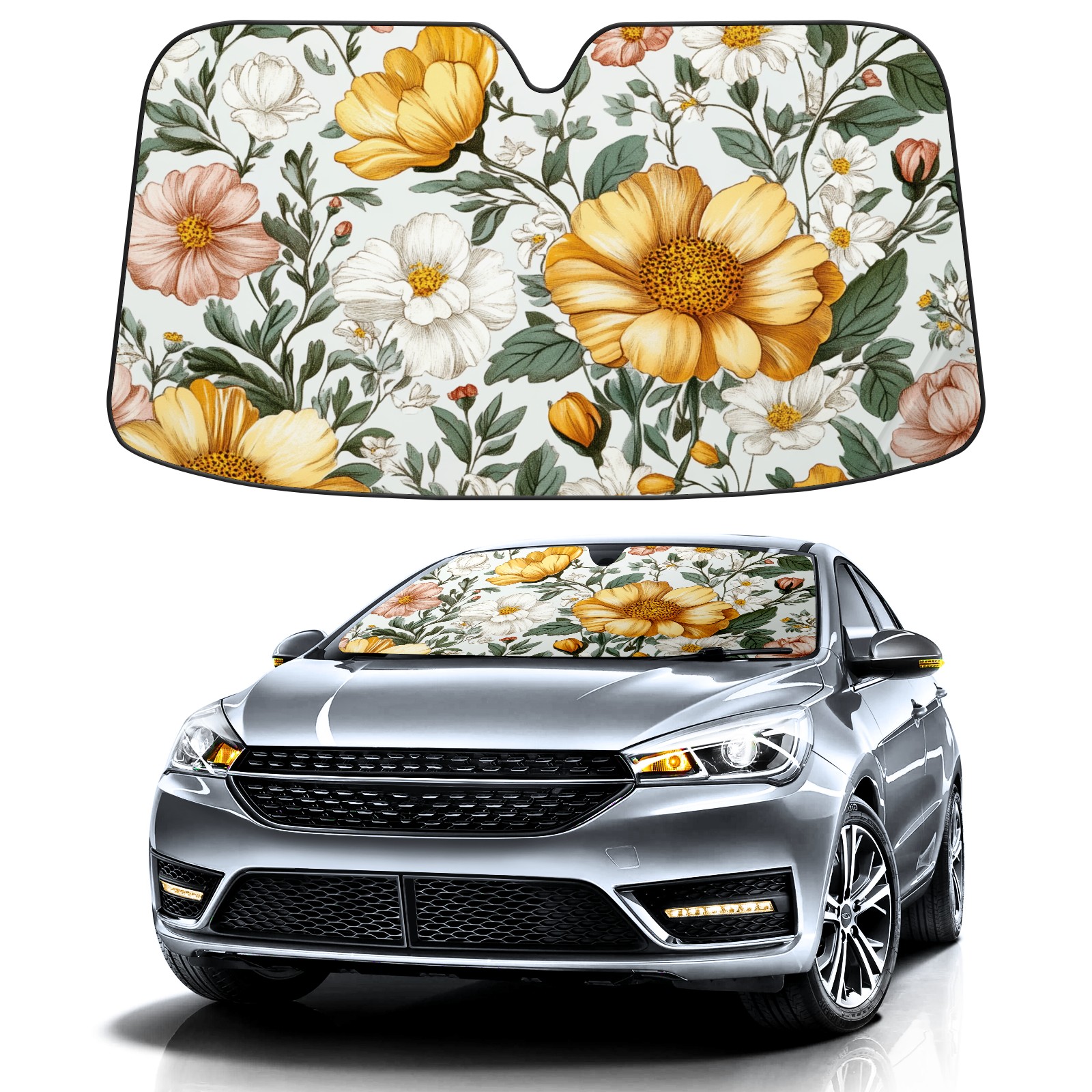 Car Windshield Sun Shade Foldable-Universal Fit Sunshade for Front Windows, UV Protection Heat Shield for Most Vehicles (55x30in)-Sun Visor Extender, Dashboard Cover(Pink Yellow Floral)