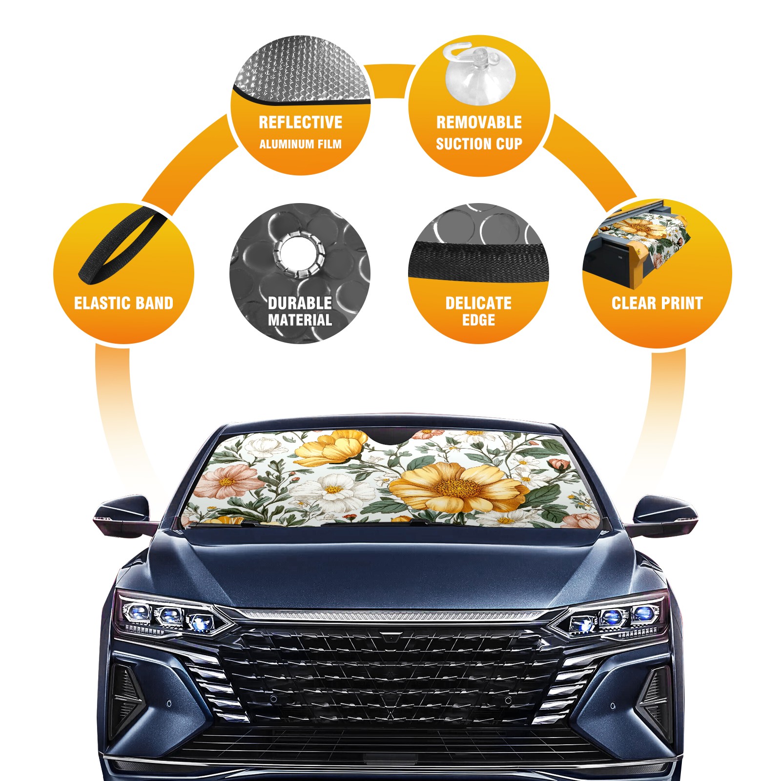 • <p>Stay cool and protect your car’s interior with our&nbsp;<strong>universal-fit windshield sun shade</strong>, designed to block&nbsp;<strong>99% of harmful UV rays</strong>&nbsp;and reduce cabin heat by up to&nbsp;<strong>60°F</strong>. Perfect for sedans, SUVs, and trucks, this&nbsp;<strong>foldable sunshade</strong>&nbsp;features a&nbsp;<strong>heavy-duty reflective surface</strong>&nbsp;that ensures maximum coverage for your&nbsp;<strong>car windshield</strong>.<br></p>