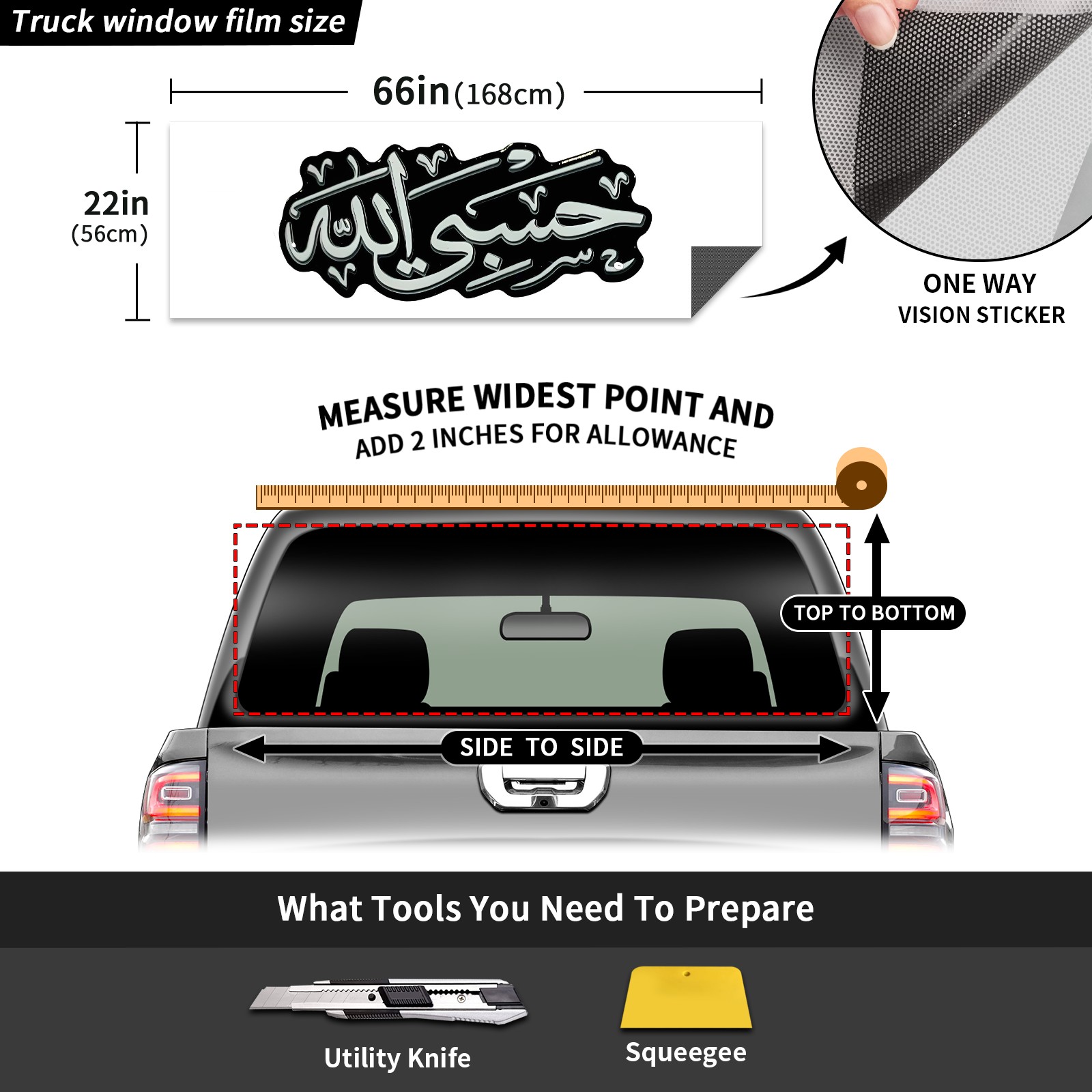<p><strong>Truck Rear Window Graphics Decals Pickup Trucks Back Window Film Stickers 66" x 22" Perforated Vinyl Wrap Stickers Decorations for Car Rear Window</strong></p><p><strong><br /></strong></p><p><strong>Features :</strong></p><p>- Size of the rear window decals for trucks is 66x22 Inches (168x56cm).</p><p>- High quality perforated vinyl window film, one way vision sticker.</p><p>- Perforated is see through from the inside but not from outside.</p><p>- Clear printing, waterproof and durable.</p><p>- The car back window graphics stickers fits most truck and makes your vehicle more beautiful.&nbsp;</p><p><br /></p><p><strong>【Installation Instructions】</strong></p><p><strong>1. CLEAN SURFACE -</strong> Clean the rear window thoroughly and make sure the surface clean.</p><p><strong>2. STICK THE DECALS -</strong> Tear off the paper on the back and stick the decal on the window.</p><p><strong>3. SCRAPE OFF AIR BUBBLES -</strong> Use a squeegee or other card to scrape off the excess air bubbles.</p><p><strong>4. TRIM THE EXCESS -</strong> Use a knife to cut off the excess stickers of the window, finally complete.</p><p><br /></p><p>1. Please measure the size before purchasing, back window graphics decal for truck can be cut to your desired size.</p><p>2.The graphics stickers for truck back window is a great gift for yourself also can as a birthday / halloween / christmas gift for your friends and family.</p>