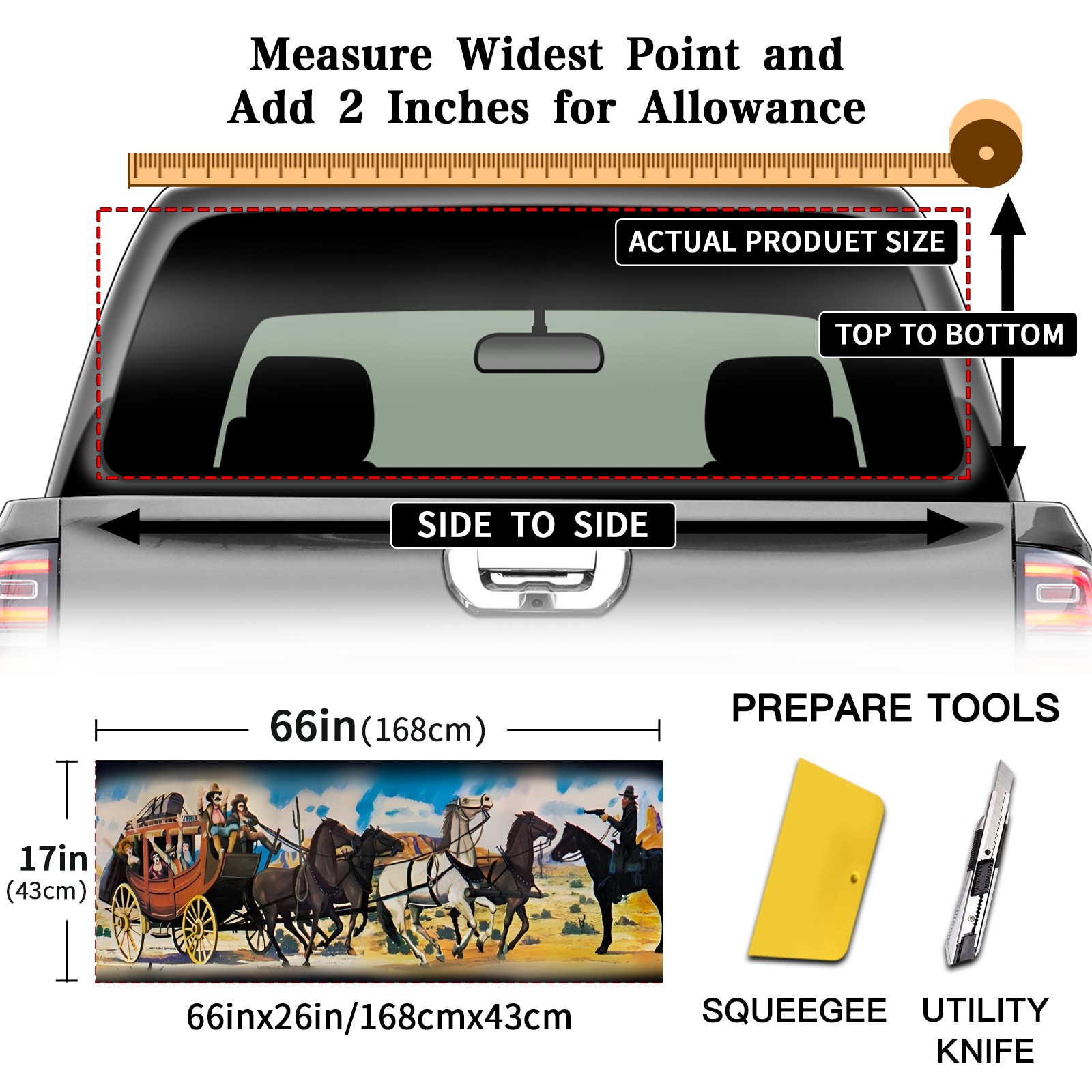 <p><strong>Truck Rear Window Graphics Decals Pickup Trucks Back Window Film Stickers 66" x 22" Perforated Vinyl Wrap Stickers Decorations for Car Rear Window</strong></p><p><strong><br /></strong></p><p><strong>Features :</strong></p><p>- Size of the rear window decals for trucks is 66x22 Inches (168x56cm).</p><p>- High quality perforated vinyl window film, one way vision sticker.</p><p>- Perforated is see through from the inside but not from outside.</p><p>- Clear printing, waterproof and durable.</p><p>- The car back window graphics stickers fits most truck and makes your vehicle more beautiful.&nbsp;</p><p><br /></p><p><strong>【Installation Instructions】</strong></p><p><strong>1. CLEAN SURFACE -</strong> Clean the rear window thoroughly and make sure the surface clean.</p><p><strong>2. STICK THE DECALS -</strong> Tear off the paper on the back and stick the decal on the window.</p><p><strong>3. SCRAPE OFF AIR BUBBLES -</strong> Use a squeegee or other card to scrape off the excess air bubbles.</p><p><strong>4. TRIM THE EXCESS -</strong> Use a knife to cut off the excess stickers of the window, finally complete.</p><p><br /></p><p>1. Please measure the size before purchasing, back window graphics decal for truck can be cut to your desired size.</p><p>2.The graphics stickers for truck back window is a great gift for yourself also can as a birthday / halloween / christmas gift for your friends and family.</p>