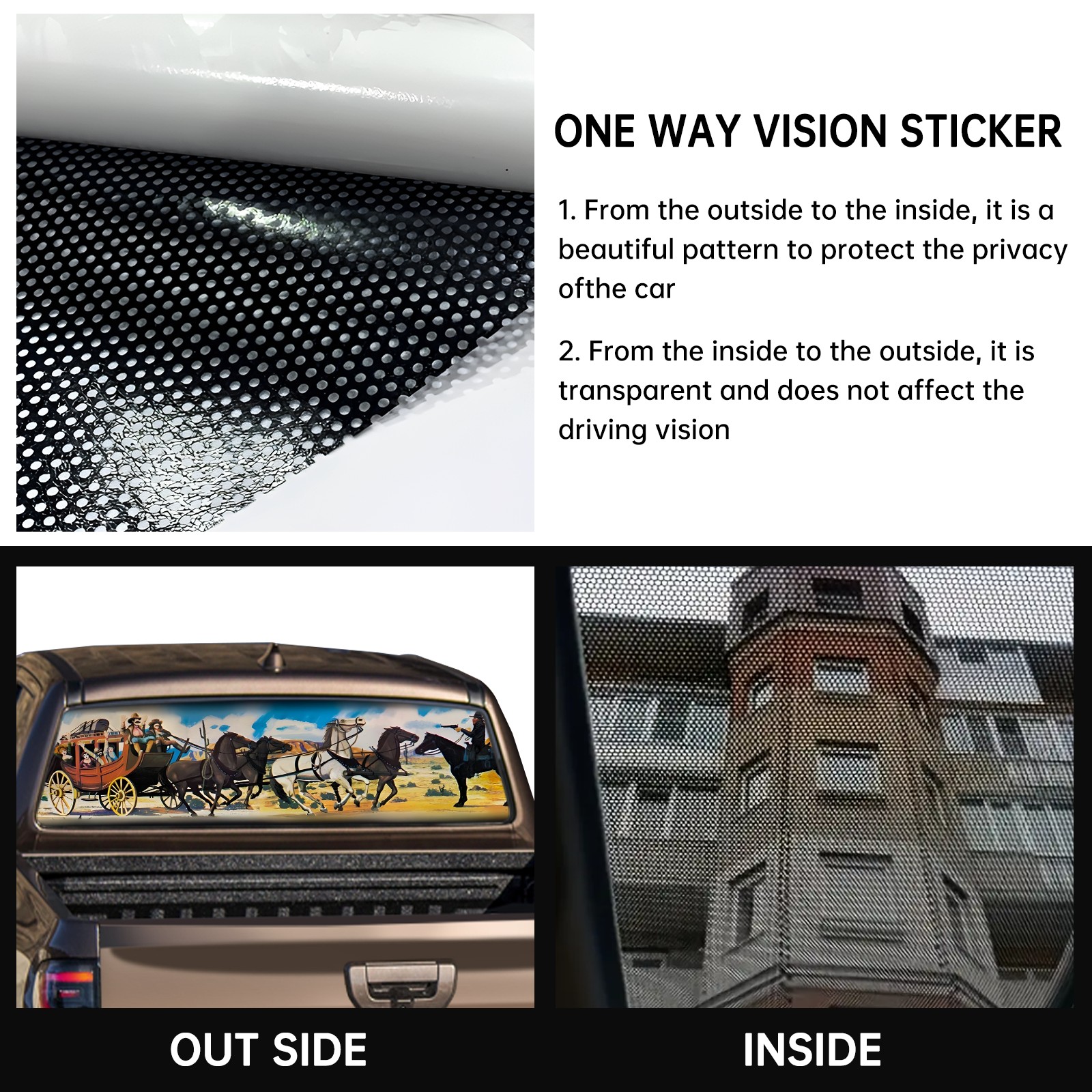 • <p><strong>Truck Rear Window Graphics Decals Pickup Trucks Back Window Film Stickers 66" x 22" Perforated Vinyl Wrap Stickers Decorations for Car Rear Window</strong></p><p><strong><br /></strong></p><p><strong>Features :</strong></p><p>- Size of the rear window decals for trucks is 66x22 Inches (168x56cm).</p><p>- High quality perforated vinyl window film, one way vision sticker.</p><p>- Perforated is see through from the inside but not from outside.</p><p>- Clear printing, waterproof and durable.</p><p>- The car back window graphics stickers fits most truck and makes your vehicle more beautiful.&nbsp;</p><p><br /></p><p><strong>【Installation Instructions】</strong></p><p><strong>1. CLEAN SURFACE -</strong> Clean the rear window thoroughly and make sure the surface clean.</p><p><strong>2. STICK THE DECALS -</strong> Tear off the paper on the back and stick the decal on the window.</p><p><strong>3. SCRAPE OFF AIR BUBBLES -</strong> Use a squeegee or other card to scrape off the excess air bubbles.</p><p><strong>4. TRIM THE EXCESS -</strong> Use a knife to cut off the excess stickers of the window, finally complete.</p><p><br /></p><p>1. Please measure the size before purchasing, back window graphics decal for truck can be cut to your desired size.</p><p>2.The graphics stickers for truck back window is a great gift for yourself also can as a birthday / halloween / christmas gift for your friends and family.</p>