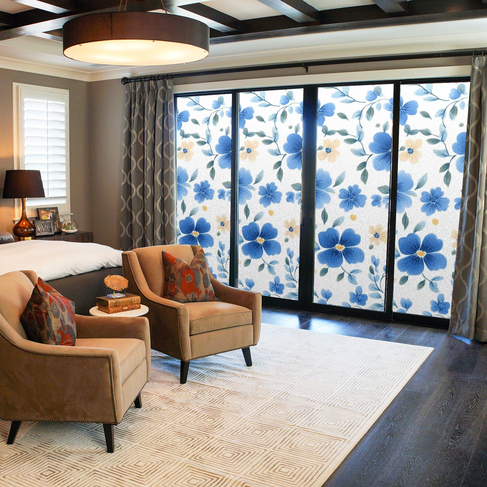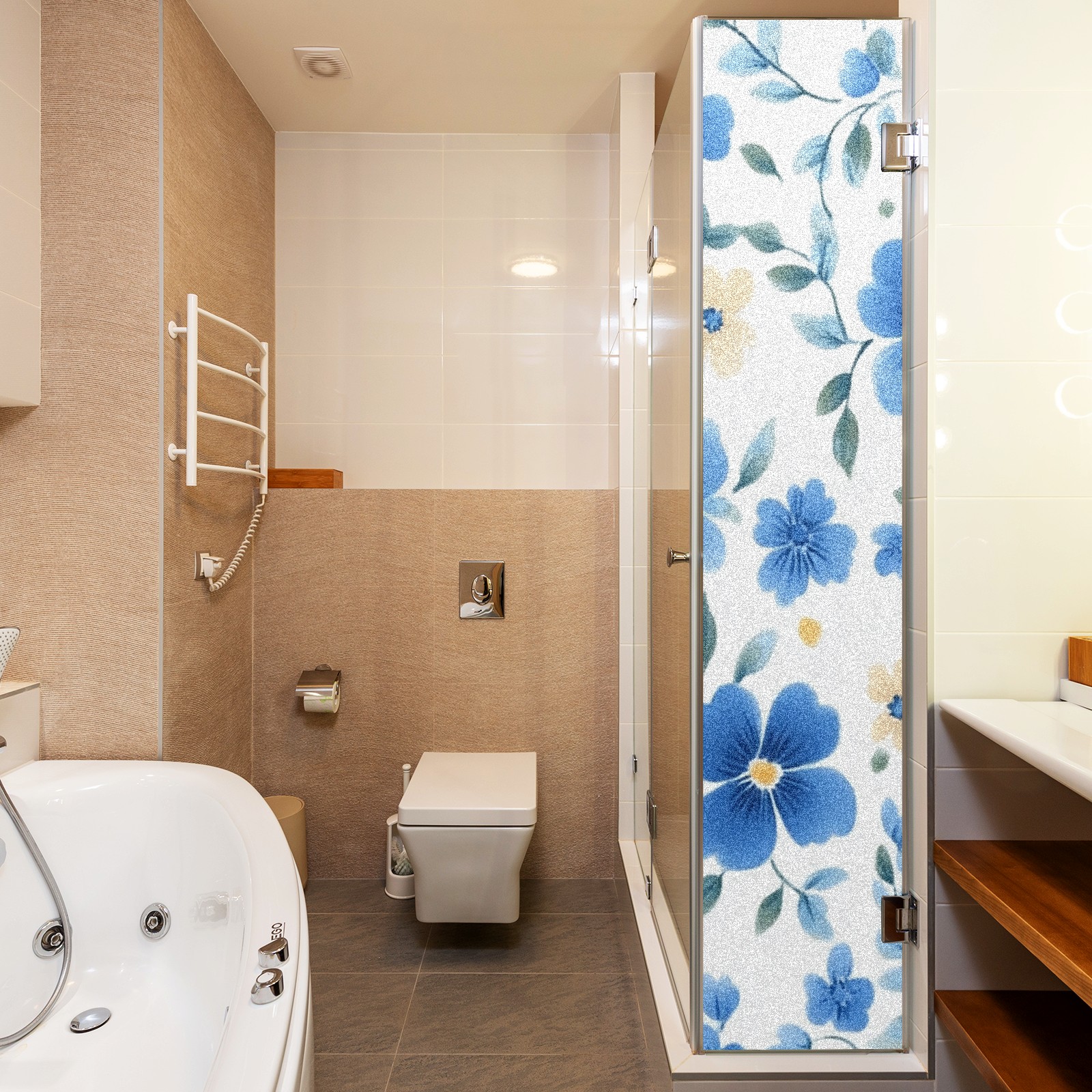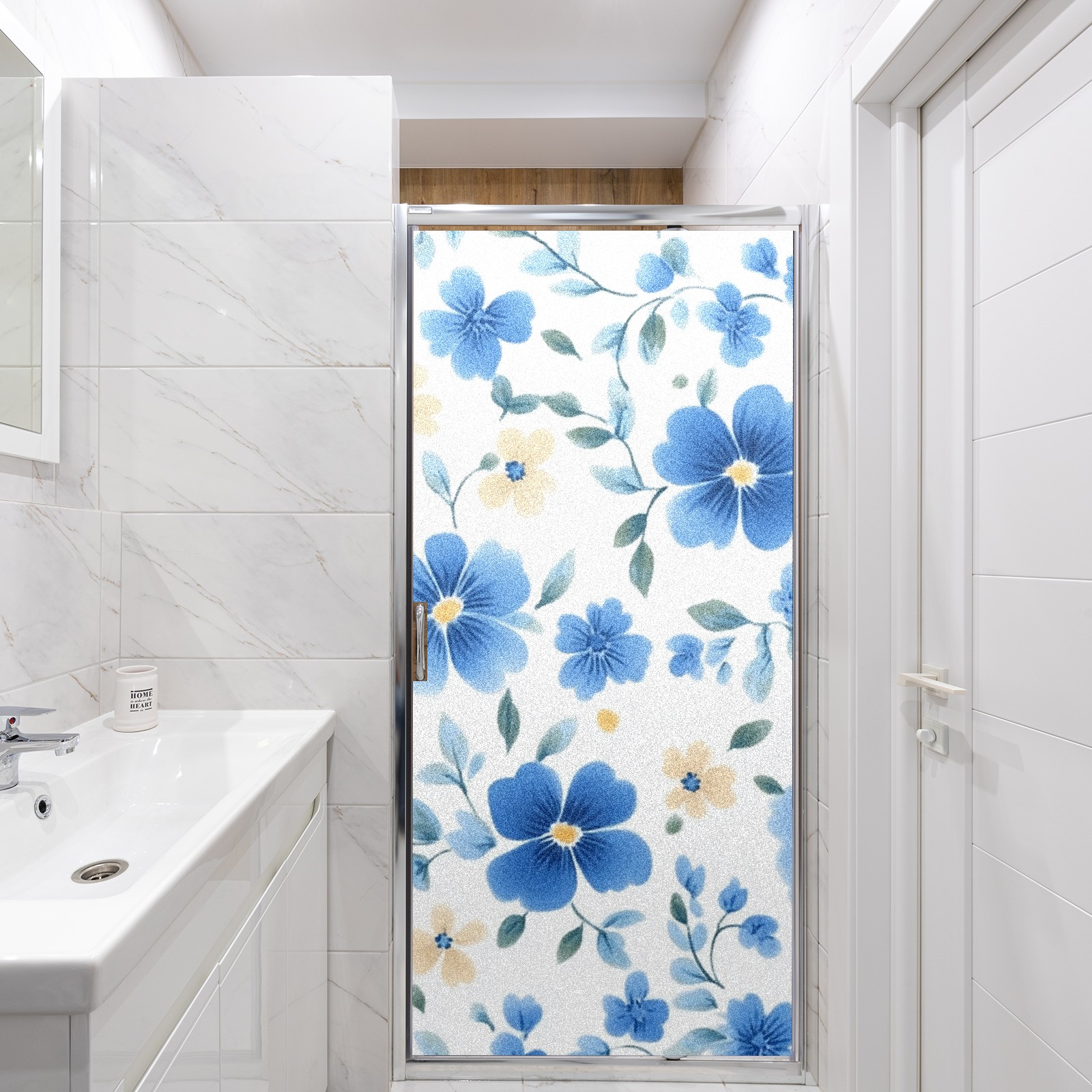 Stained Glass Window Film - Decorative Privacy Film for Windows, Peel and Stick Window Film for Bathroom/Office/Shower, Reusable and Easy to Cut 17.7"x23.6" (Blue Small Flowers)
