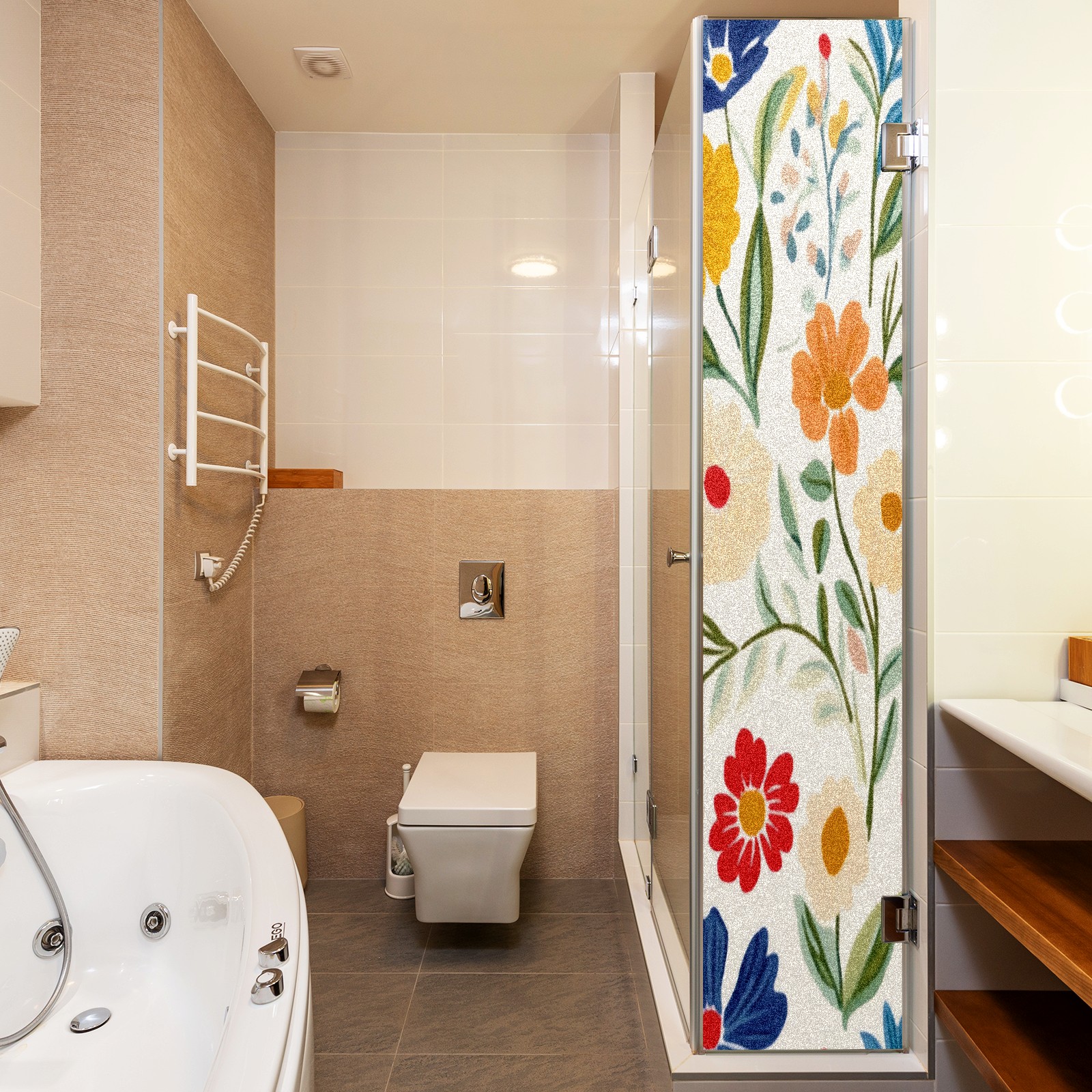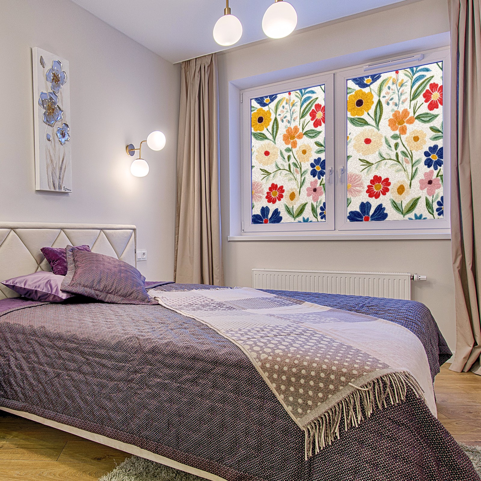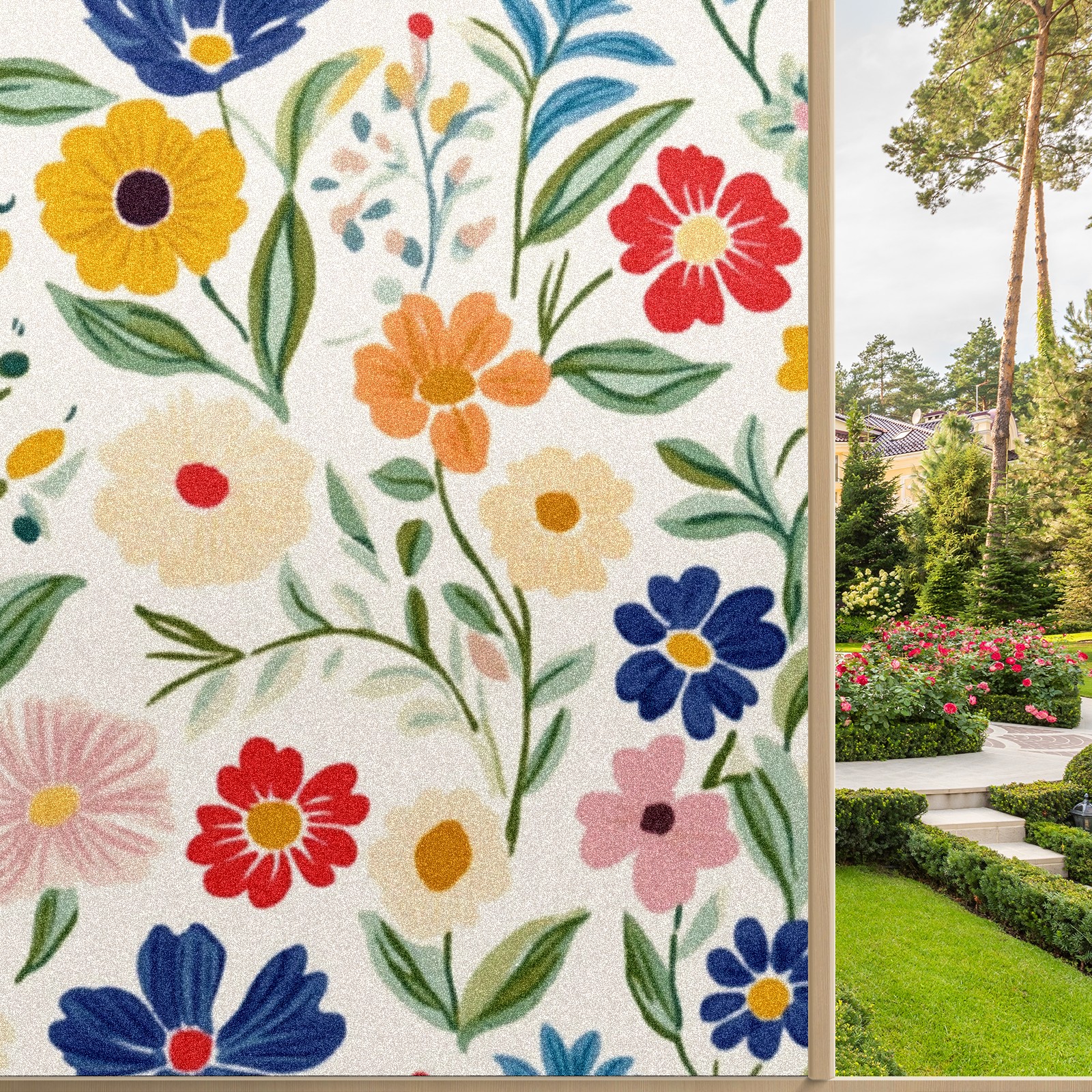 Stained Glass Window Film - Decorative Privacy Film for Windows, Peel and Stick Window Film for Bathroom/Office/Shower, Reusable and Easy to Cut 17.7"x23.6" (Simple Colorful Spring Flowers)