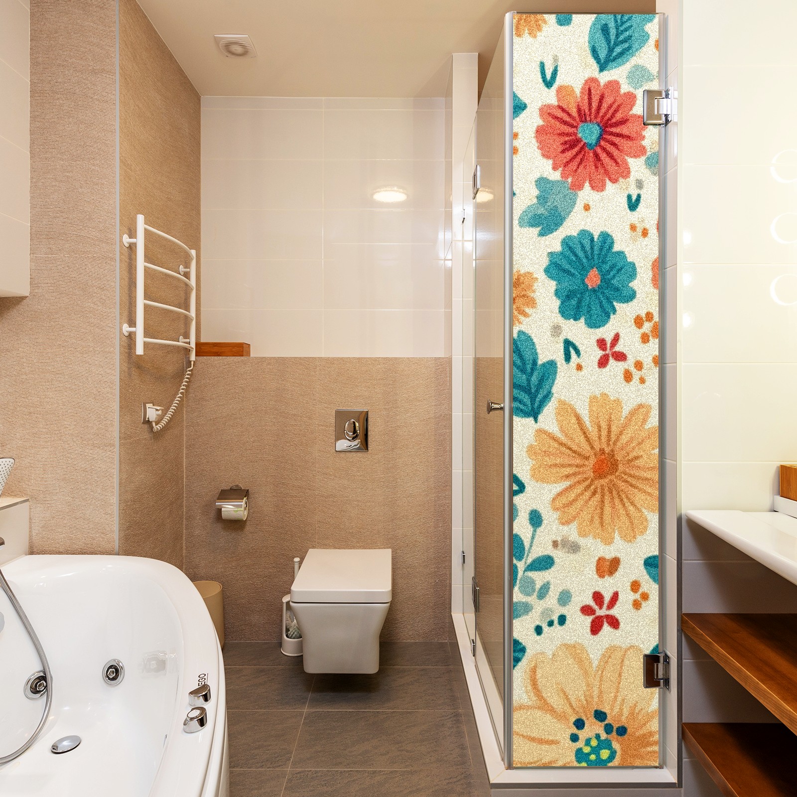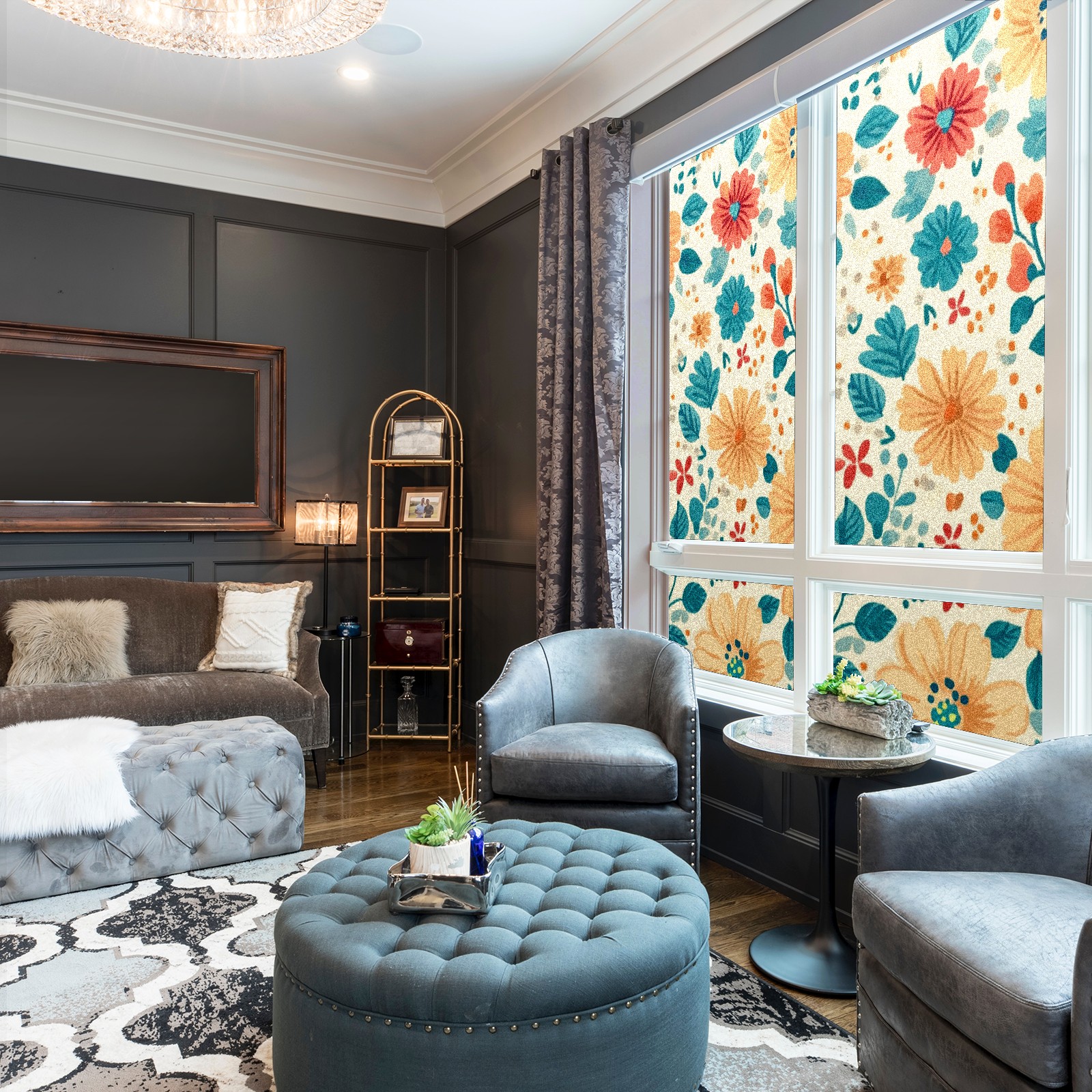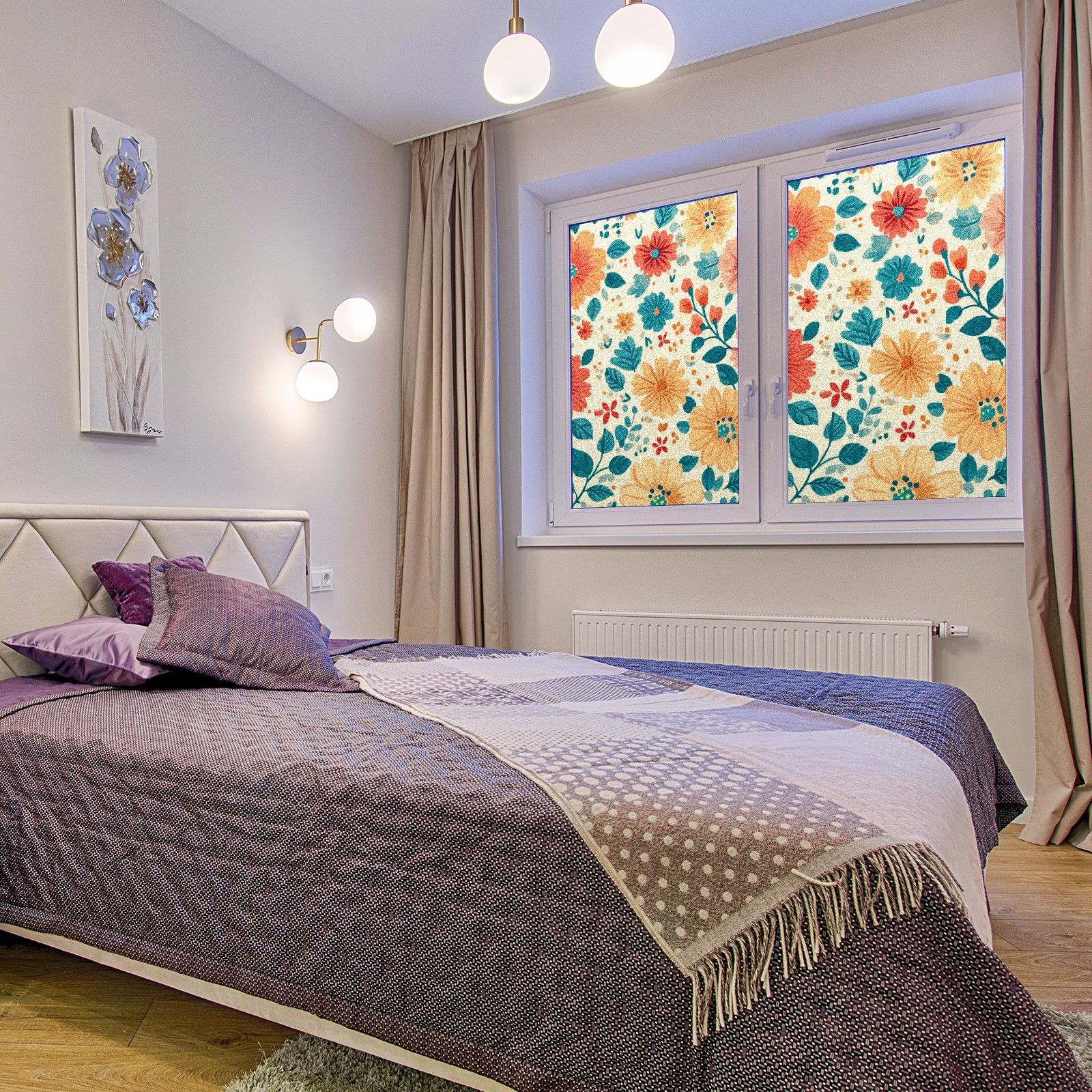 Stained Glass Window Film - Decorative Privacy Film for Windows, Peel and Stick Window Film for Bathroom/Office/Shower, Reusable and Easy to Cut 17.7"x23.6" (Colorful Flowers And Leaves)