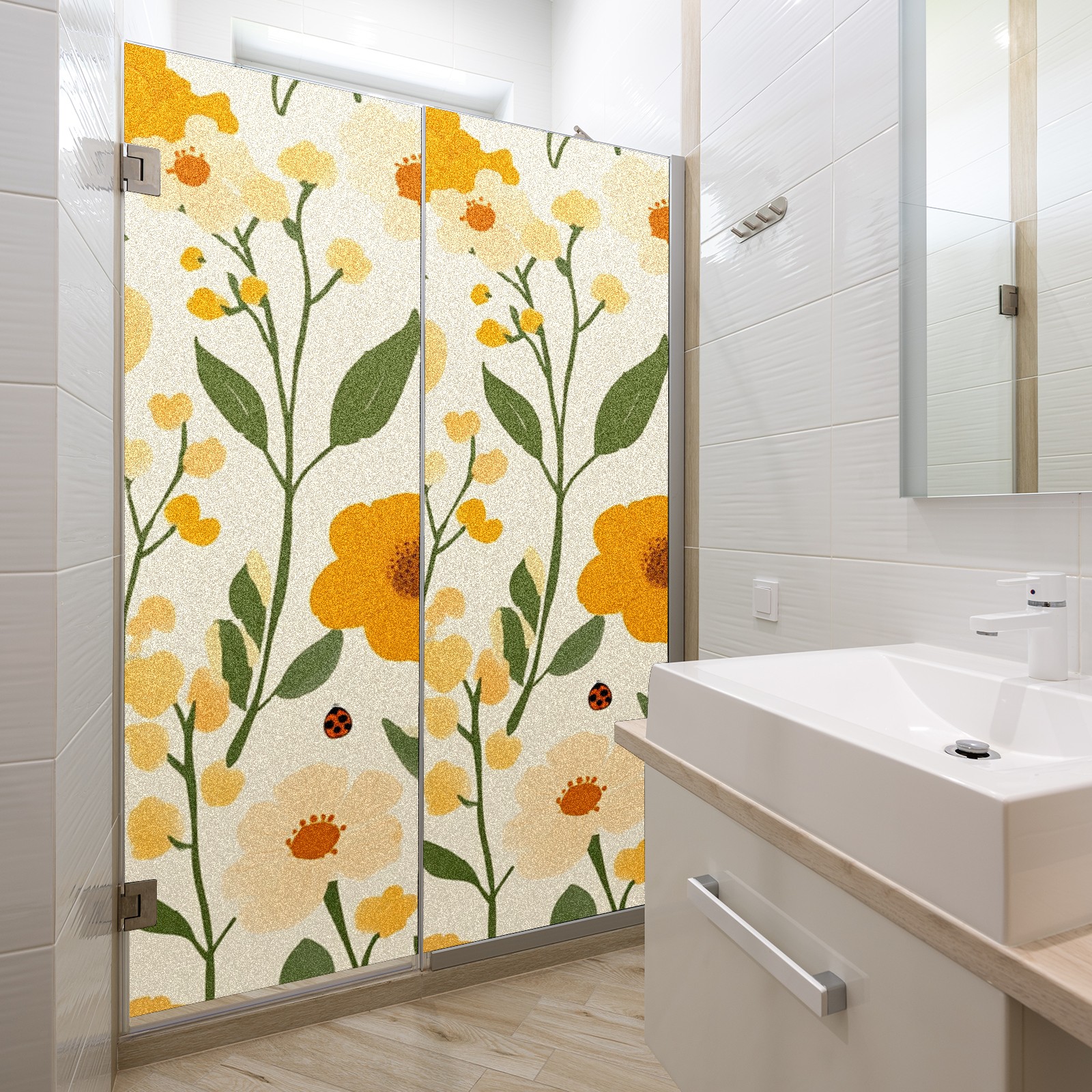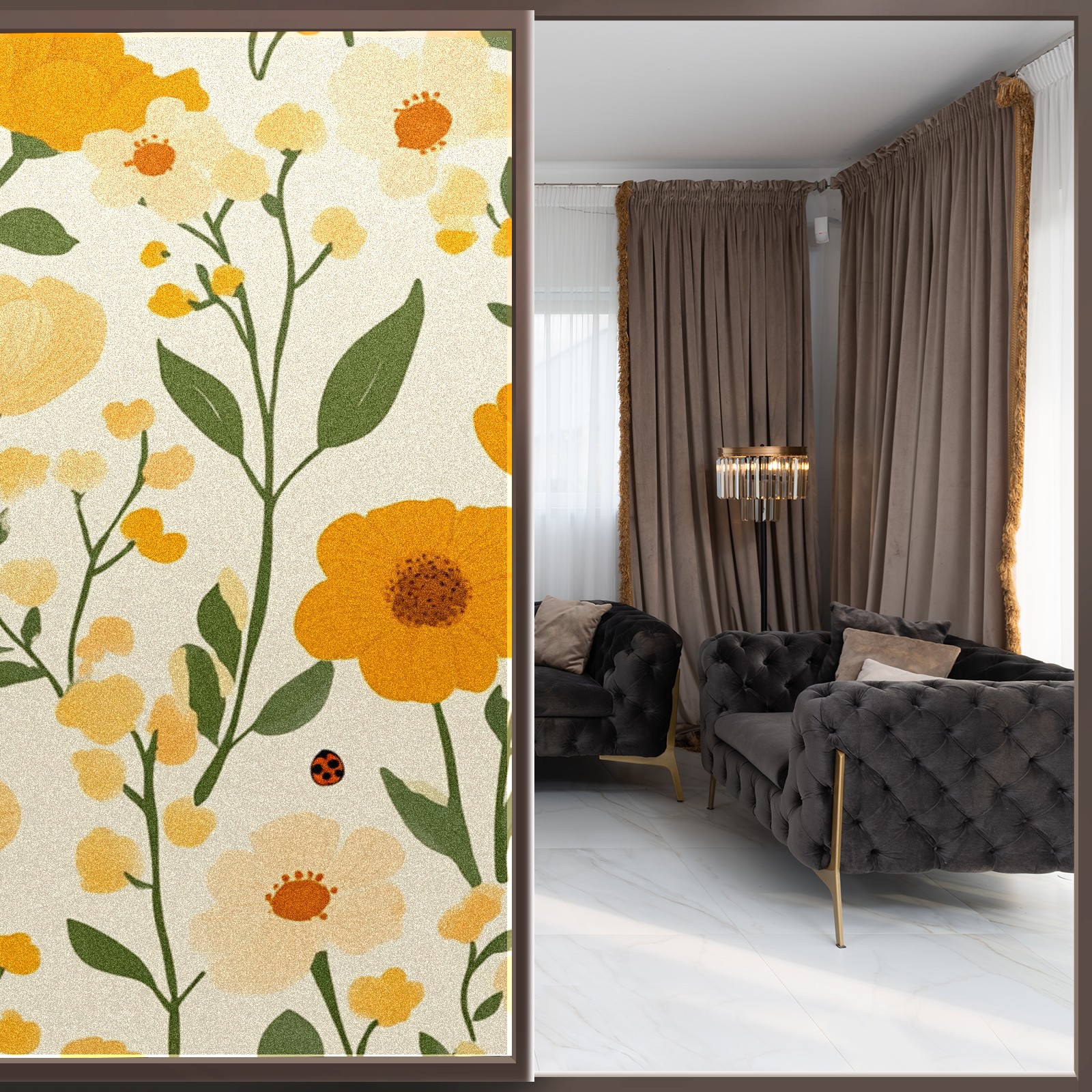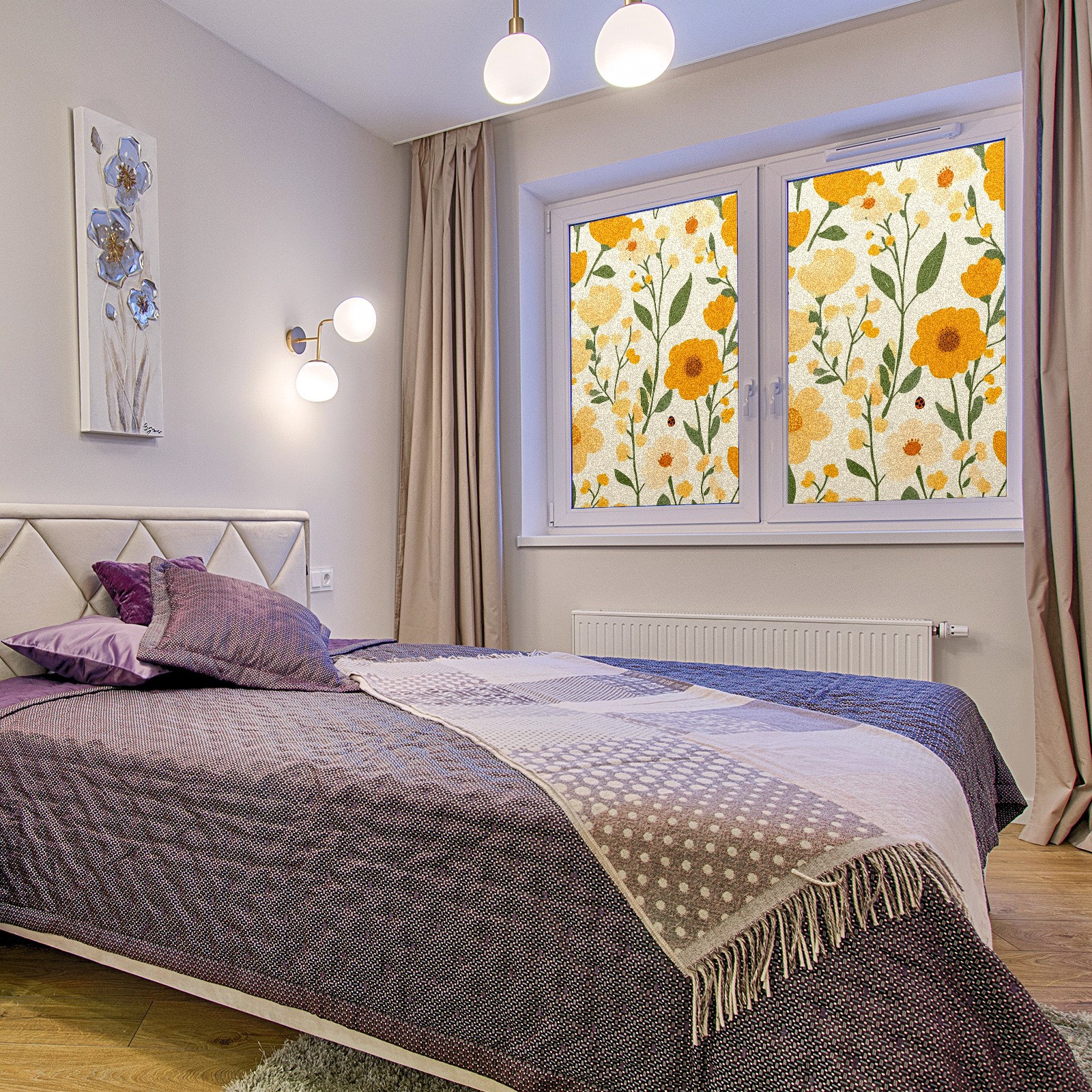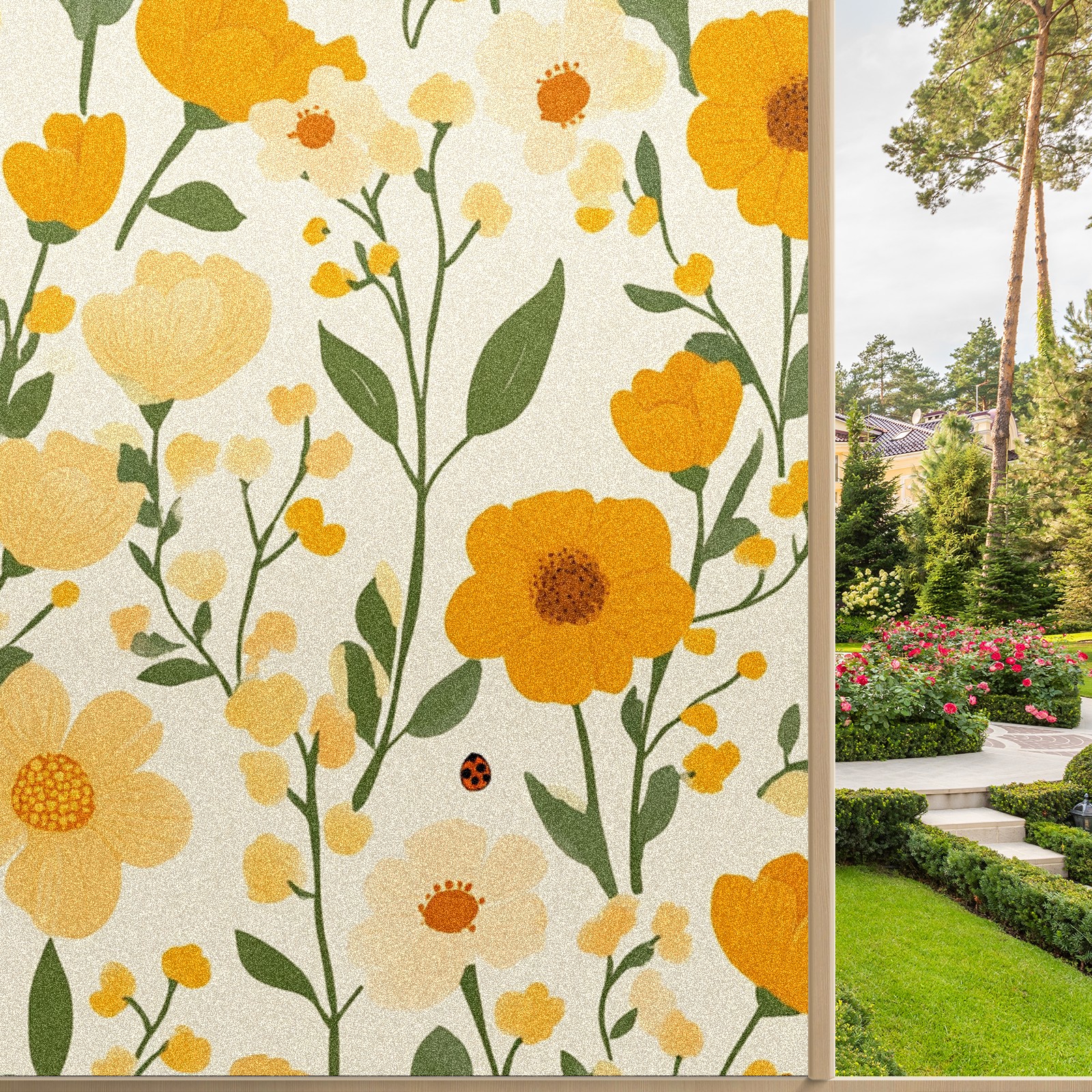 Stained Glass Window Film - Decorative Privacy Film for Windows, Peel and Stick Window Film for Bathroom/Office/Shower, Reusable and Easy to Cut 17.7"x23.6" (Yellow Orange Flower)