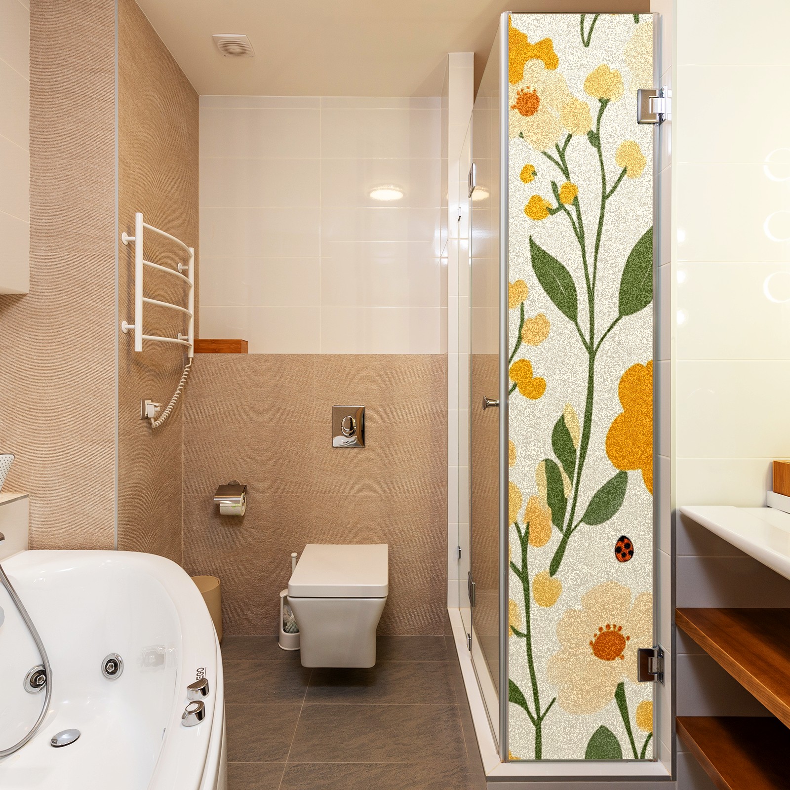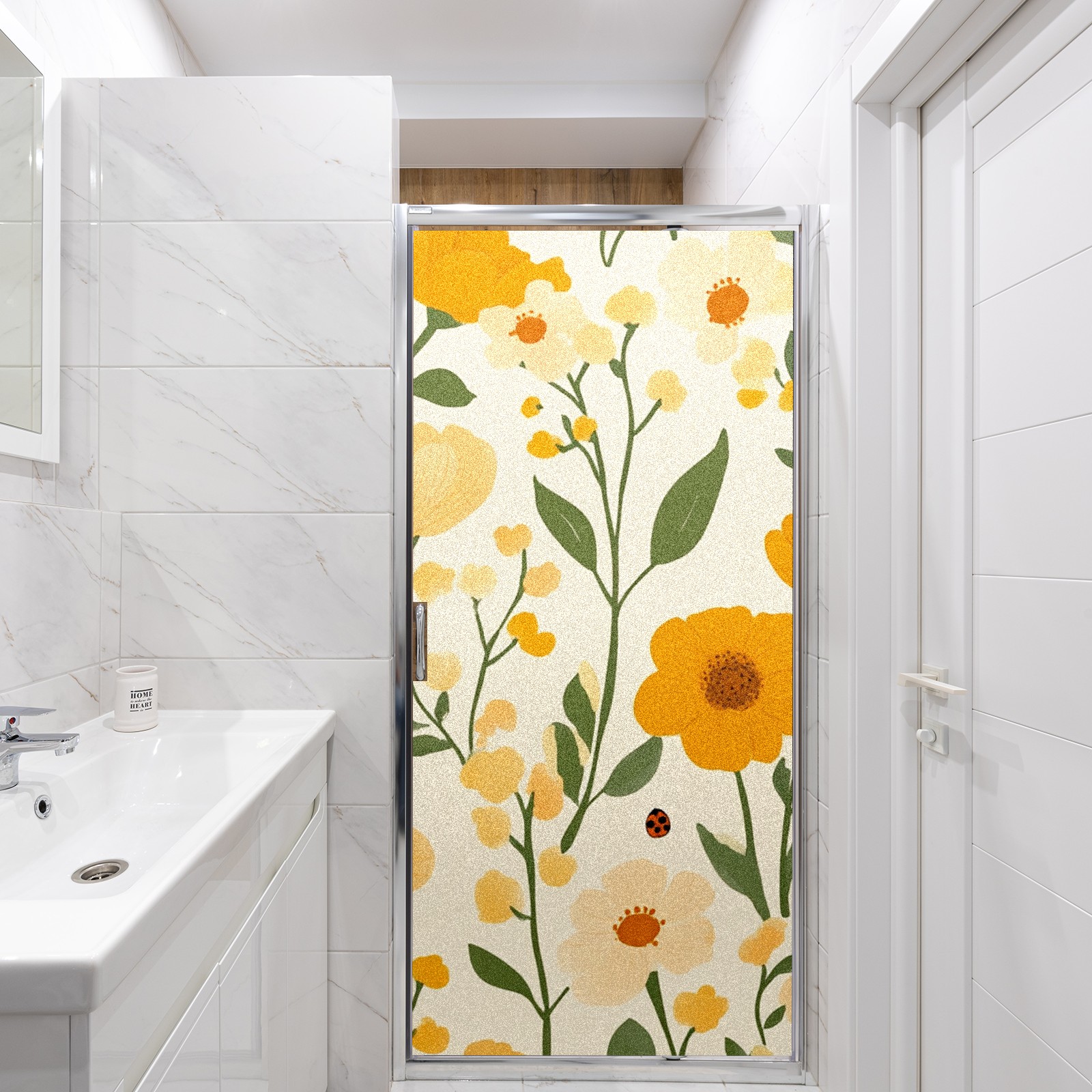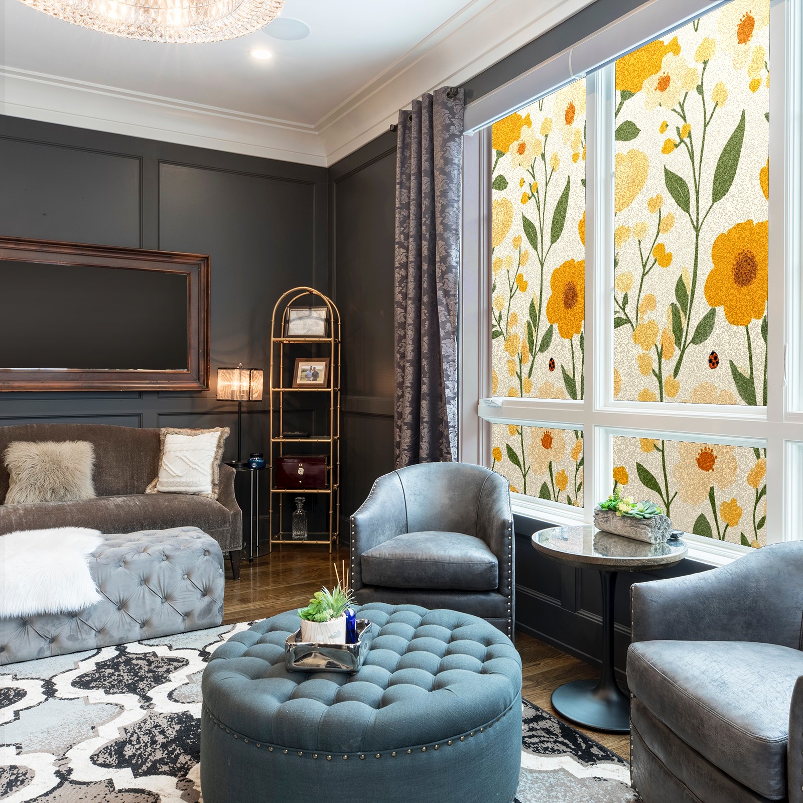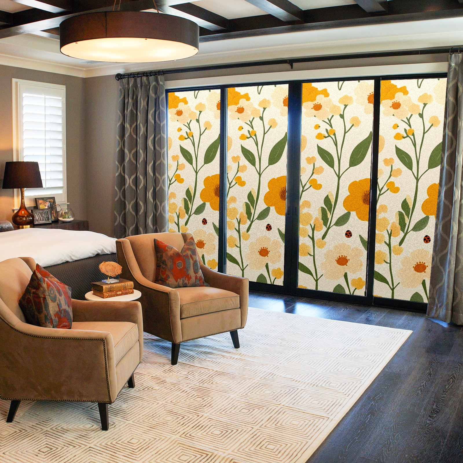 Stained Glass Window Film - Decorative Privacy Film for Windows, Peel and Stick Window Film for Bathroom/Office/Shower, Reusable and Easy to Cut 17.7"x23.6" (Yellow Orange Flower)