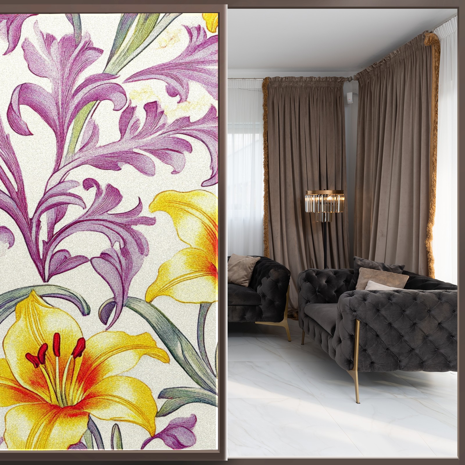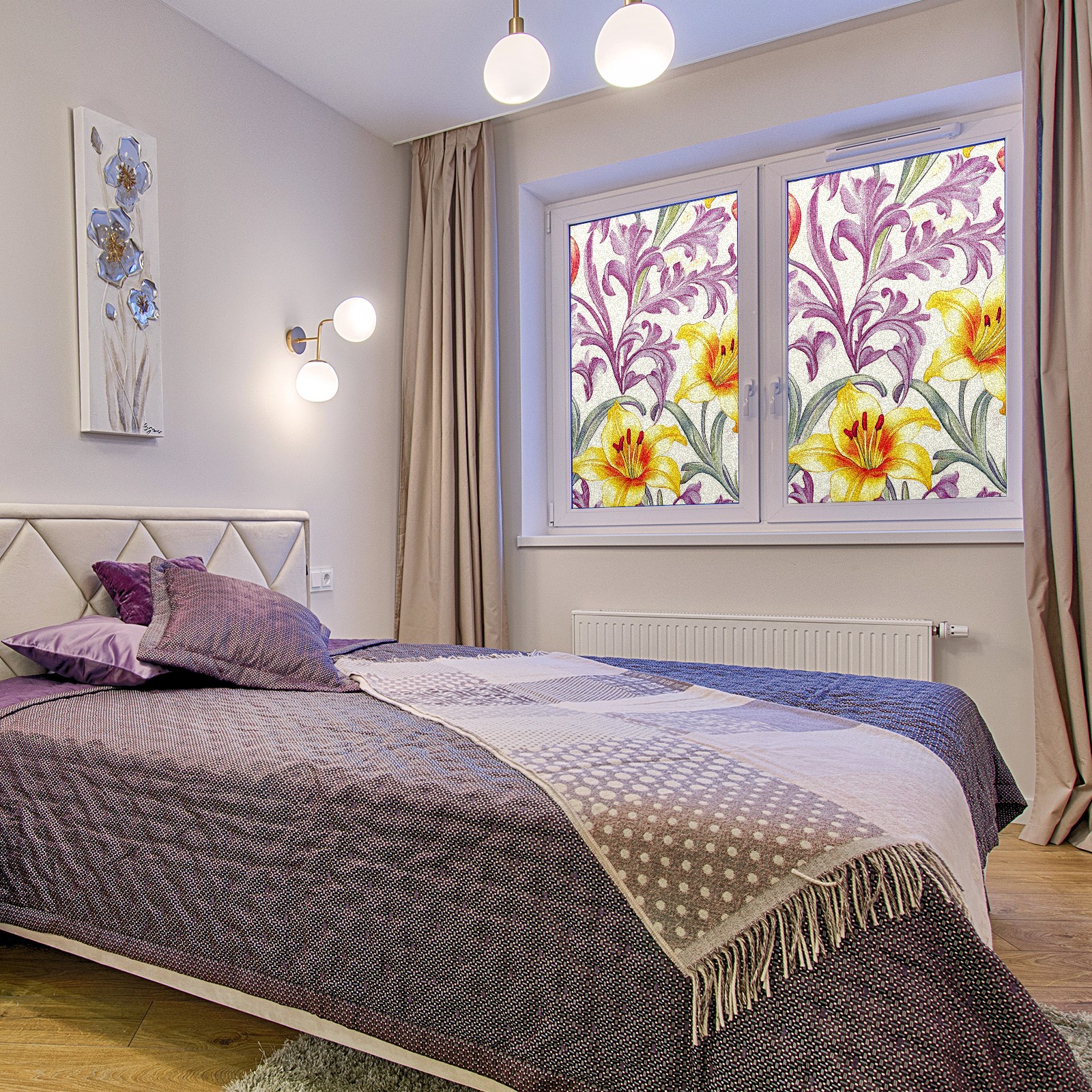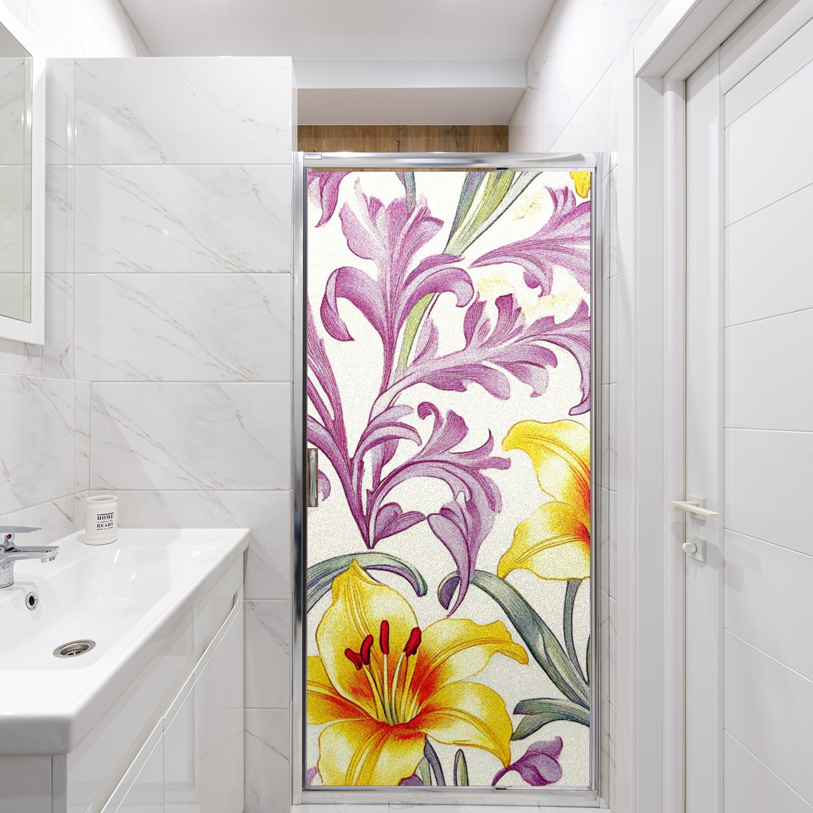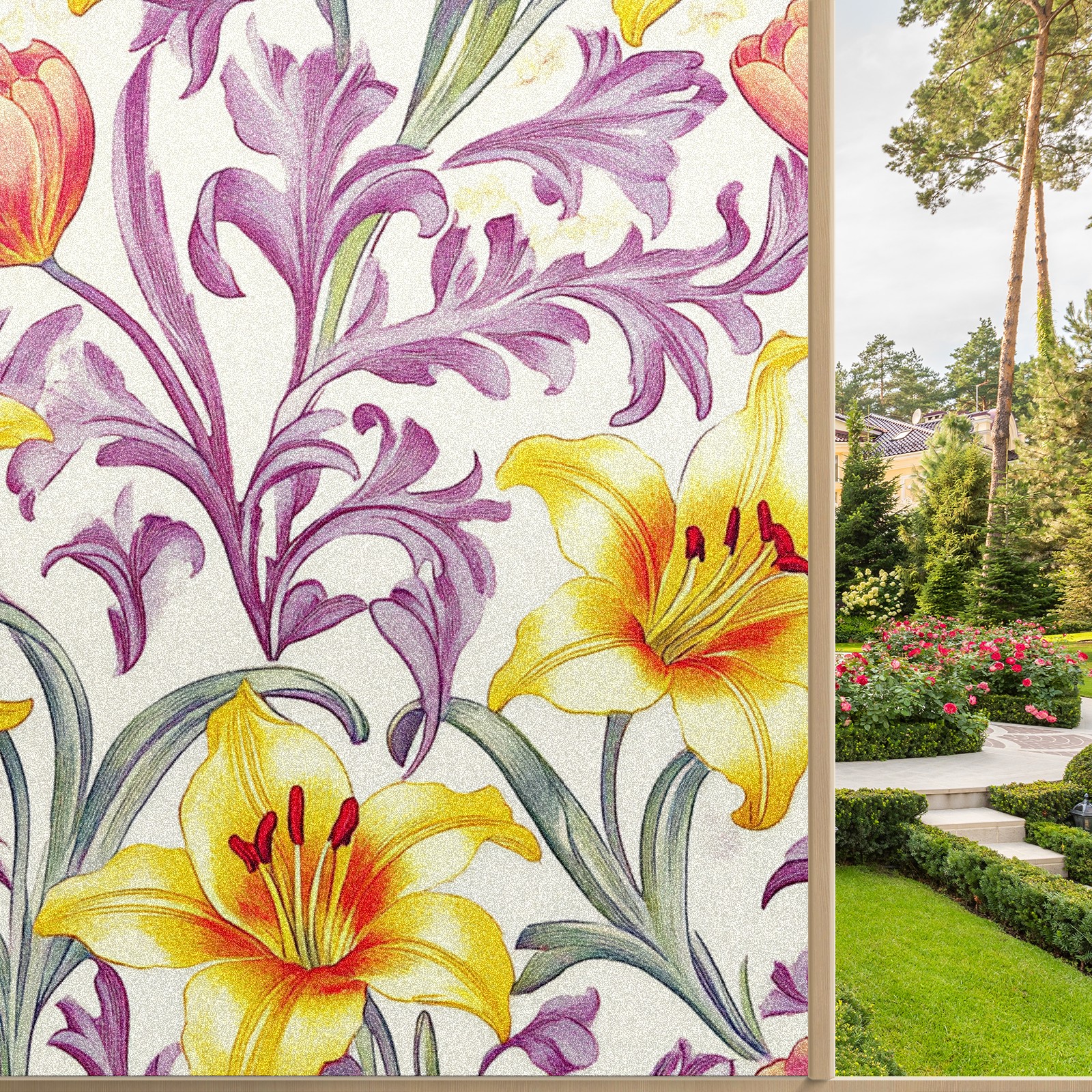 Stained Glass Window Film - Decorative Privacy Film for Windows, Peel and Stick Window Film for Bathroom/Office/Shower, Reusable and Easy to Cut 17.7"x23.6" (Yellow Lily)