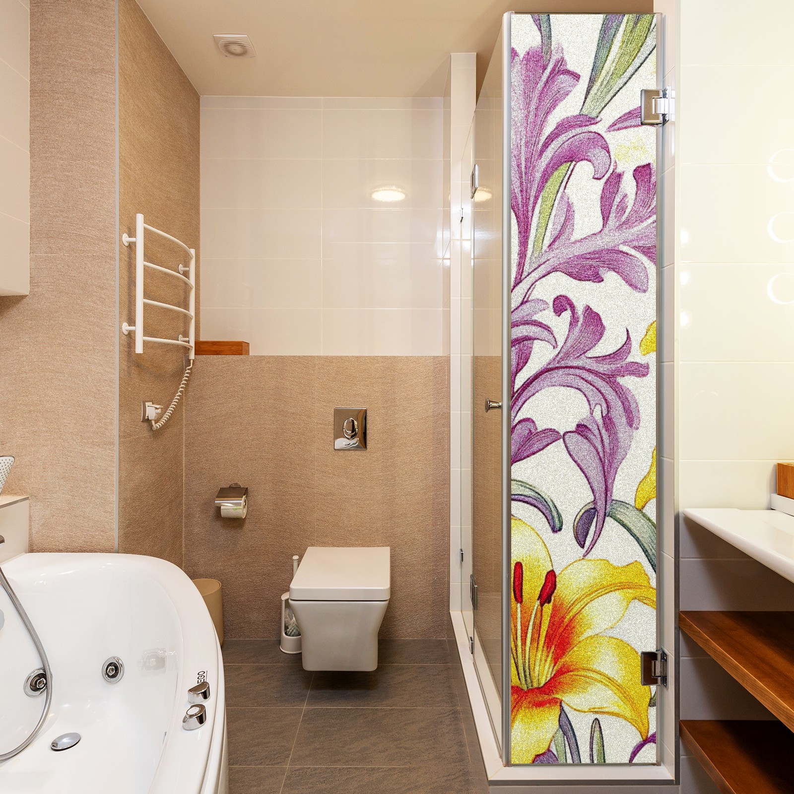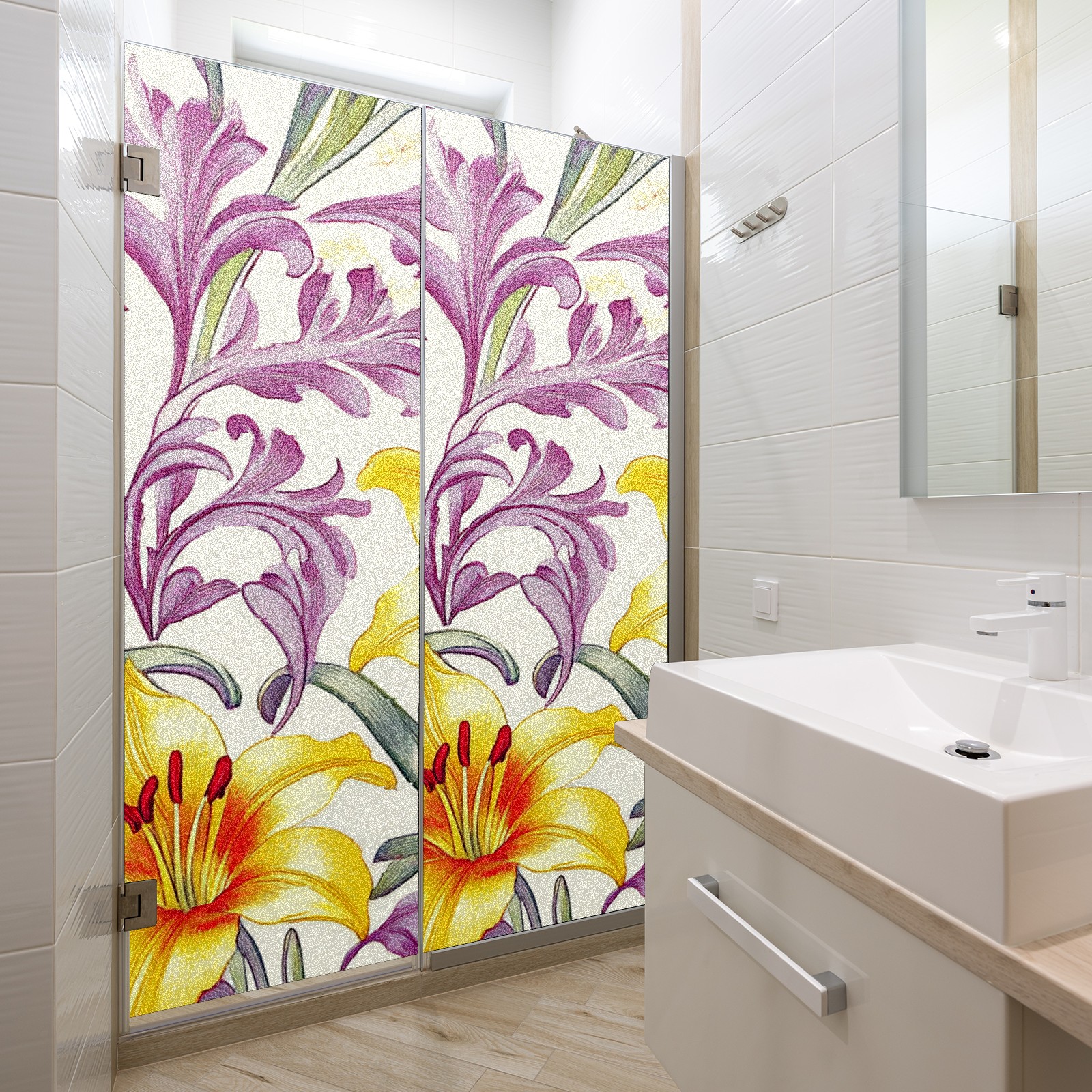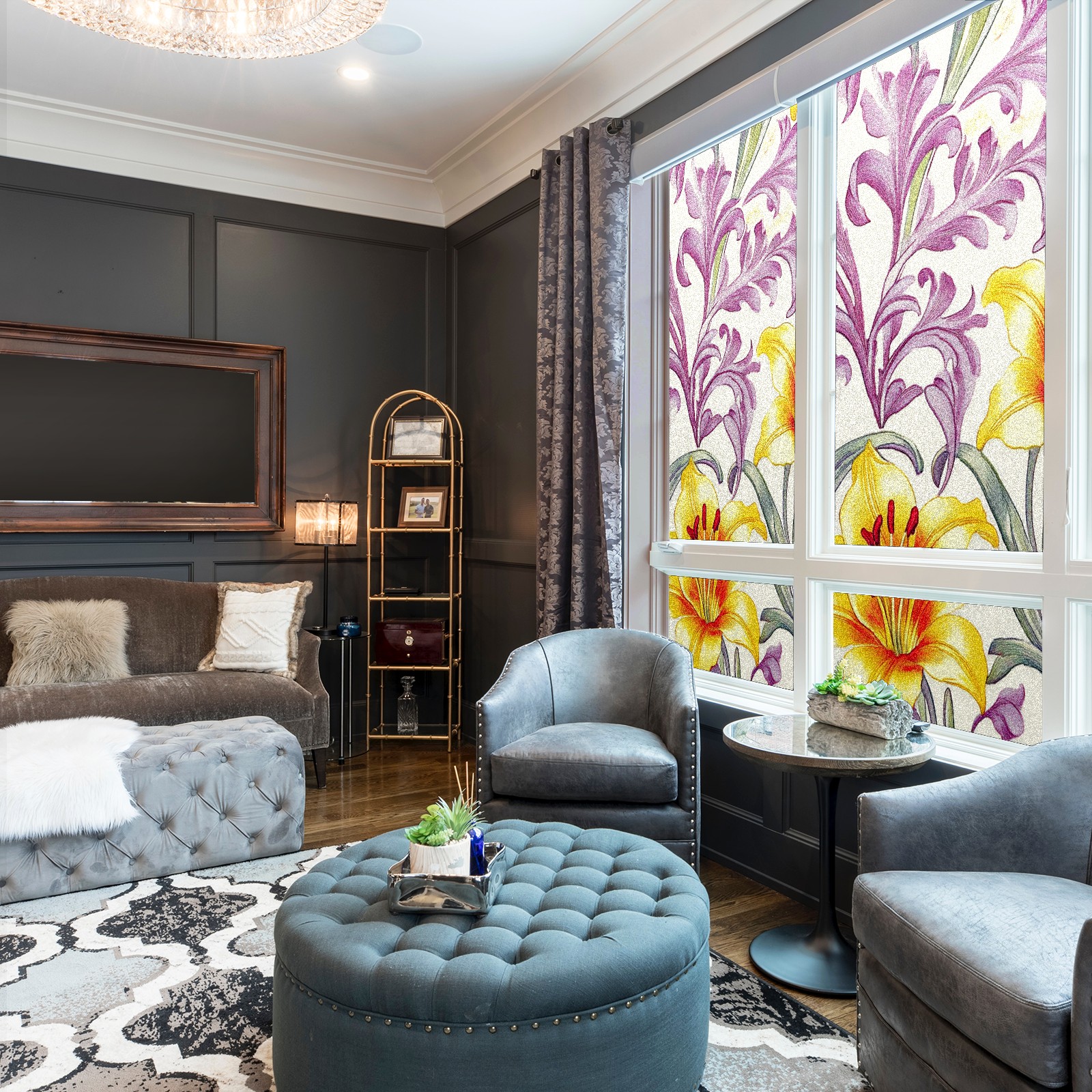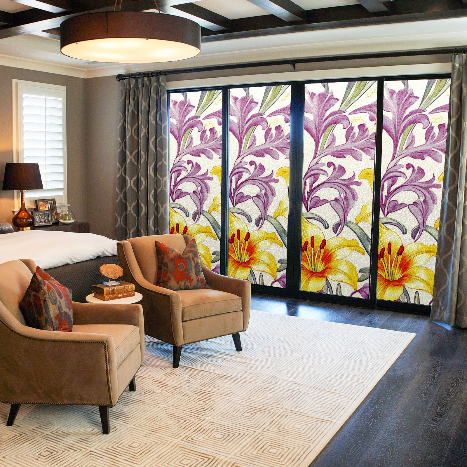 Stained Glass Window Film - Decorative Privacy Film for Windows, Peel and Stick Window Film for Bathroom/Office/Shower, Reusable and Easy to Cut 17.7"x23.6" (Yellow Lily)