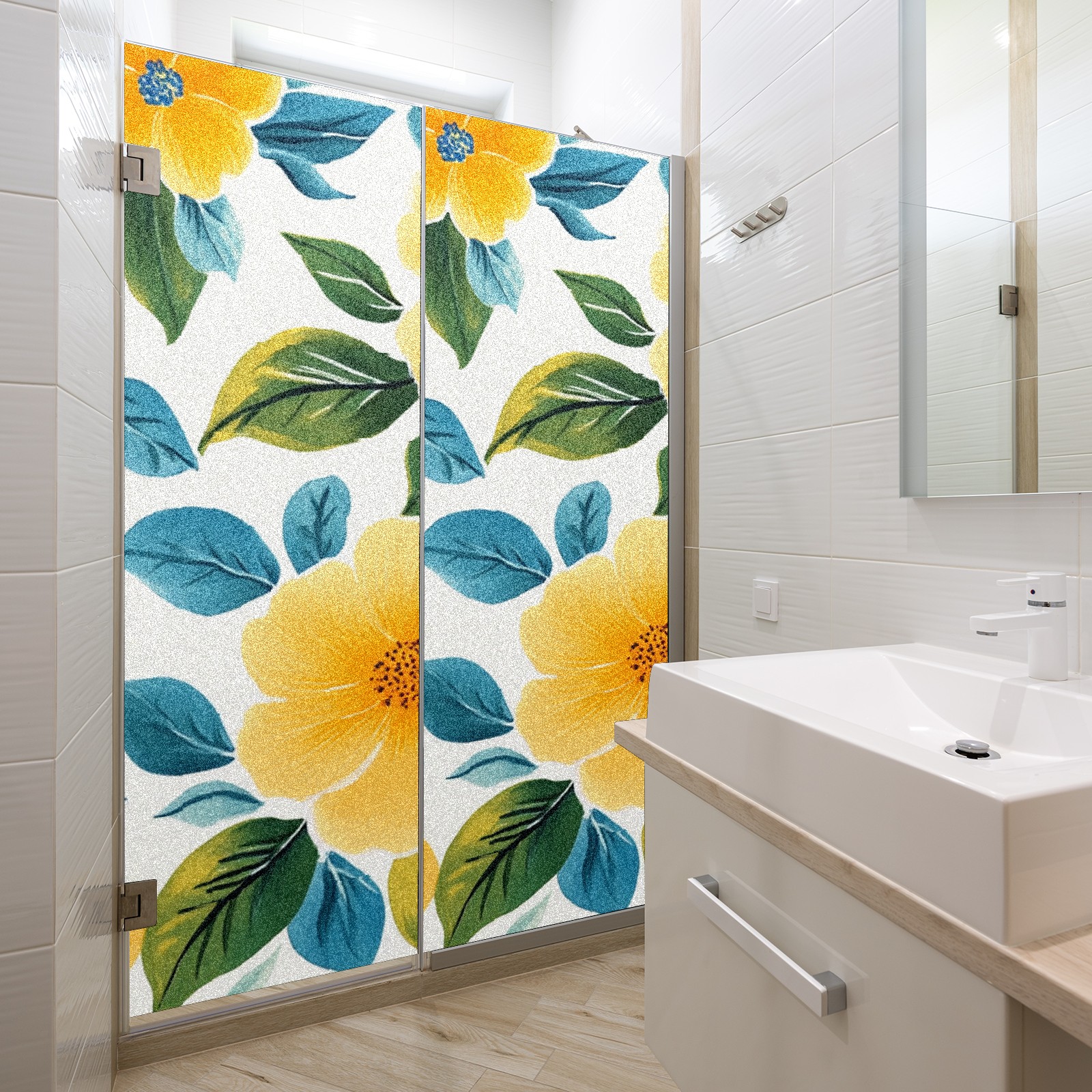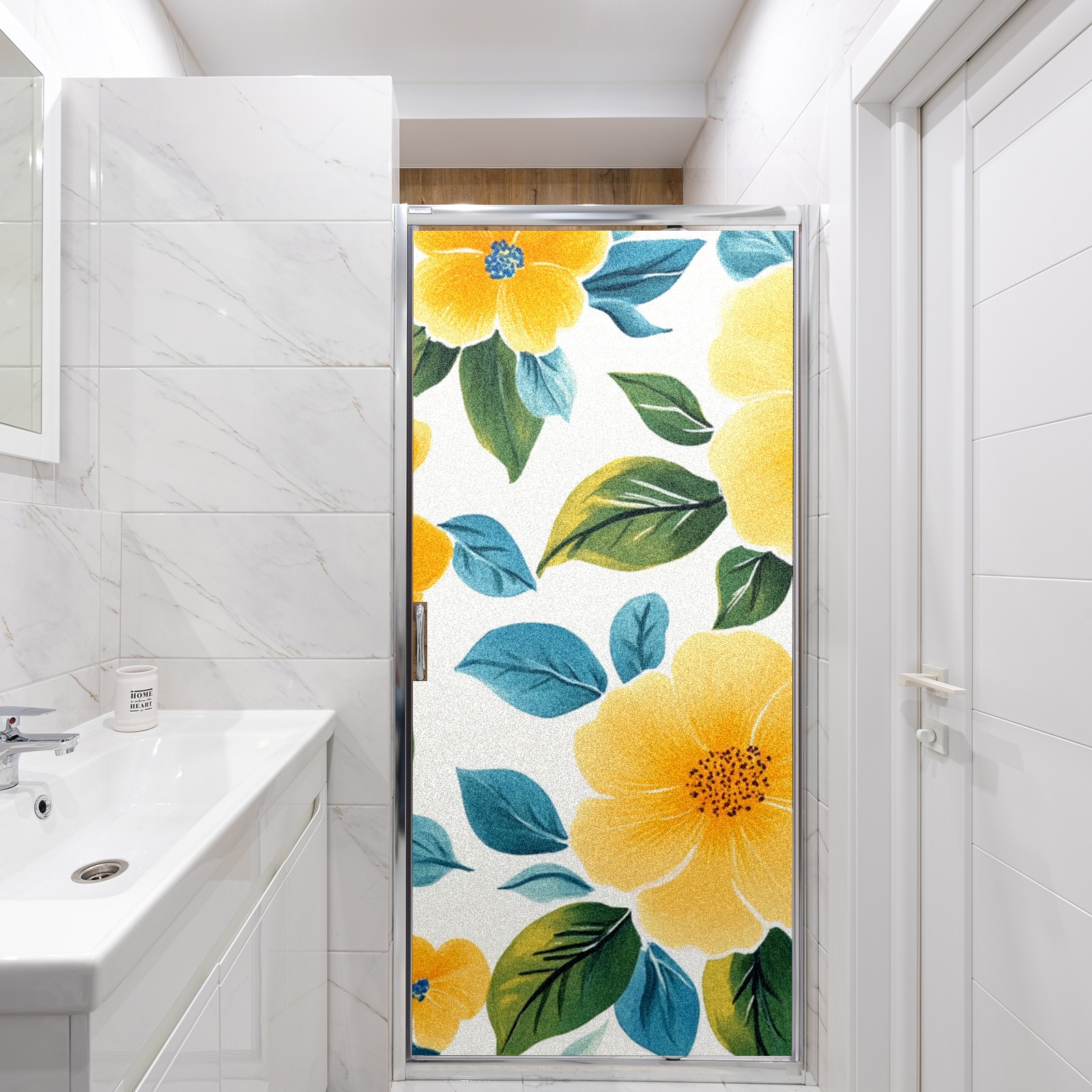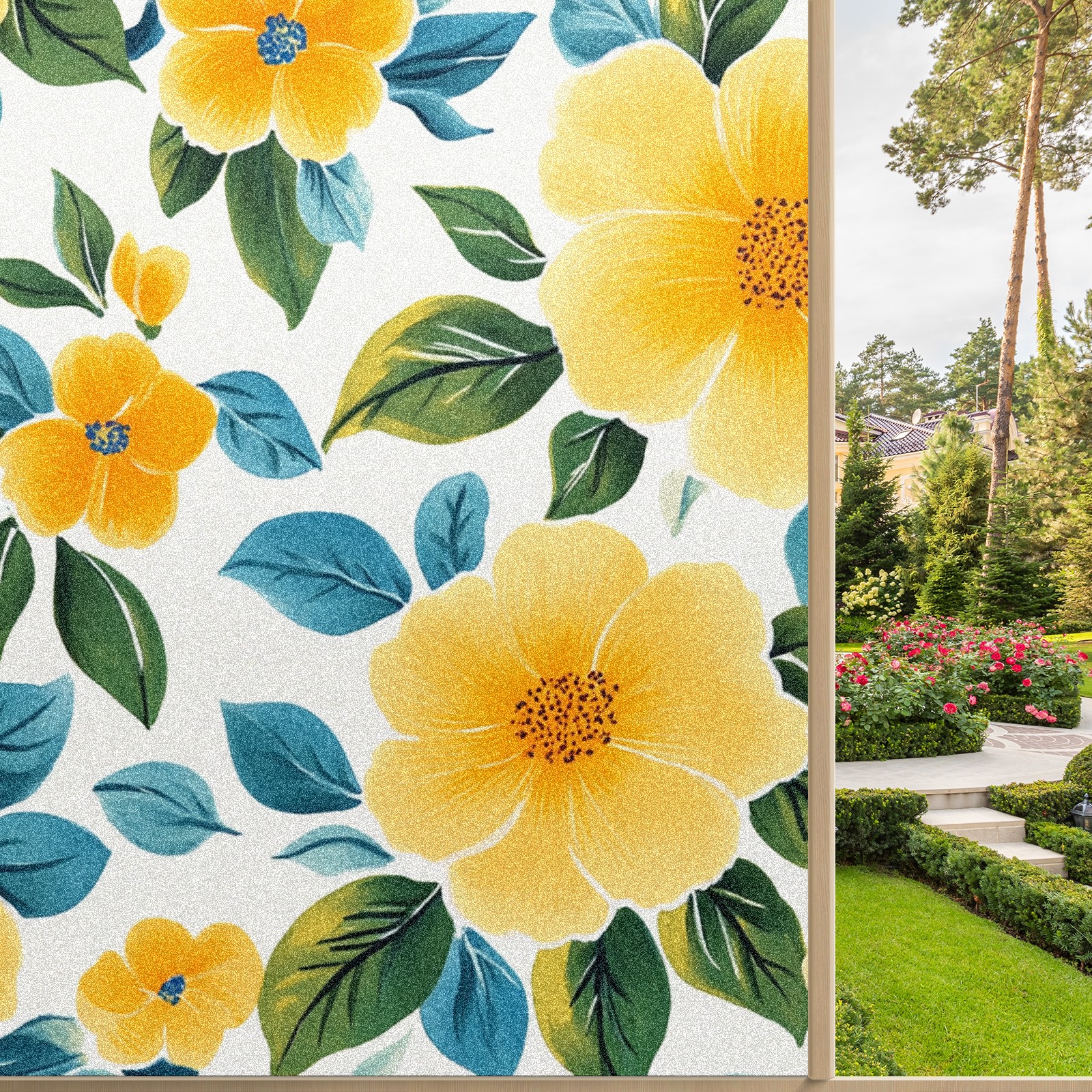 Stained Glass Window Film - Decorative Privacy Film for Windows, Peel and Stick Window Film for Bathroom/Office/Shower, Reusable and Easy to Cut 17.7"x23.6" (Yellow Green Floral)