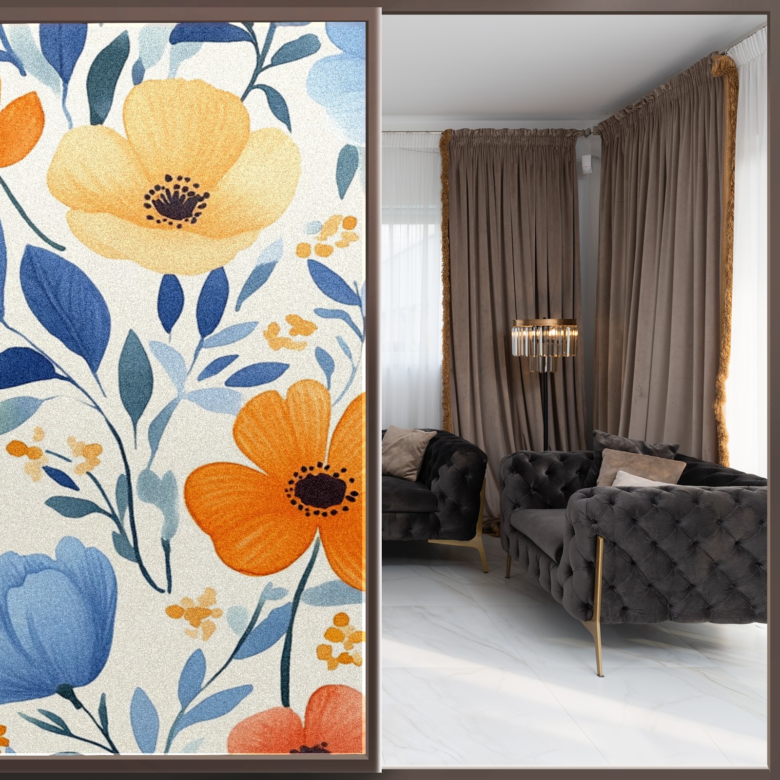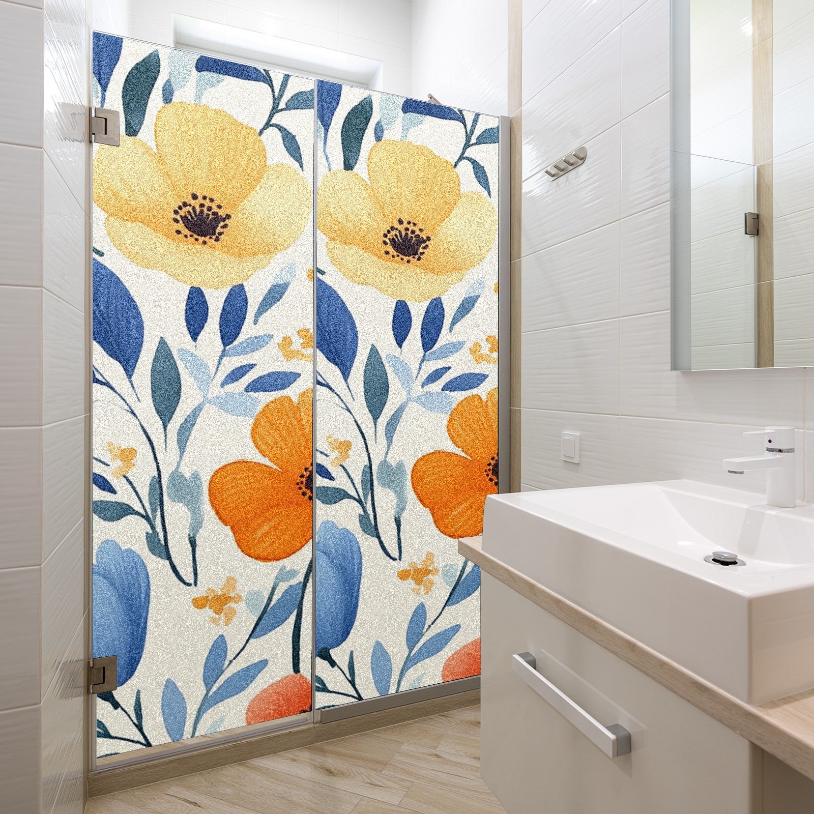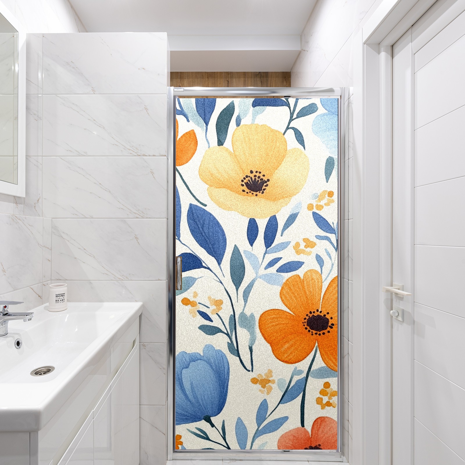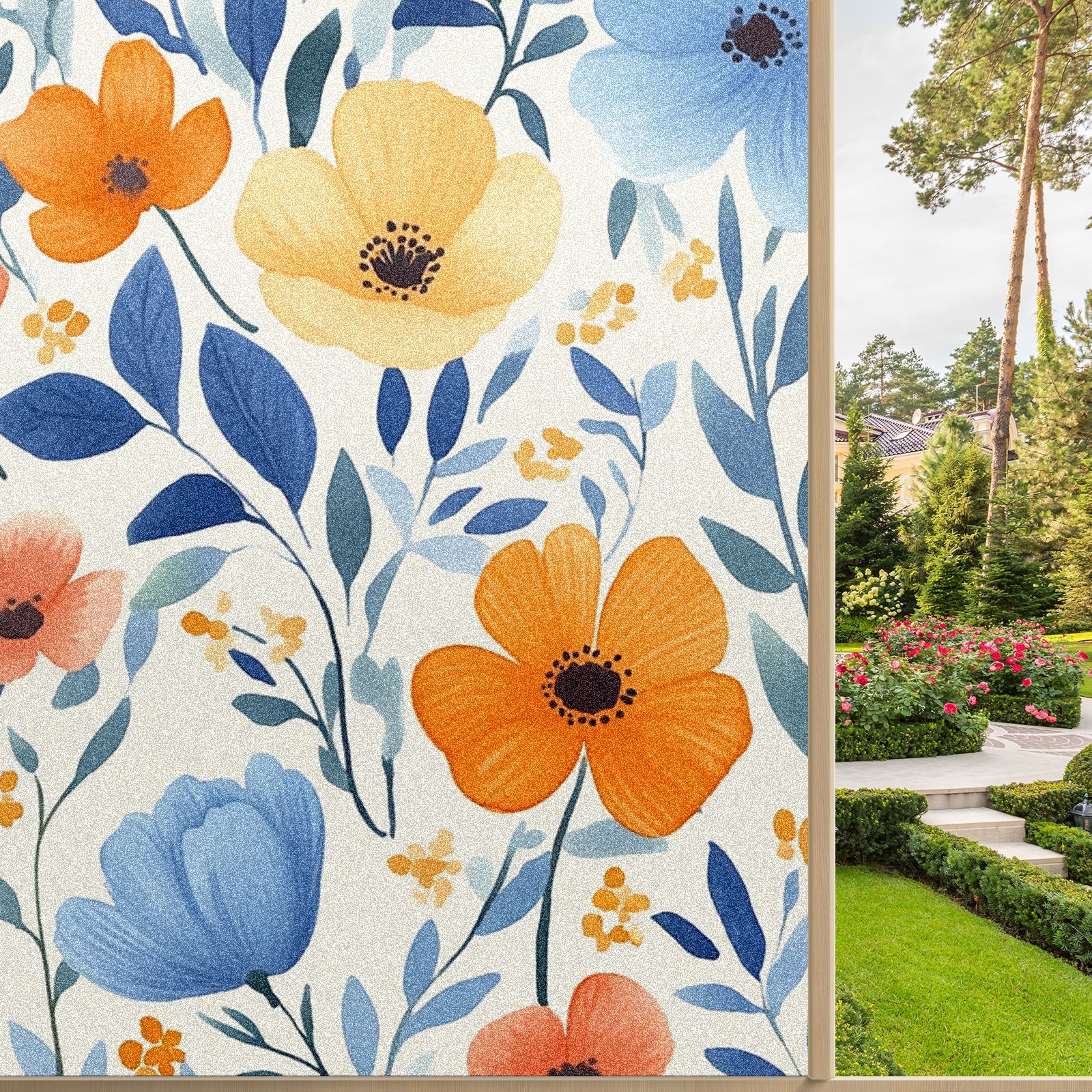 Stained Glass Window Film - Decorative Privacy Film for Windows, Peel and Stick Window Film for Bathroom/Office/Shower, Reusable and Easy to Cut 17.7"x23.6" (Watercolor Floral)